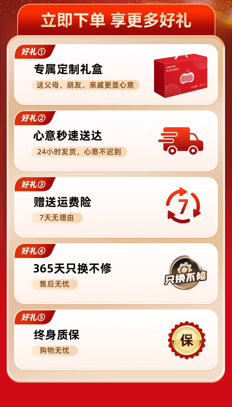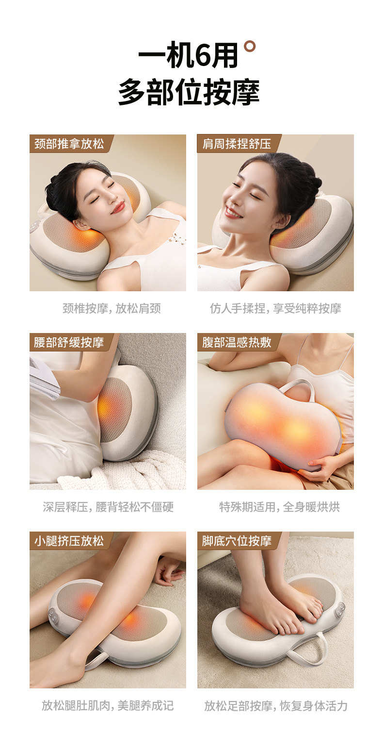| Color Classification | 【Apricot - Plug-In Model】Red Light Therapy + Hot Compress + Forward & Reverse Kneading + 3 Intensity Levels + 3 Relaxation Modes,【Off-White - Plug-In Gift Box Edition】 Includes Car Charger Cable + Red Light Heat Therapy + Forward & Reverse Kneading Massage + 3 Intensity Levels + Portable Handle + Velcro Straps.,[Sky Blue - Plug-In Gift Box Model] Comes with Car Cable + Red Light Hot Compress + Forward and Reverse Kneading + 3 Levels of Intensity Adjustment + Portable Handle + Velcro Strap.,【Light Grey - Plug-In Gift Box Edition】 Includes Car Charger Cable + Red Light Heat Therapy + Forward & Reverse Kneading Massage + 3 Intensity Levels + Portable Handle + Velcro Straps.,[Navy Blue - Plug-In Gift Box Model] Comes with Car Cable + Red Light Hot Compress + Forward and Reverse Kneading + 3 Levels of Intensity Adjustment + Portable Handle + Velcro Strap.,【Off-White - Limited Edition Charging Gift Box】Rechargeable Wireless & Portable + High-Torque Pure Copper Motor + Red Light Therapy + Forward & Reverse Kneading + 3 Intensity Levels + Portable Handle + Velcro Straps + Long-Lasting Battery Life.,[Sky Blue-Limited Charging Gift Box Model] Wireless Portable Charging + High Torque Pure Copper Motor + Red Light Hot Compress + Forward and Reverse Kneading + 3-Level Intensity Adjustment + Portable Handle + Velcro Strap + Long-Lasting Battery Life.,[Navy Blue-Limited Charging Gift Box Model] Wireless Portable Charging + High Torque Pure Copper Motor + Red Light Hot Compress + Forward and Reverse Kneading + 3-Level Intensity Adjustment + Portable Handle + Velcro Strap + Long-Lasting Battery Life.,[Modern Gray-Luxury Airbag Plug-In Model] Intelligent 4 Buttons + Airbag Support + Mugwort Hot Compress + Red Light Sterilization + Shoulder, Neck and Waist Synchronous Massage + Forward and Reverse Kneading + 3-Speed Adjustment + Intelligent Timing + Full Body Massage. |