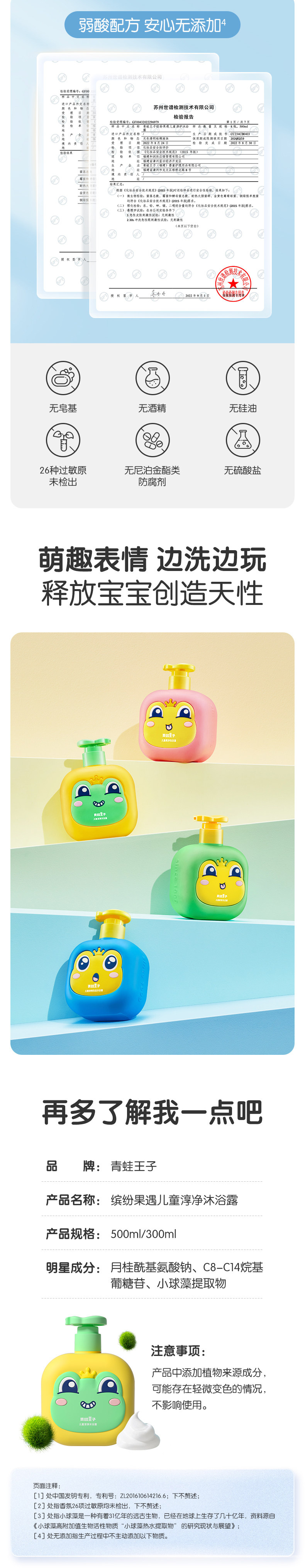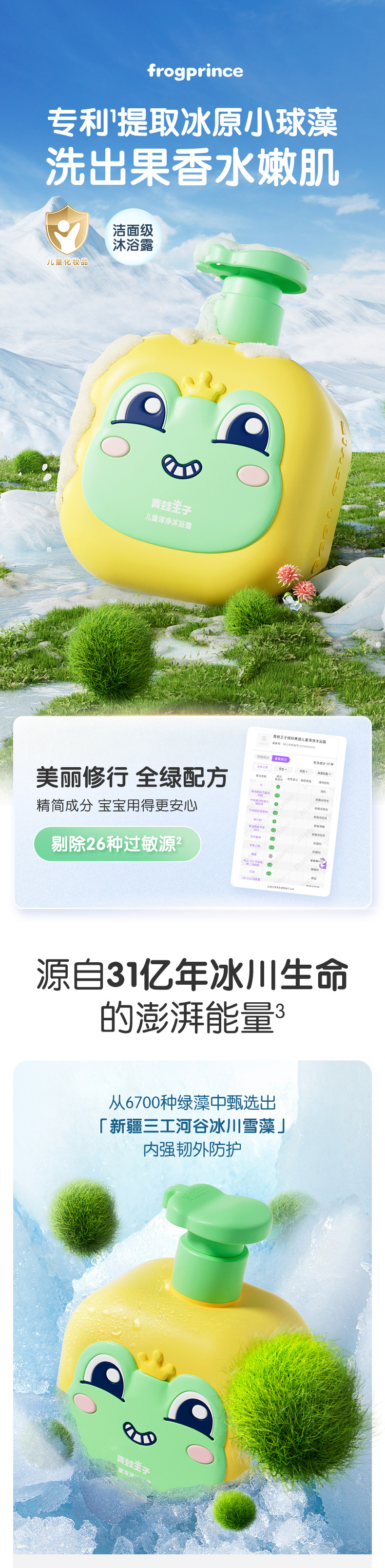 [in Stock, Quick Delivery] Frog Prince Children's Shower Gel with Chlorella Amino Acids, Gentle and Non-Irritating to Eyes, for Boys and Girls