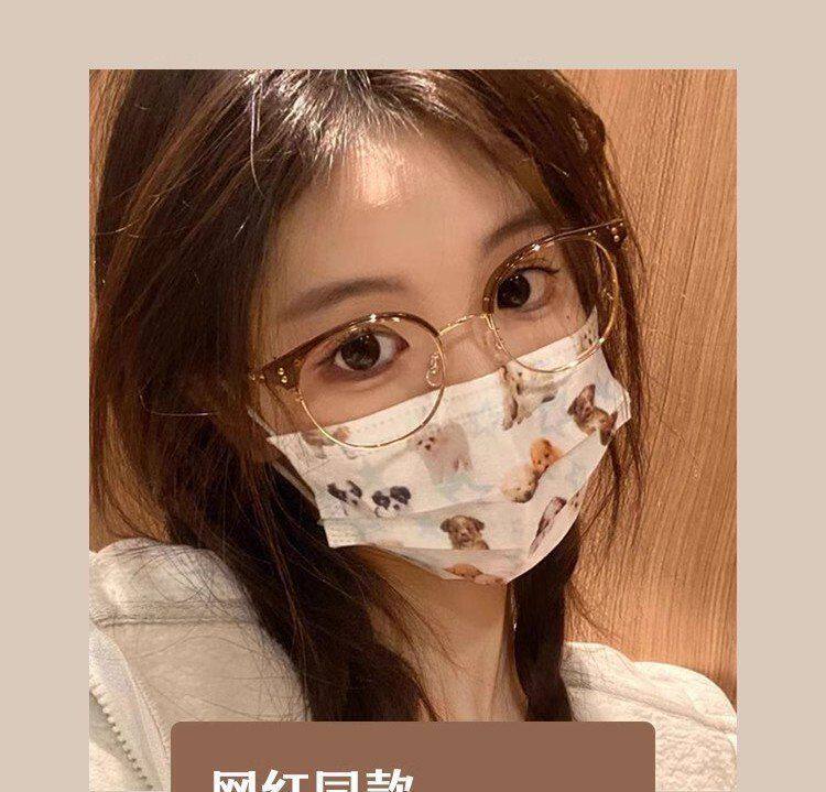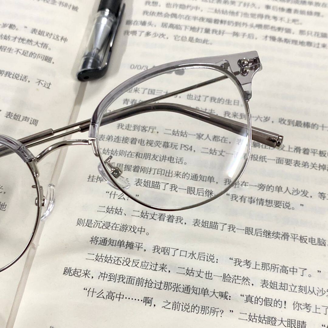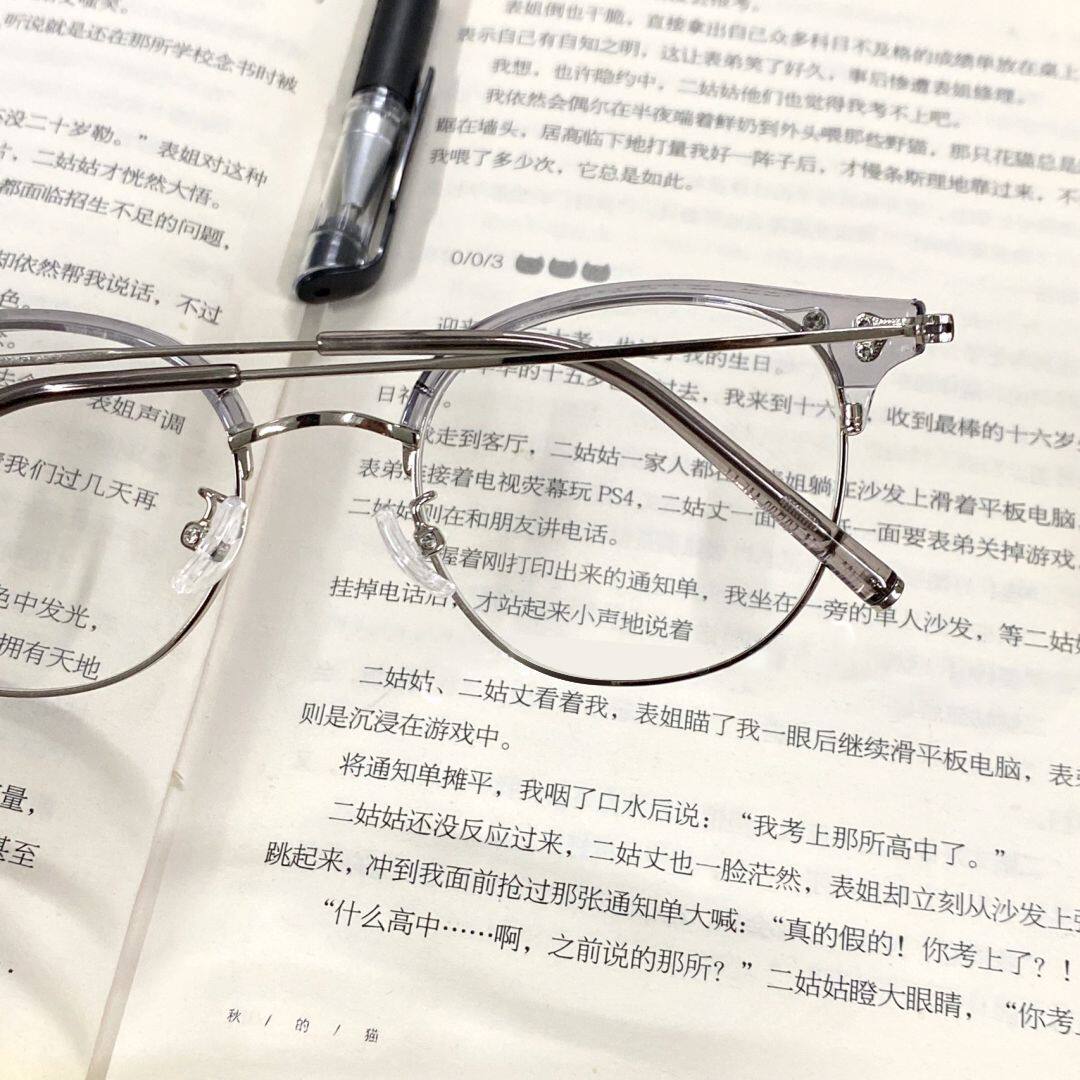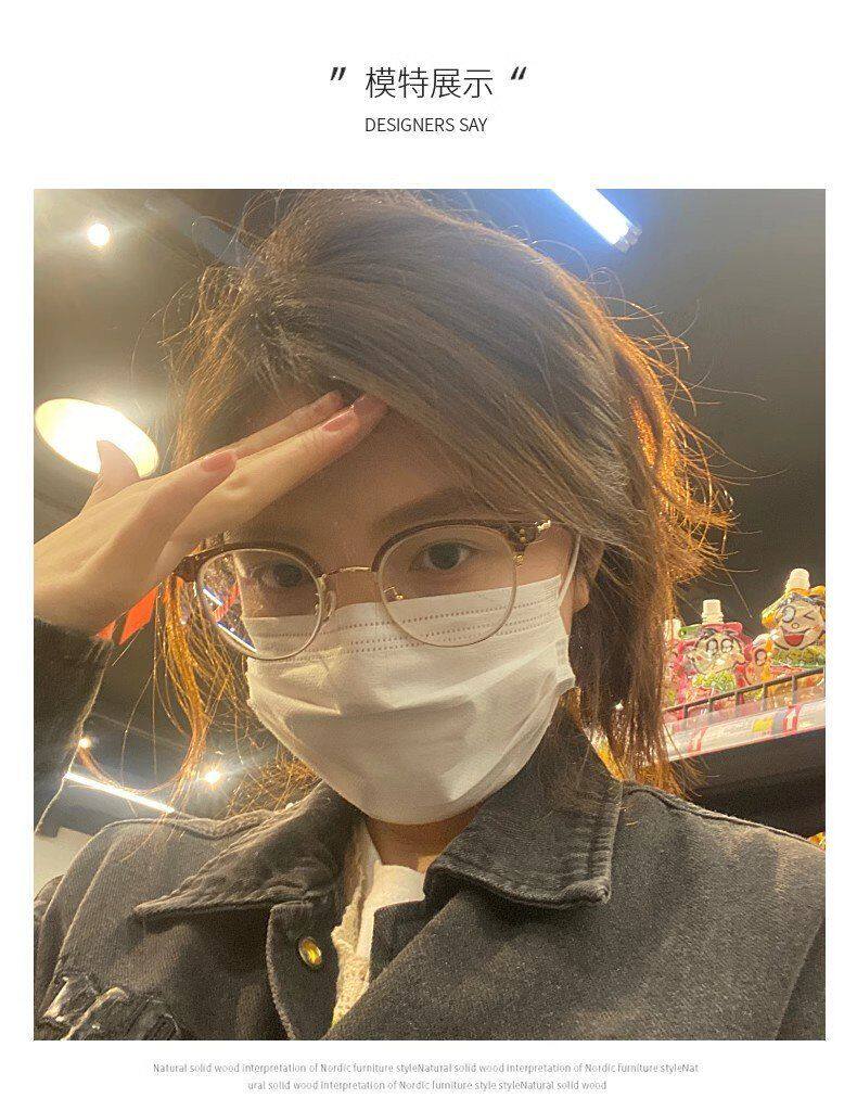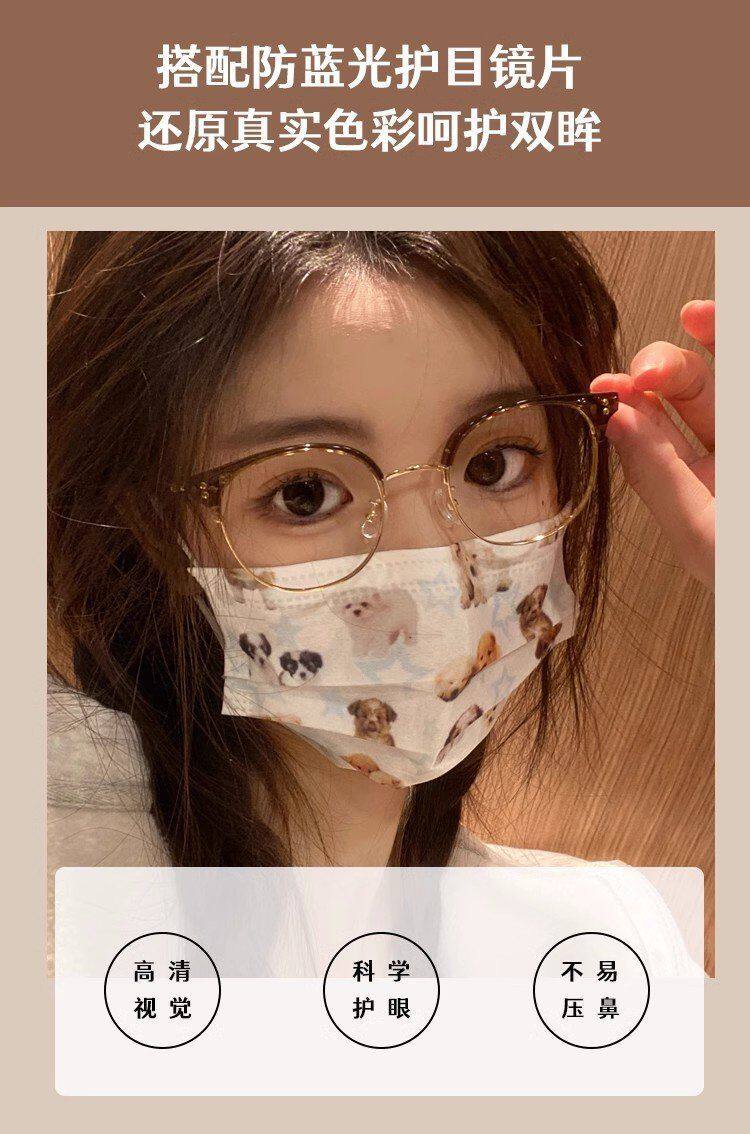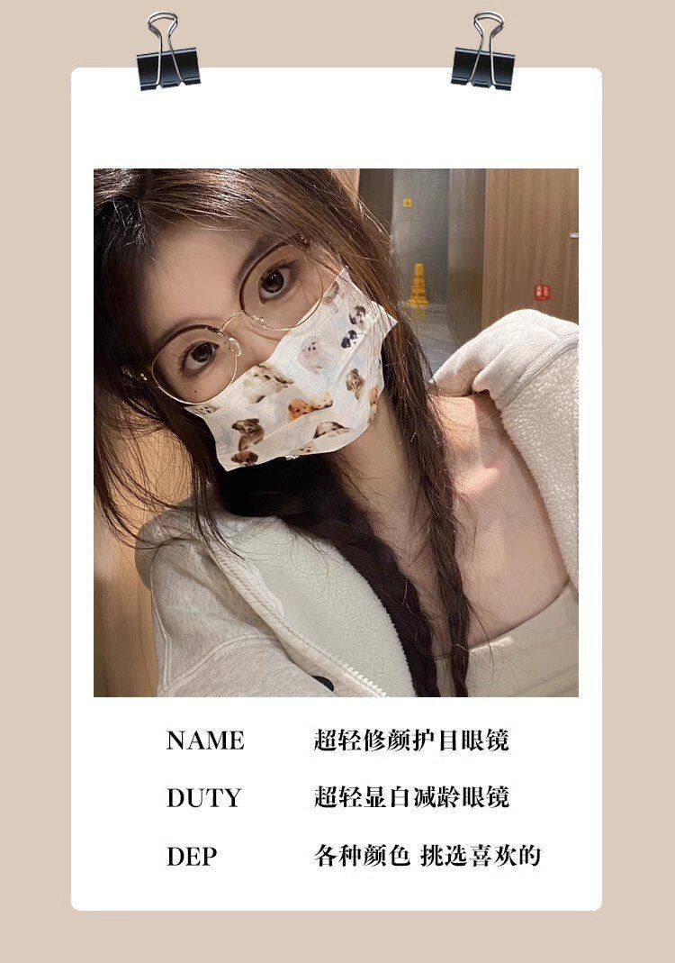 Xiaohongshu Same Style Cold Tea Gold Ultra-Light Half-Frame Prescription Glasses for Female Students, Small Round Frame, Makeup-Free Look Essential, Trendy