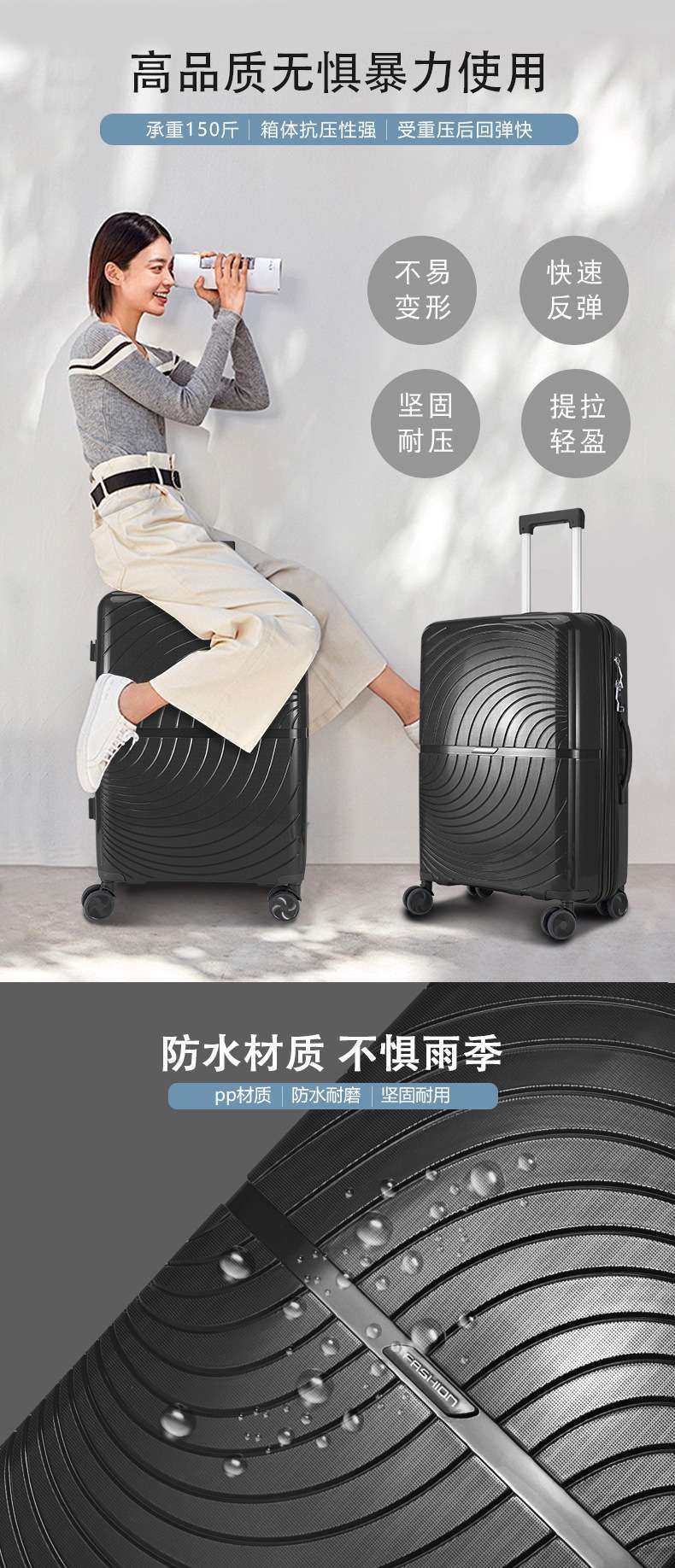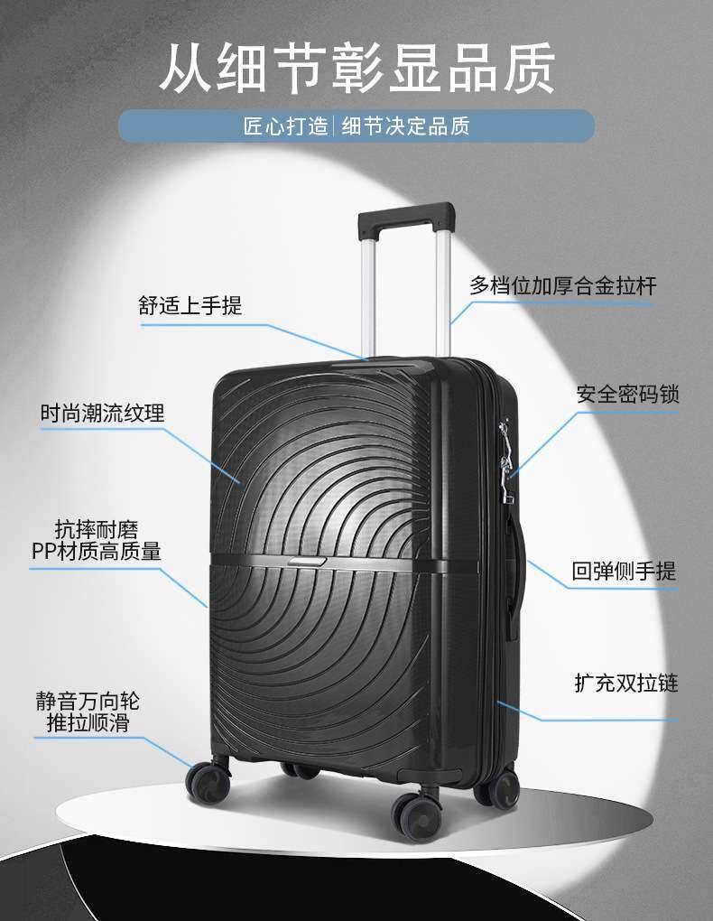 New Style Suitcase, High-Looking and Lightweight Luggage, Pp Universal Wheels, Leisure Travel, Student Large-Capacity Trolley Case
