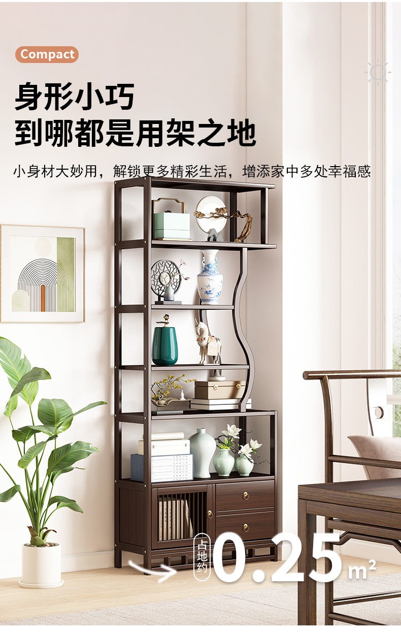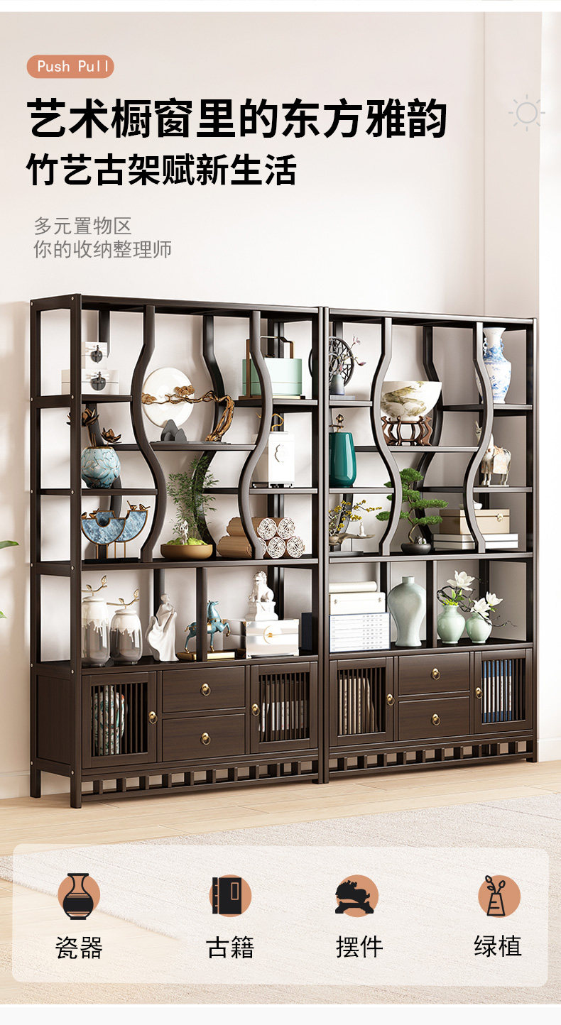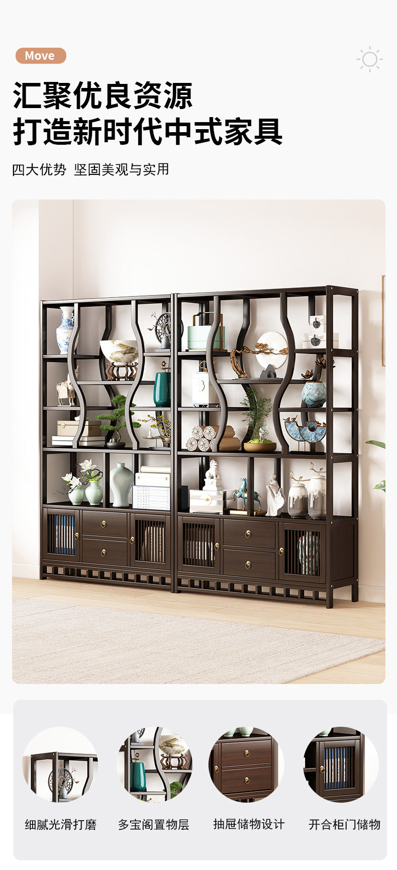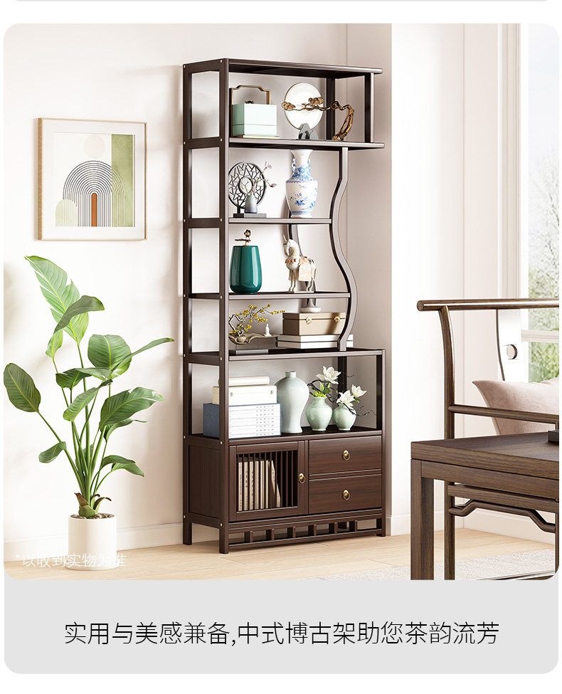 Bogu Rack Tea Set Tea Storage Rack Chinese Duobao Pavilion Purple Sand Pot Display Rack Living Room Floor-Standing Antique Display Cabinet