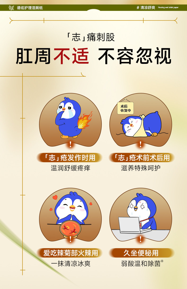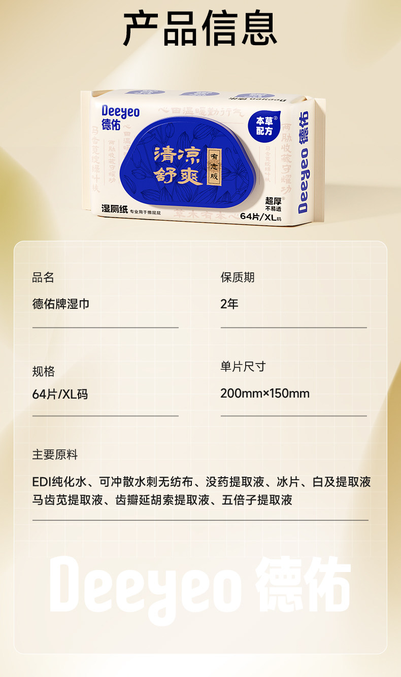 Deeyeo Nursing Wet Toilet Paper Family Value Pack Wet Wipes for Men and Women, Cooling and Itch-Relieving, Butt Wipes, Wet Toilet Paper