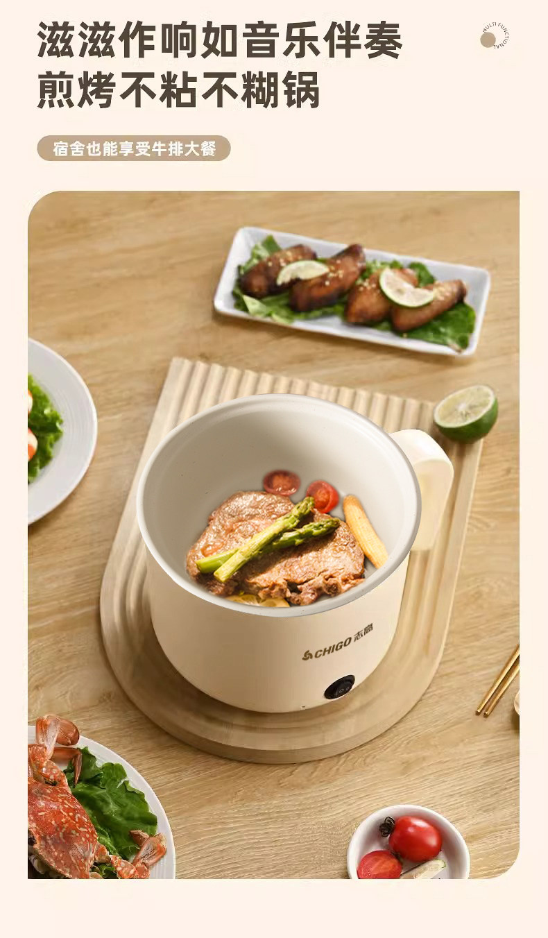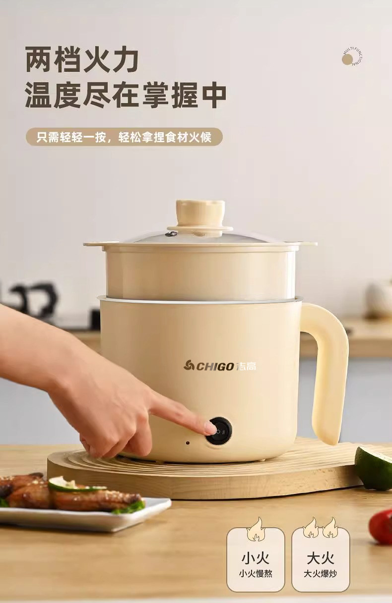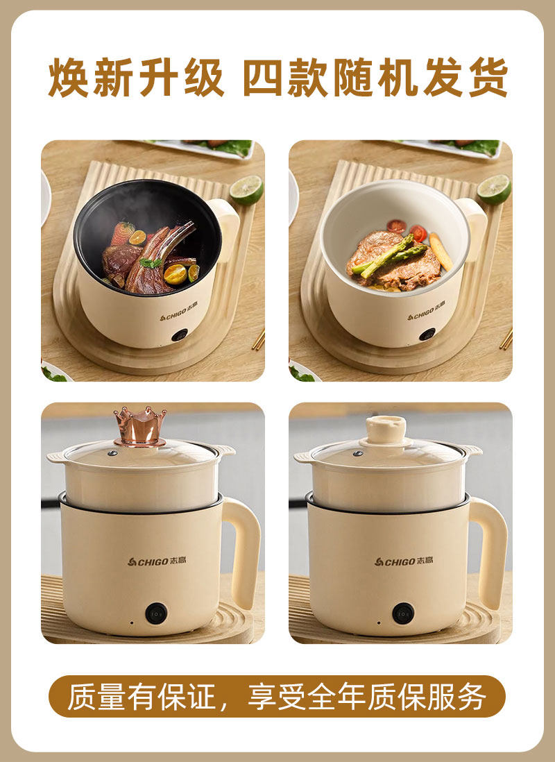Chigo Electric Cooker for Home Use, Dormitory, Student, Single-Person Cooking, Noodle Cooker, Small Electric Hot Pot, Multifunctional Steaming and Cooking All-In-One Kitchen Appliance