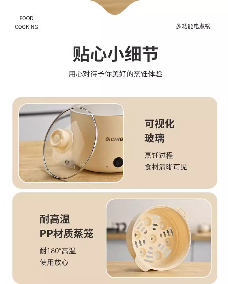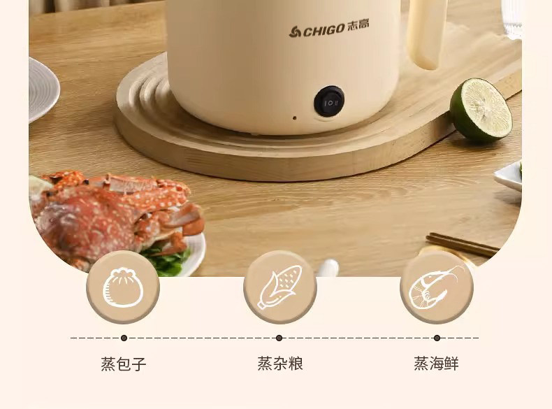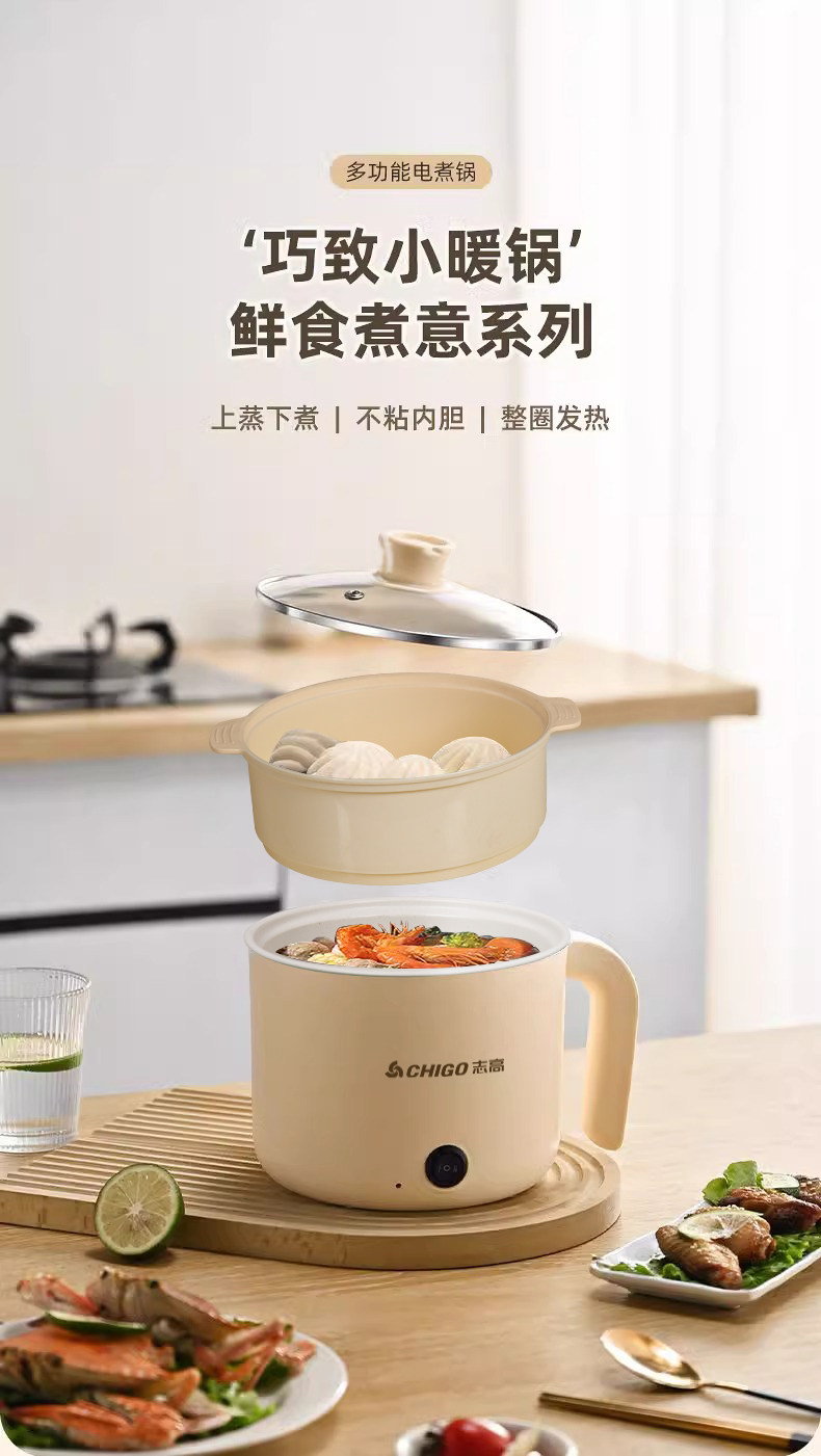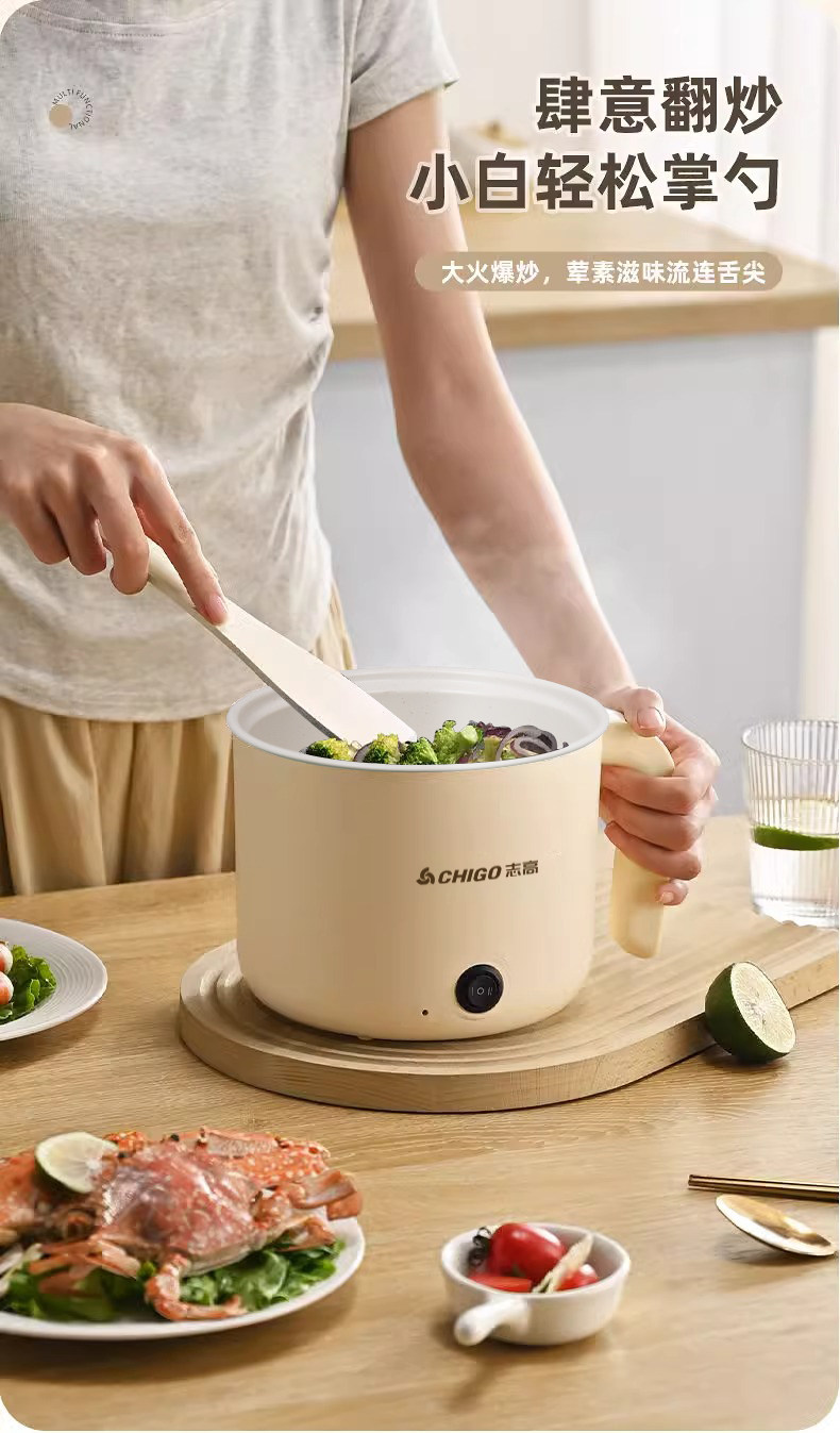 Chigo Electric Cooker for Home Use, Dormitory, Student, Single-Person Cooking, Noodle Cooker, Small Electric Hot Pot, Multifunctional Steaming and Cooking All-In-One Kitchen Appliance