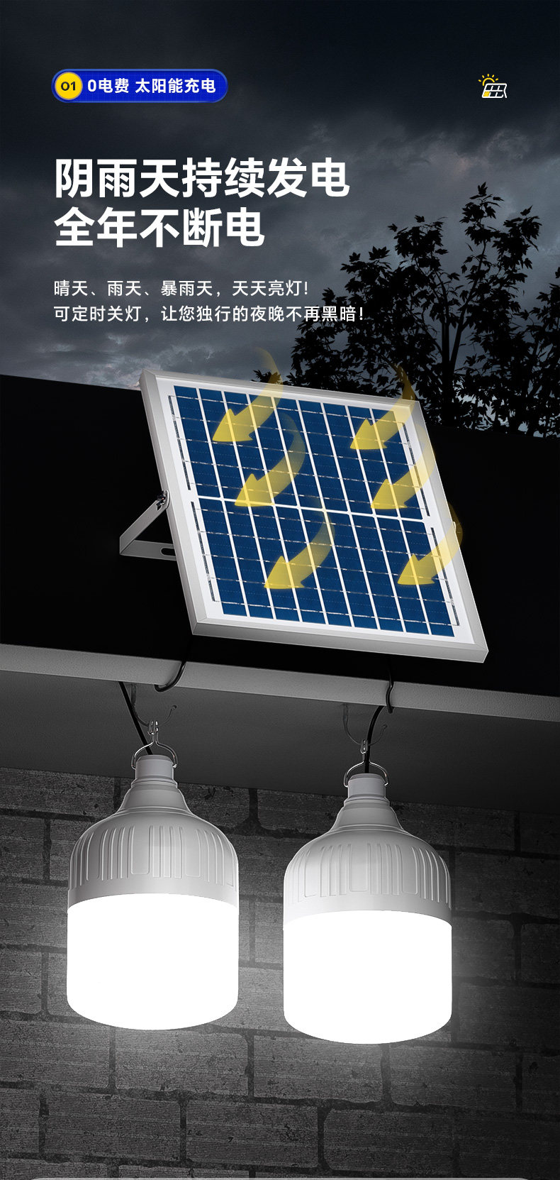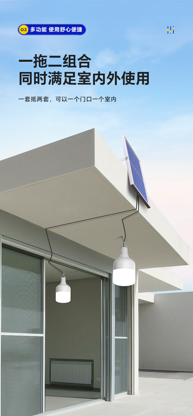 2025 New Solar-Powered Outdoor Garden Light, Home Rechargeable Indoor Lighting, One-To-Two Split-Type Hanging Light Bulb