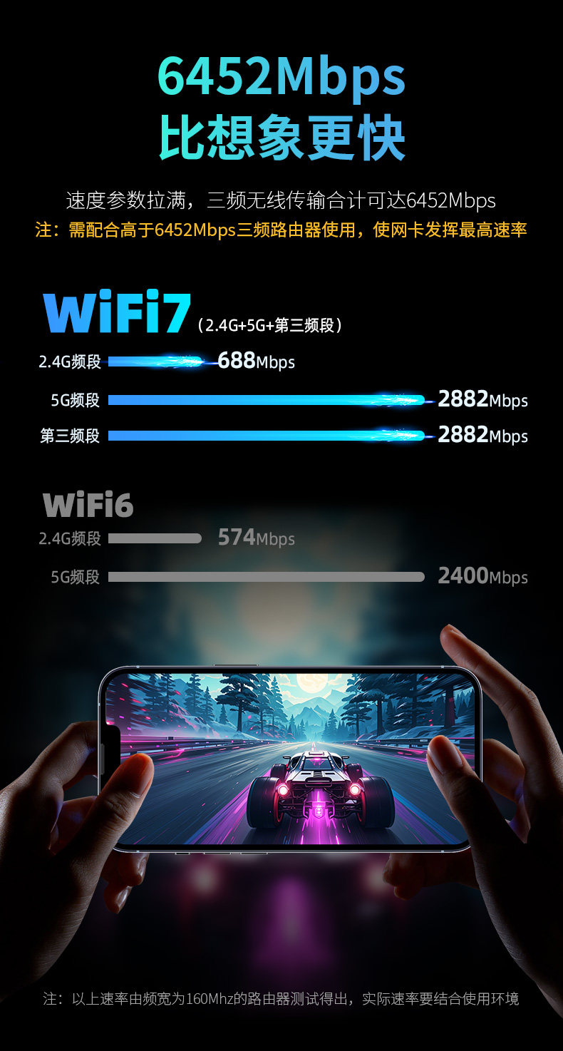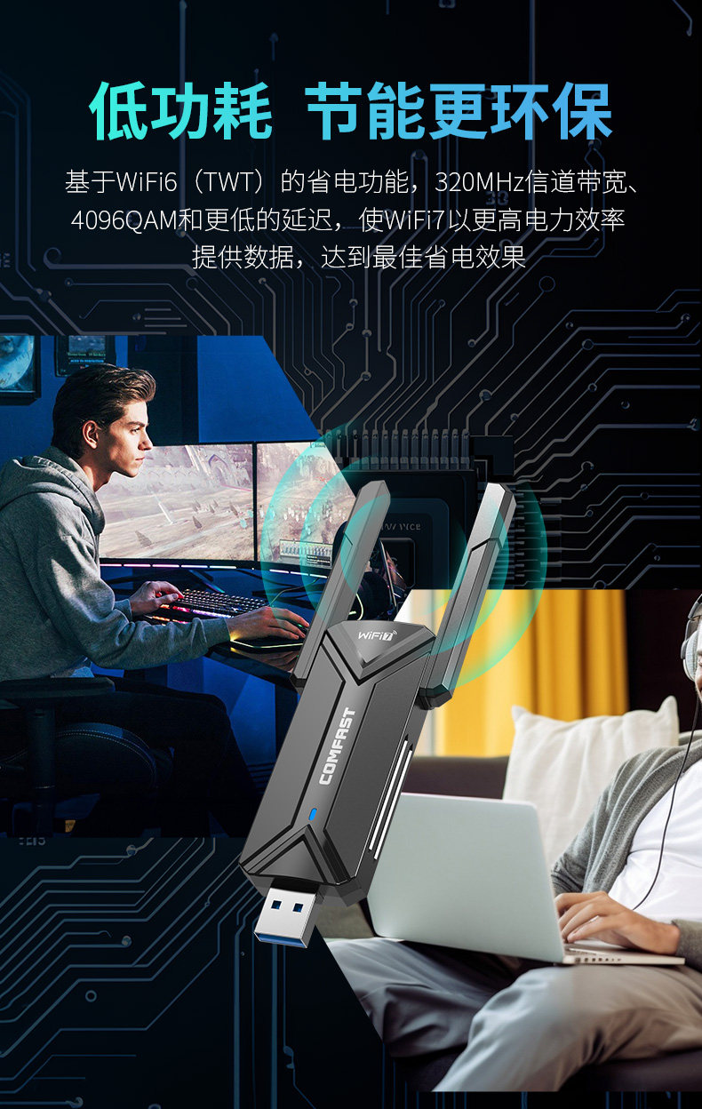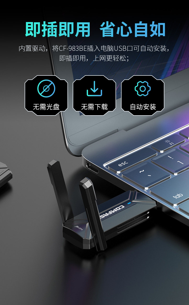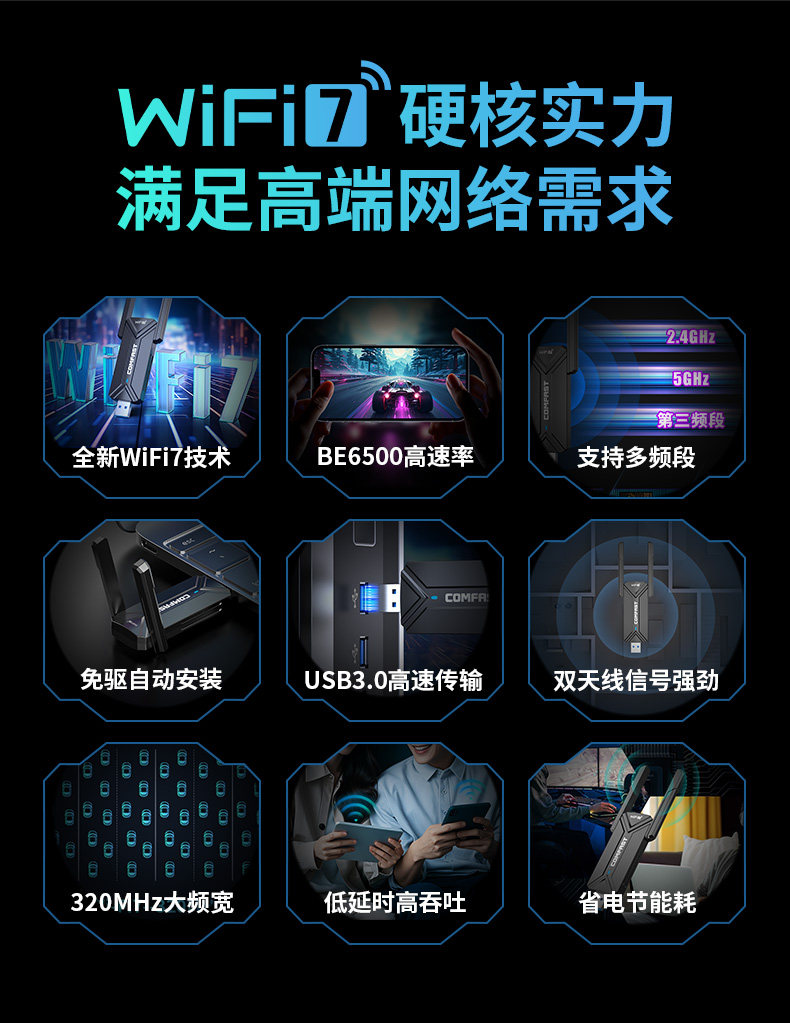 [Wifi7 Driver-Free]Comfast Cf-983Be Gaming Wireless Network Card Desktop Wifi Receiver Gigabit 6500m Tri-Band 5g Signal Through-Wall External Usb3.0 Laptop