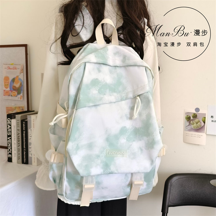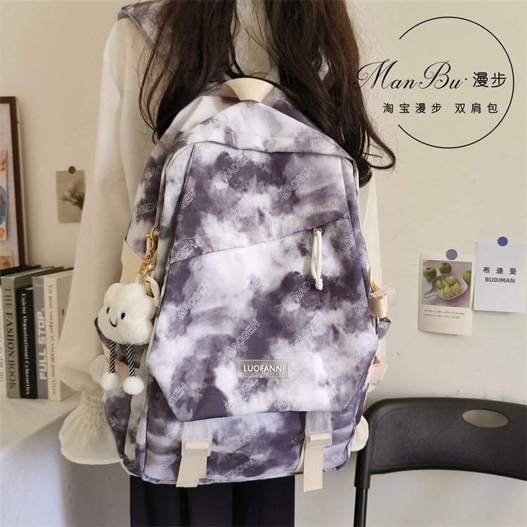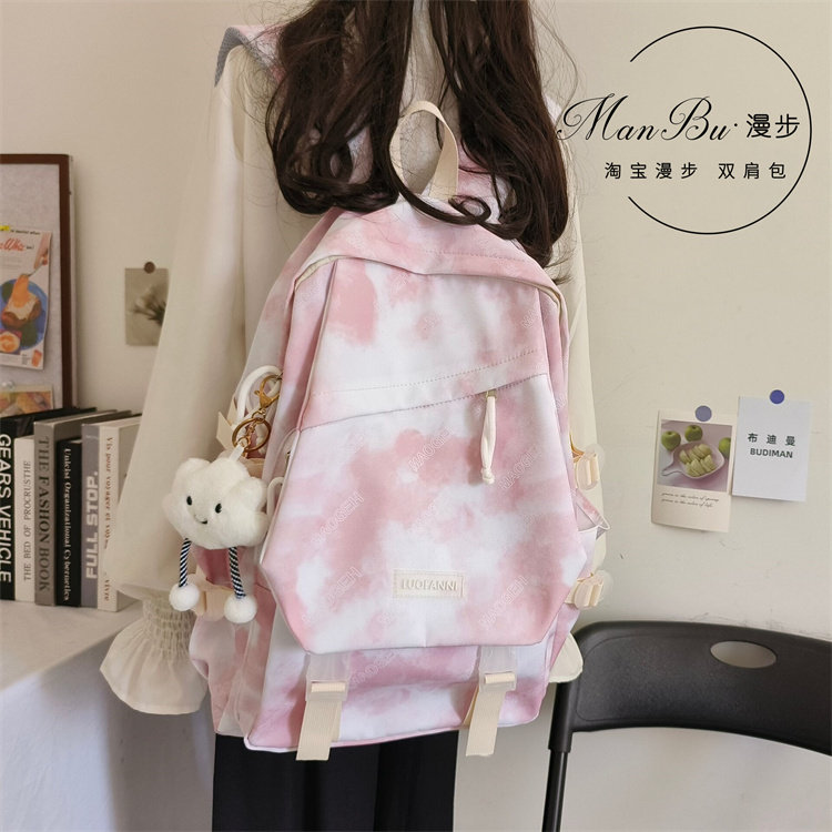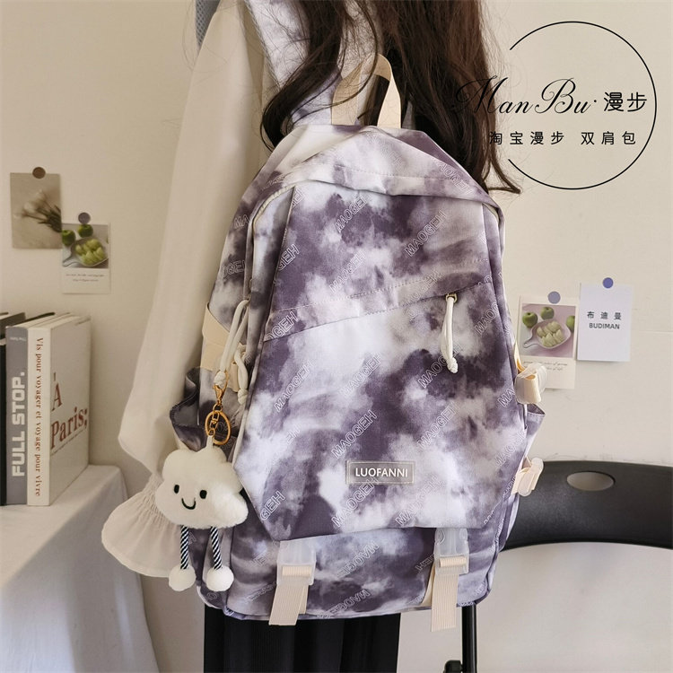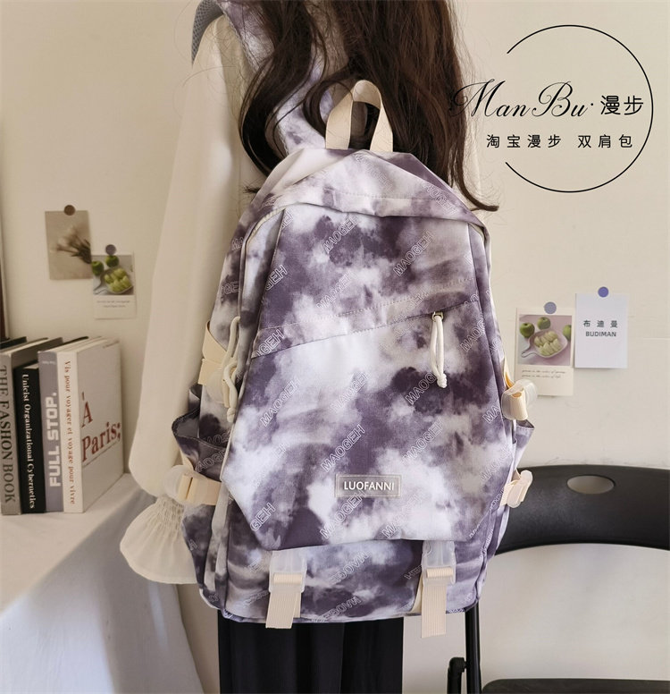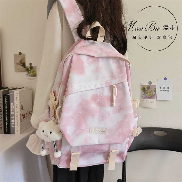 2024 New Niche Design Tie-Dye School Bag for Female Primary and Secondary School Students, Lightweight Backpack for College Students, Casual Travel Backpack