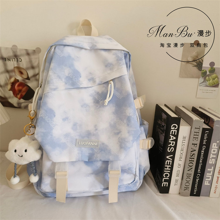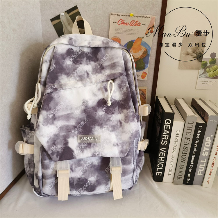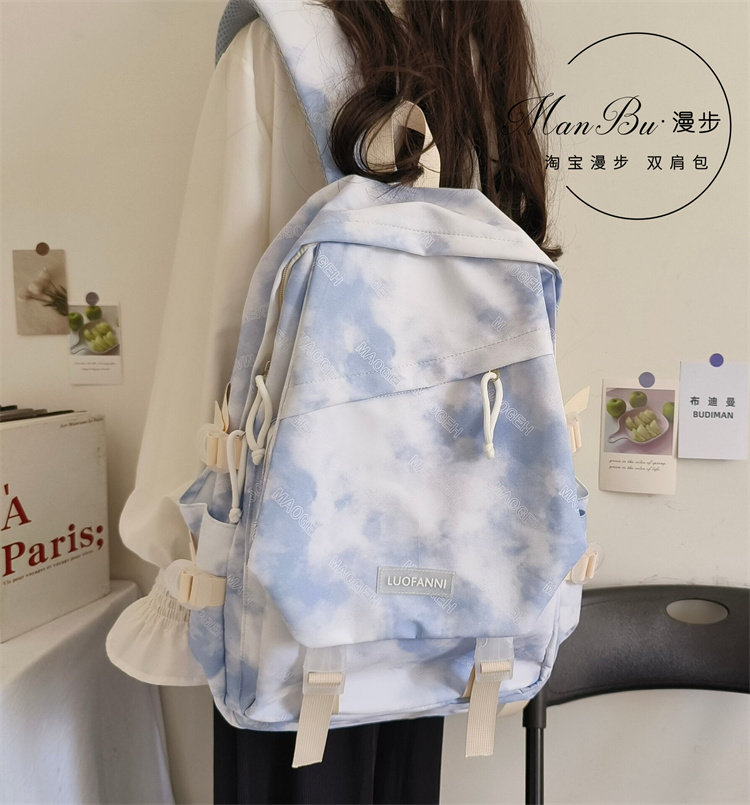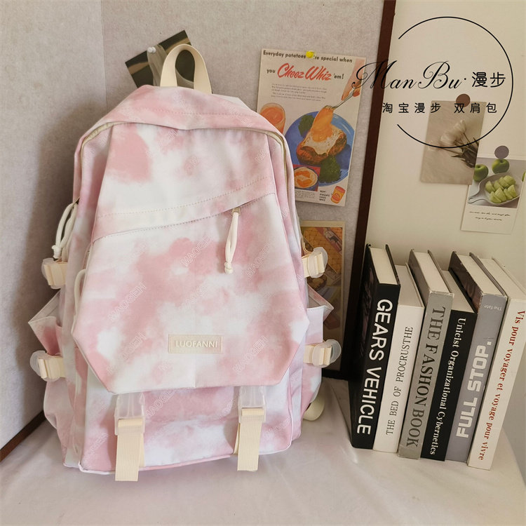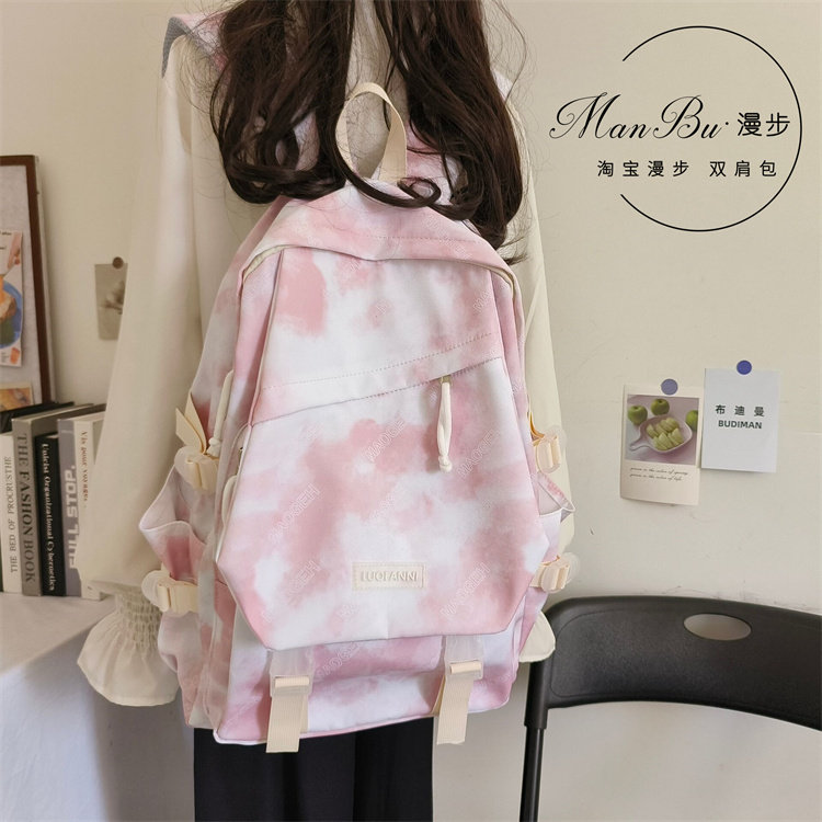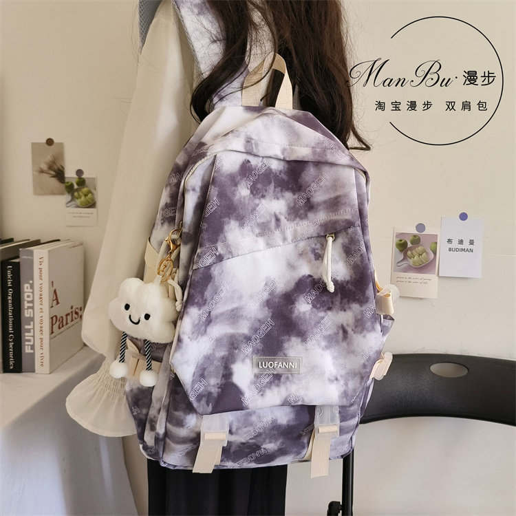 2024 New Niche Design Tie-Dye School Bag for Female Primary and Secondary School Students, Lightweight Backpack for College Students, Casual Travel Backpack