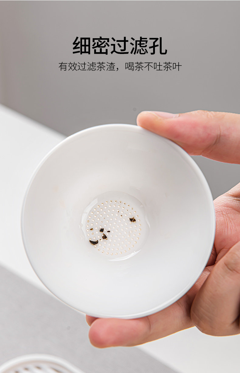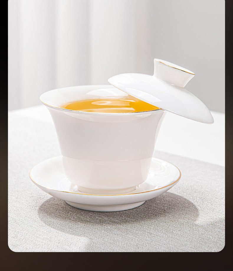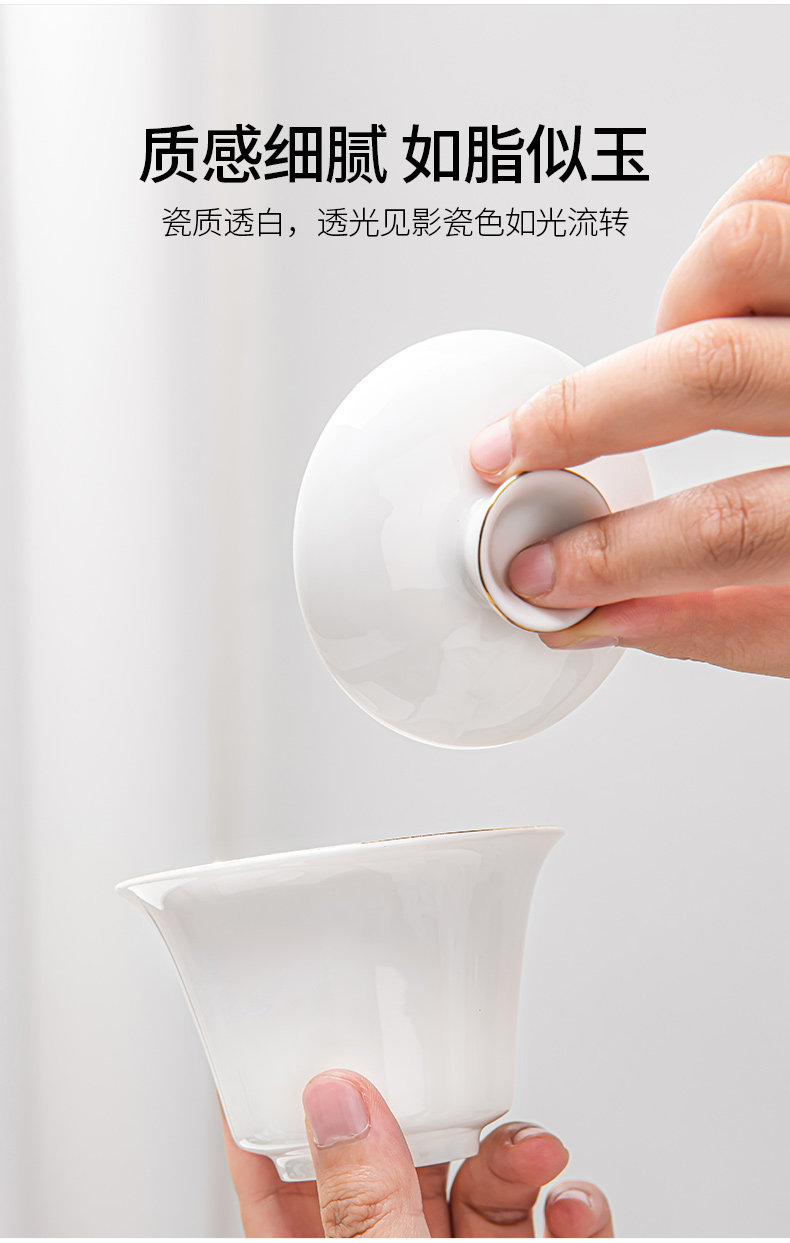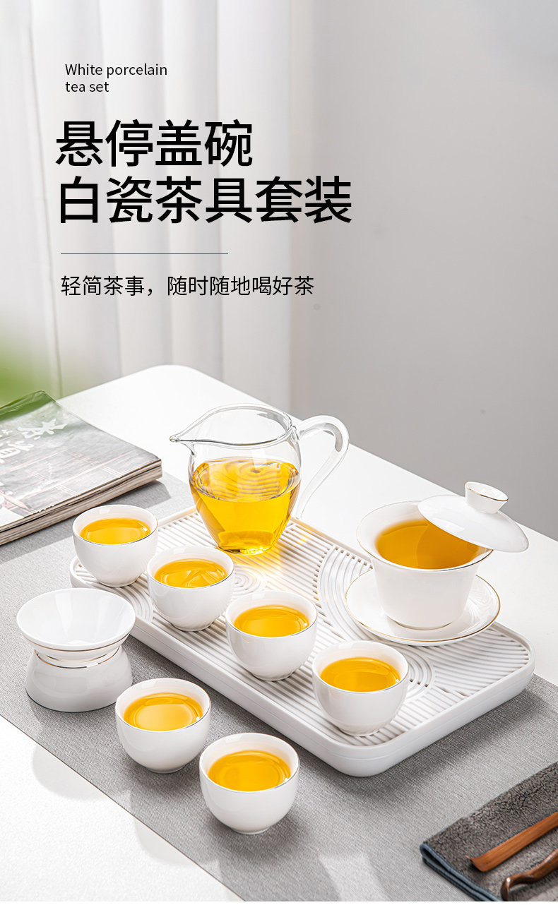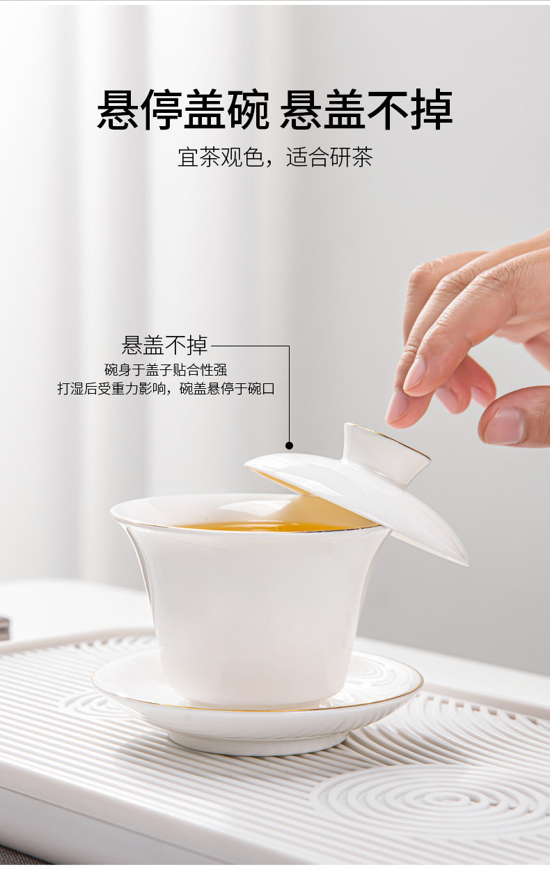 Dehua White Porcelain Gaiwan Tea Set, Can Be Suspended, High-End Chinese-Style Household Tea Brewing Set, Ceramic Kung Fu Tea Cup and Tea Tray