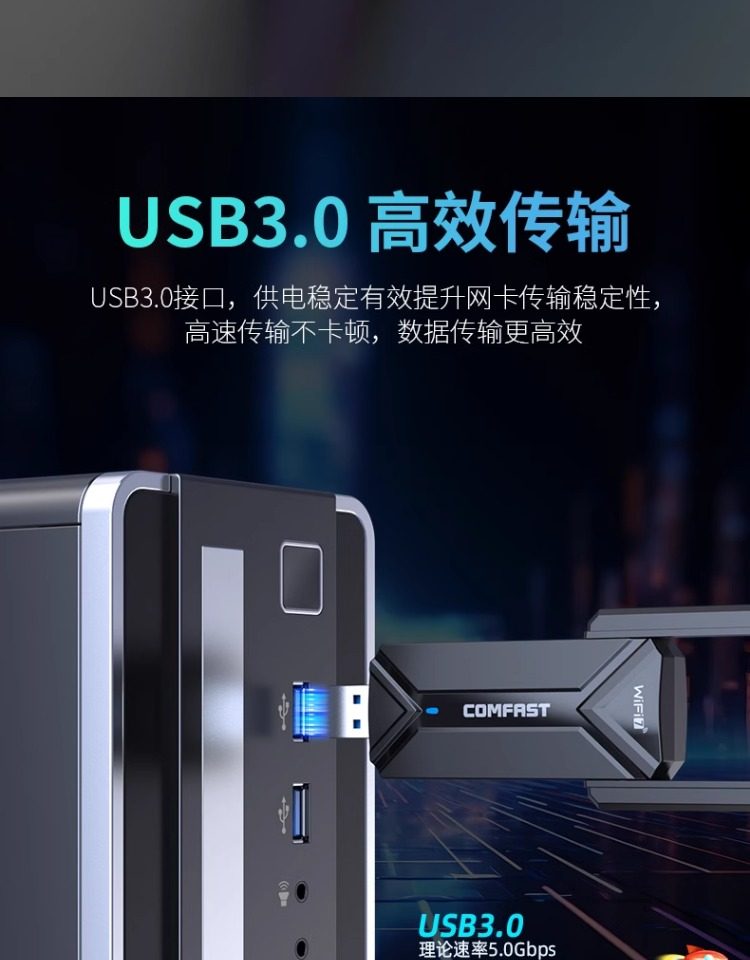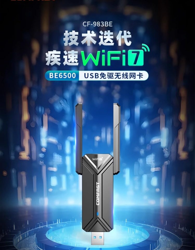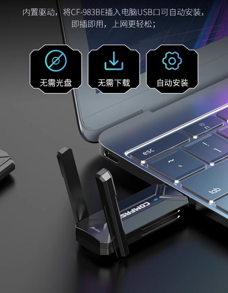 Comfast USB Wireless Network Card Desktop Wifi7 Driver-Free Receiver Transmitter Laptop Host Gigabit 5g Tri-Band 6452m Gaming High-Power Signal through Walls Cf-983Be