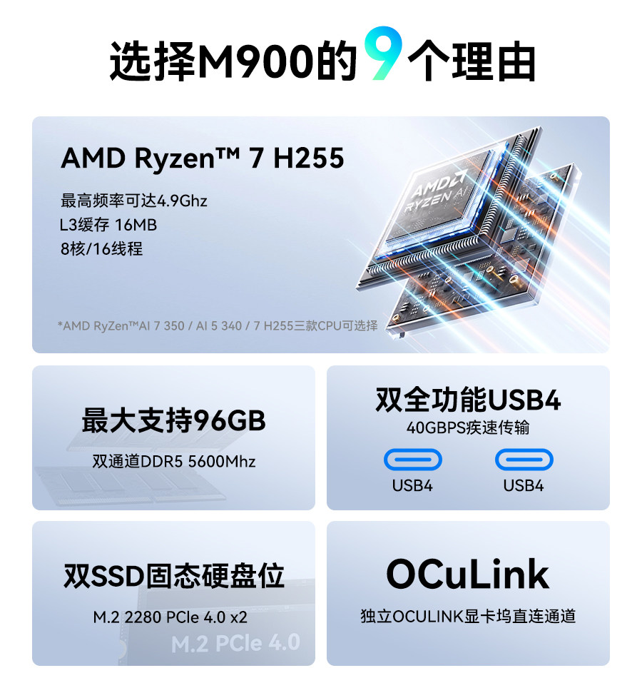 Mofang Ryzen 7H 255 High-Performance Aipc Gaming Win11 Dual Usb4 Office Oculink Independent Graphics Four-Screen 4K