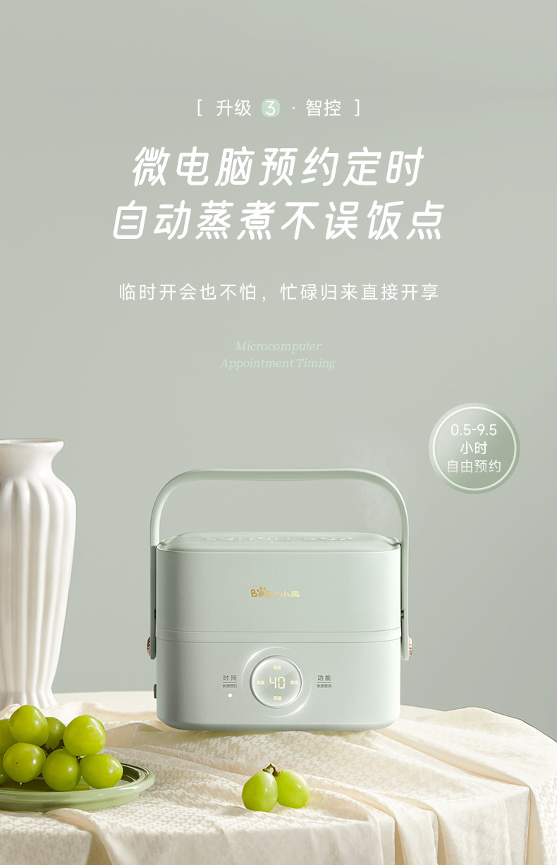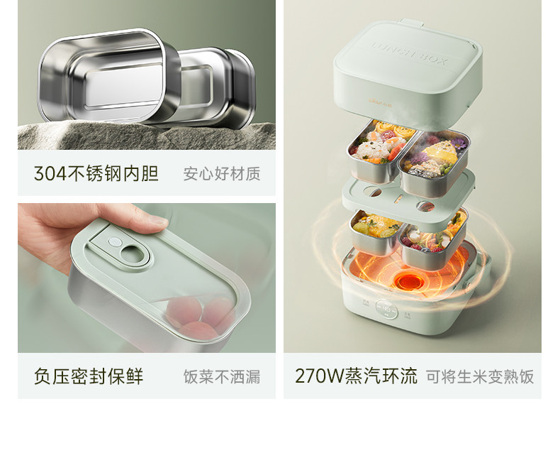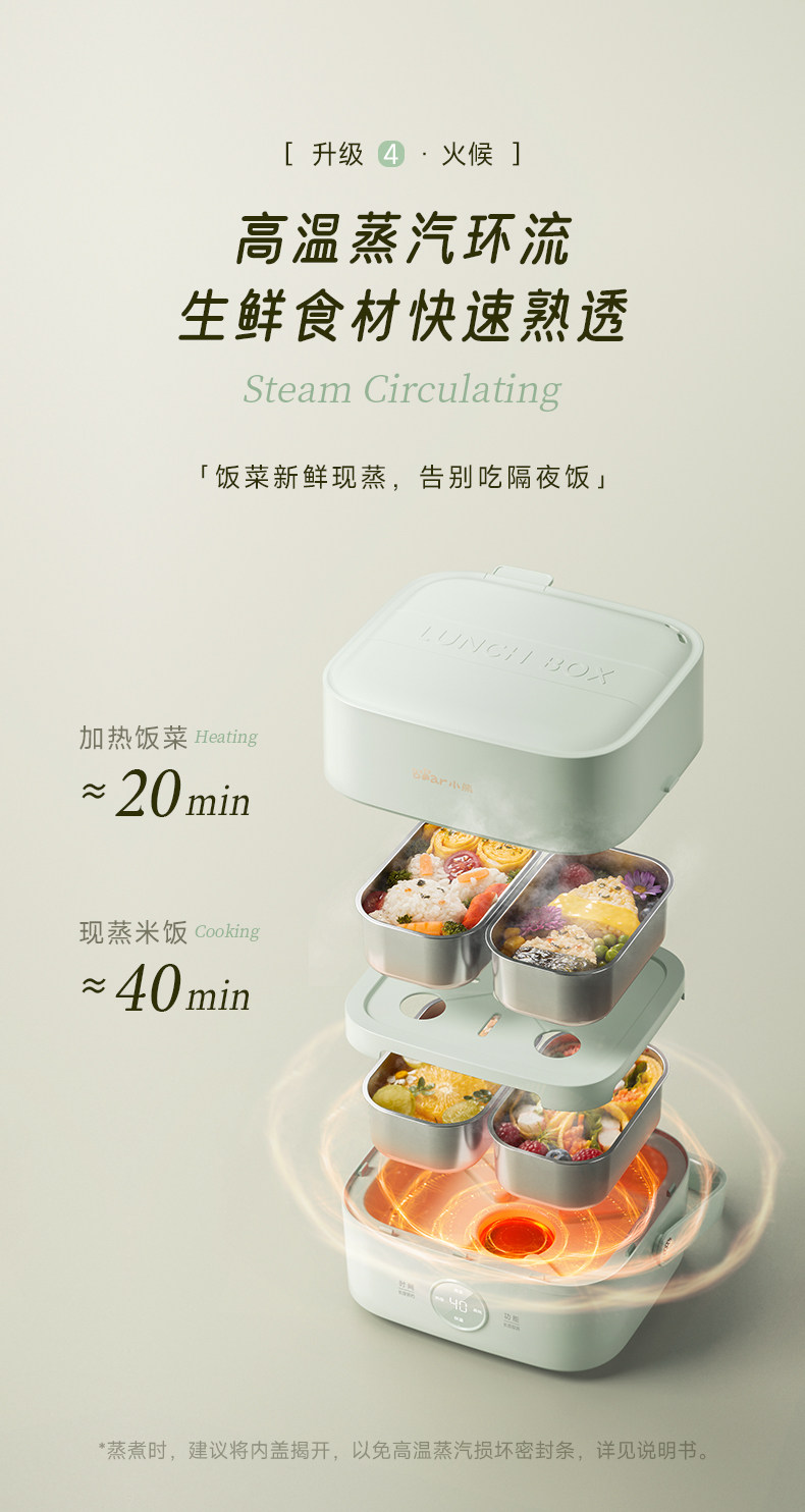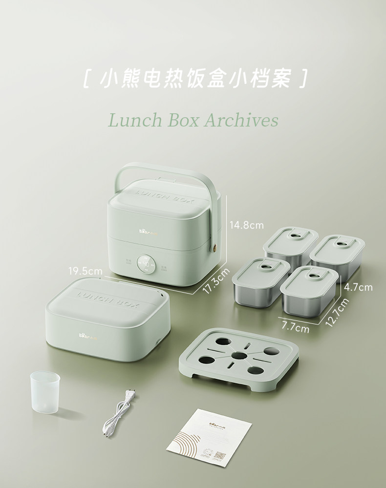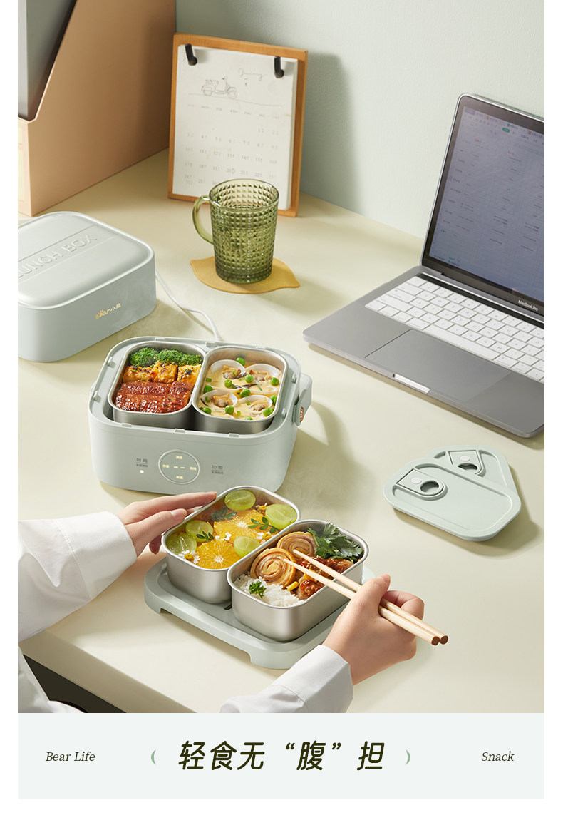 Little Bear Heated Lunch Box Electric Lunch Box Plug-In Insulation Self-Heating Cooking Machine Steaming and Heating Meals Handy Gadget for Office Workers