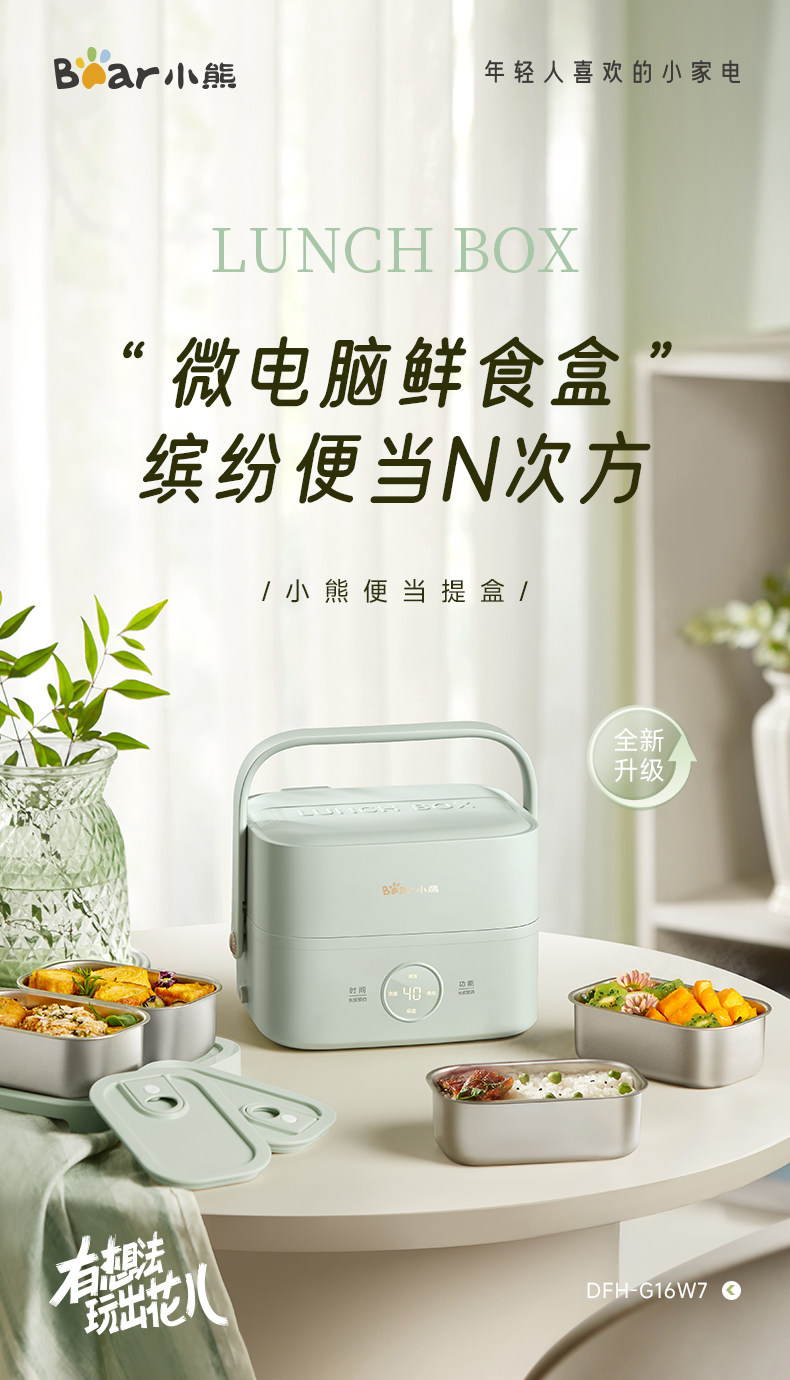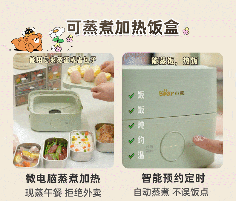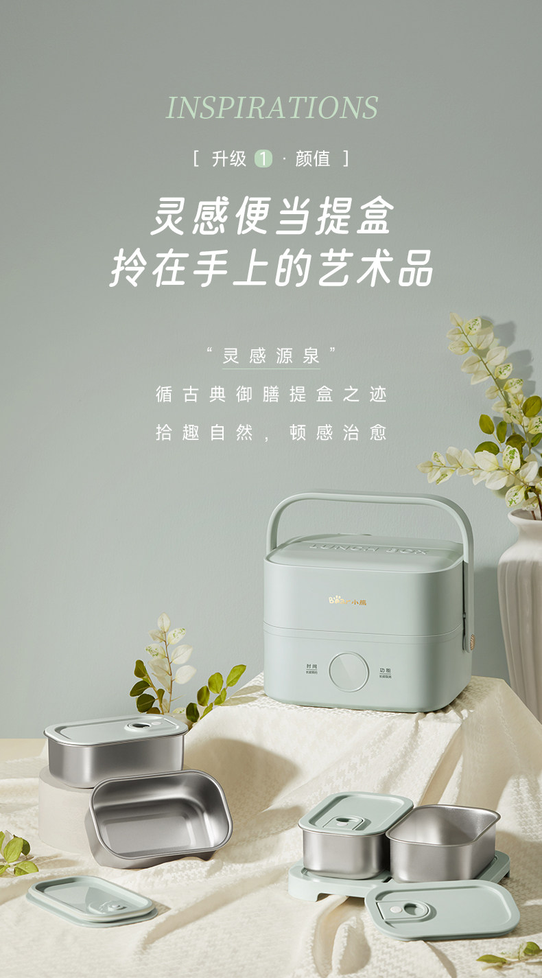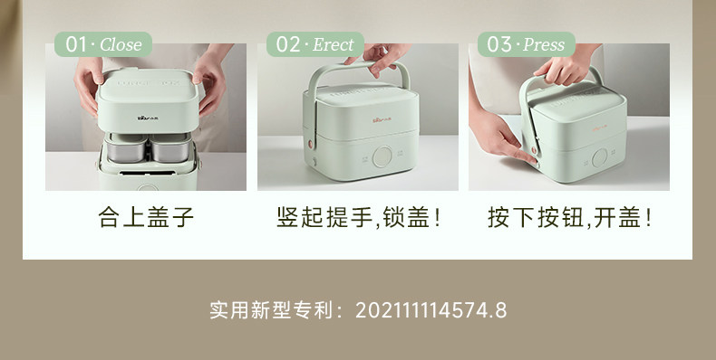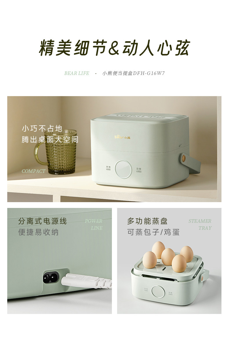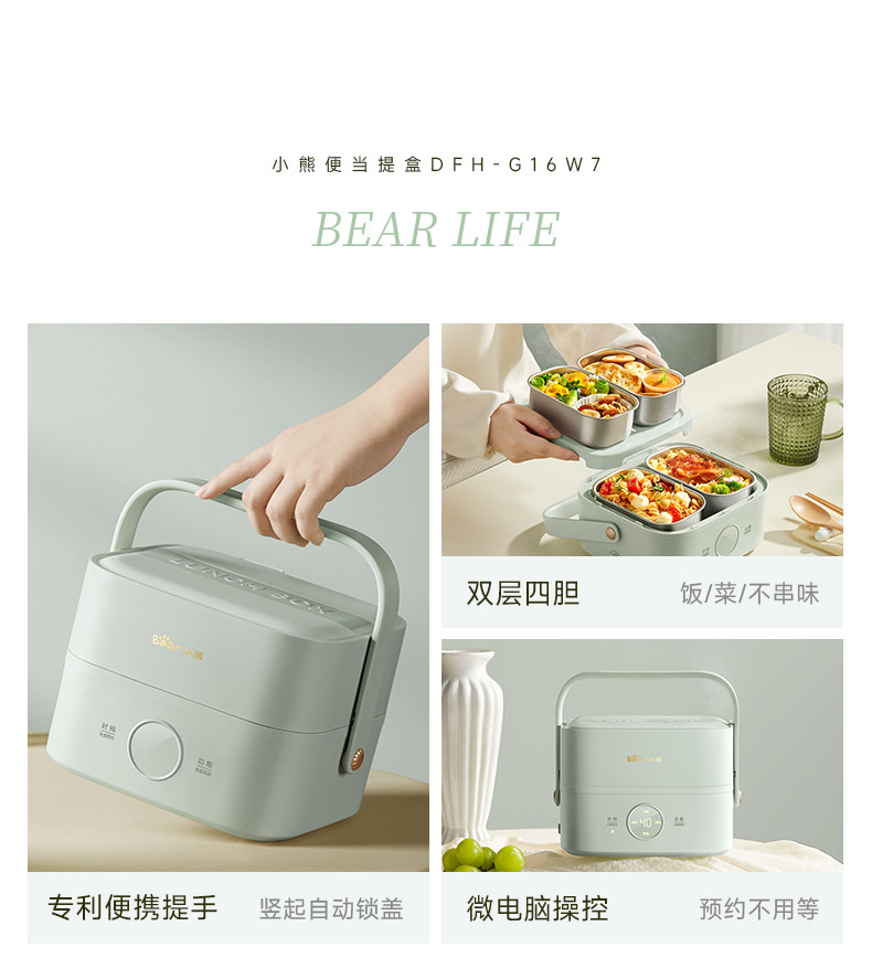 Little Bear Heated Lunch Box Electric Lunch Box Plug-In Insulation Self-Heating Cooking Machine Steaming and Heating Meals Handy Gadget for Office Workers