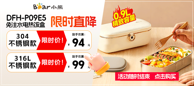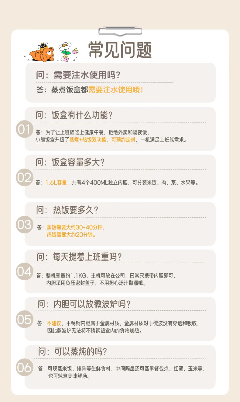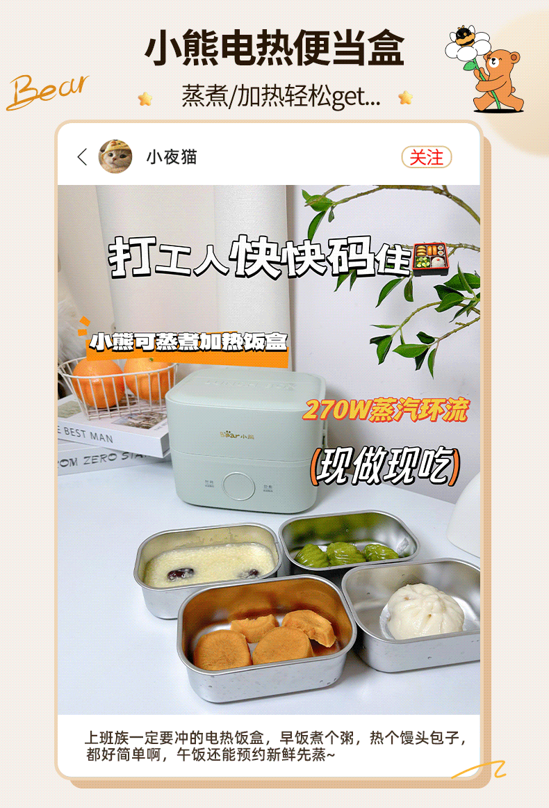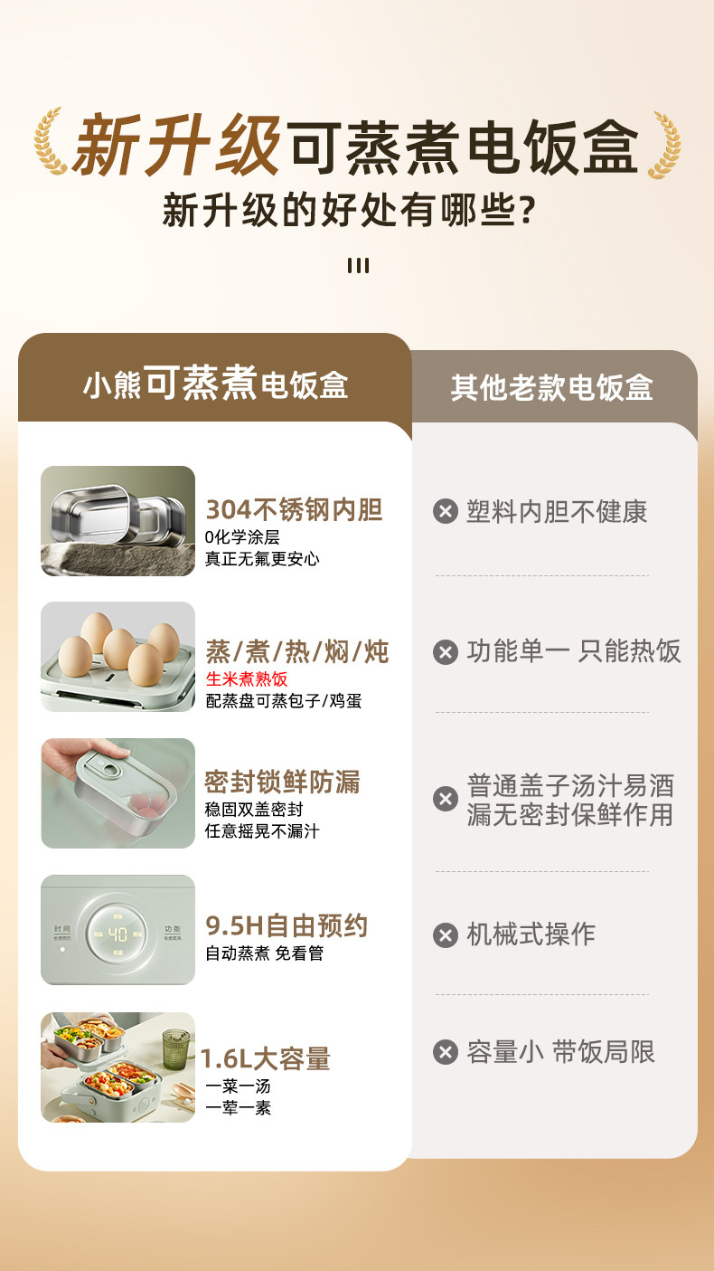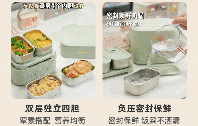 Little Bear Heated Lunch Box Electric Lunch Box Plug-In Insulation Self-Heating Cooking Machine Steaming and Heating Meals Handy Gadget for Office Workers
