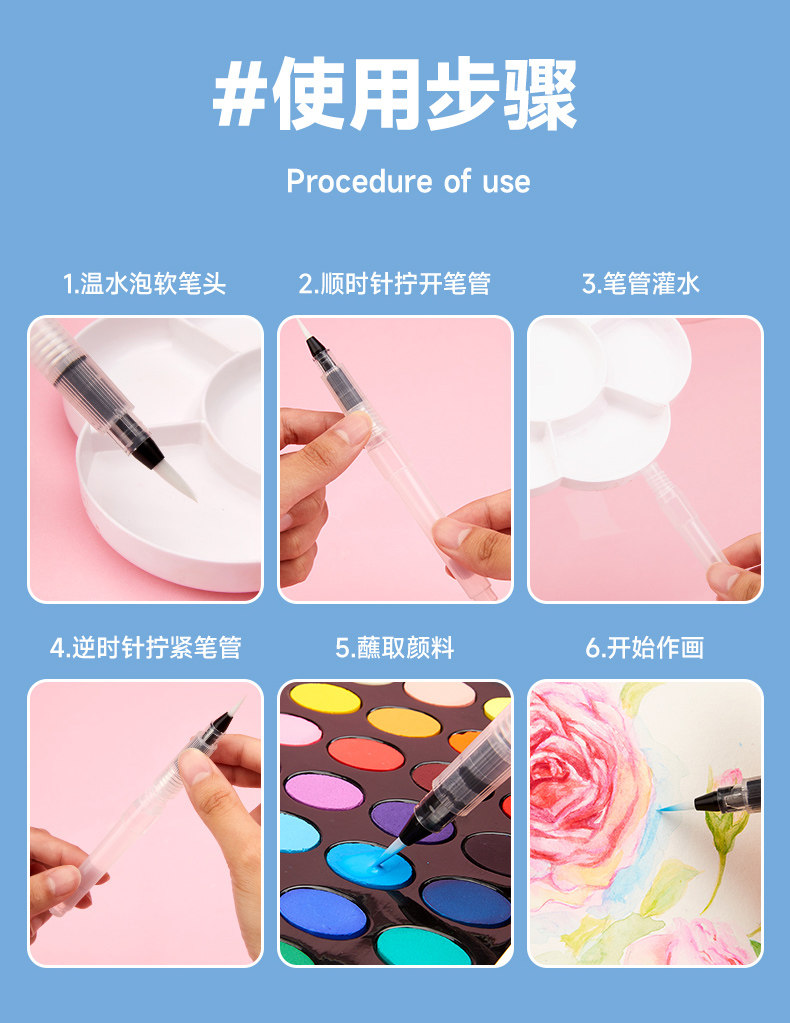 | Color Classification | [Full Set of 6 Pieces in Large, Medium and Small] 3 Pointed Pieces + 3 Flat Pieces,3 Pointed Heads [1 Large, Medium and Small],Pointed Tip 3-Pack [Large Size],Pointed Tip 3-Pack [Medium Size],Pointed Tip 3-Pack [Small Size],3 Flat Heads [1 Each for Large, Medium and Small],Flat Head 3-Pack [Large Size],Flat Head 3-Pack [Medium Size],Flat Head 3-Pack [Small Size],[Complete Watercolor Series] Complete Set of Fountain Pens + 40 Sheets of Watercolor Paper,【Watercolor Set】Pointed Brush Set (3 Sizes: Large, Medium, Small) + 40 Sheets of Watercolor Paper,【Watercolor Set】Pointed Tip 3 Large Brushes + 40 Sheets of Watercolor Paper,【Watercolor Set】Pointed Tip 3 Medium Brushes + 40 Sheets of Watercolor Paper,【Watercolor Set】Pointed Tip 3 Small Brushes + 40 Sheets of Watercolor Paper,【Watercolor Set】Flat Brush Set (Large, Medium, Small) - 3 Brushes + 40 Sheets of Watercolor Paper,【Watercolor Set】Flat Brush 3-Piece Large Size + 40 Sheets of Watercolor Paper,【Watercolor Set】Flat Brush 3-Piece Medium Size + 40 Sheets of Watercolor Paper,【Watercolor Set】Flat Brush 3-Piece Small Size + 40 Sheets of Watercolor Paper |