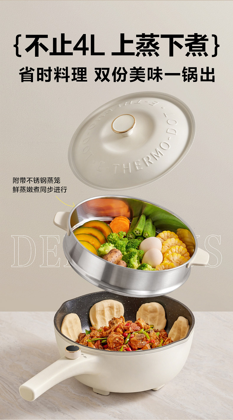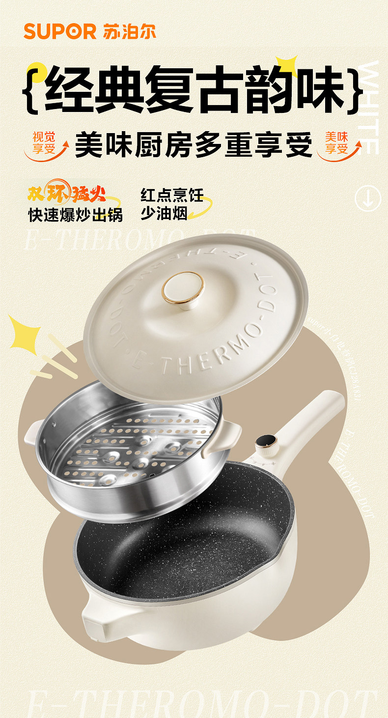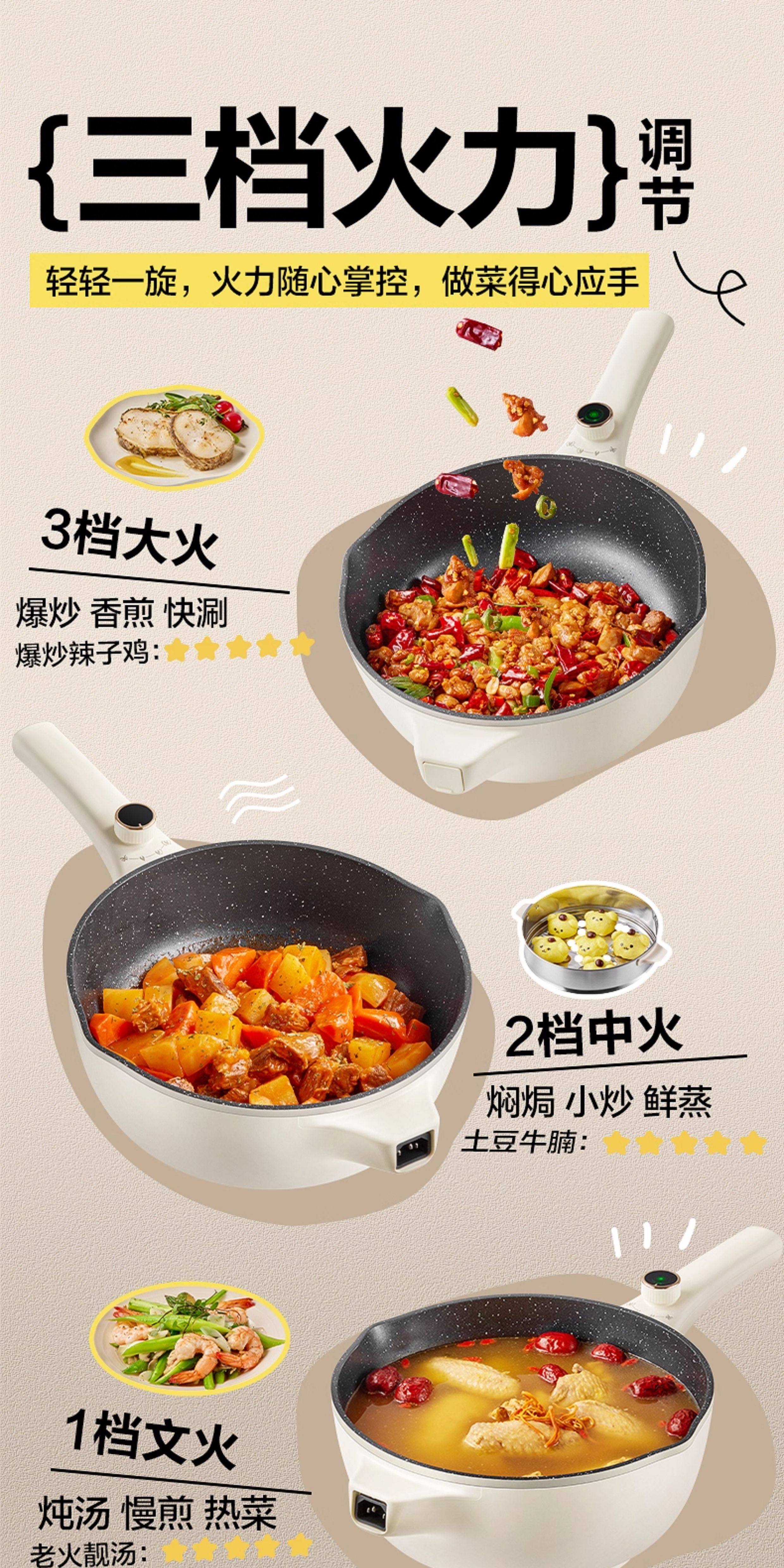Supor Electric Wok Multifunctional Steaming and Cooking Dormitory Electric Cooker Stir-Fry Electric Hot Pot Household Large-Capacity Cooking Machine