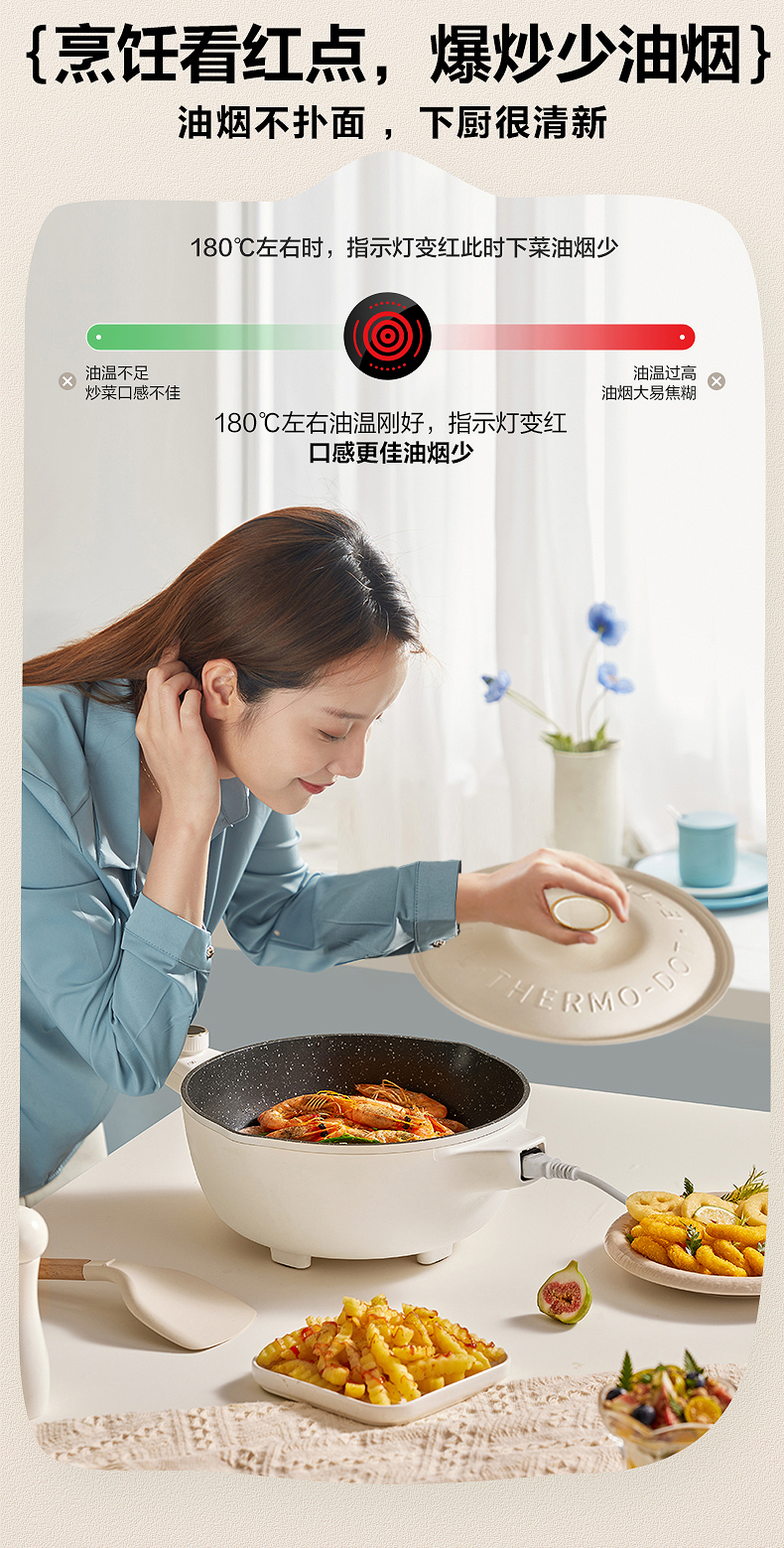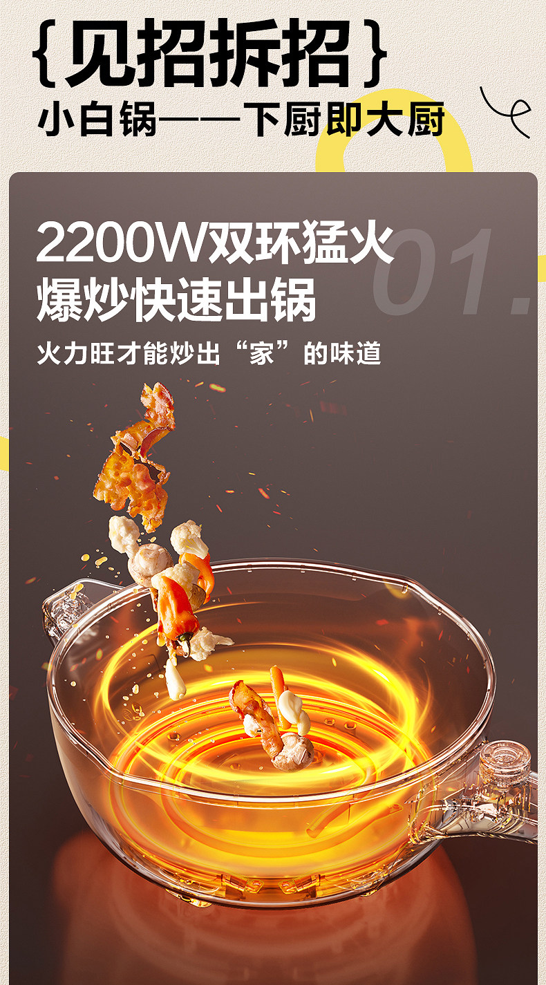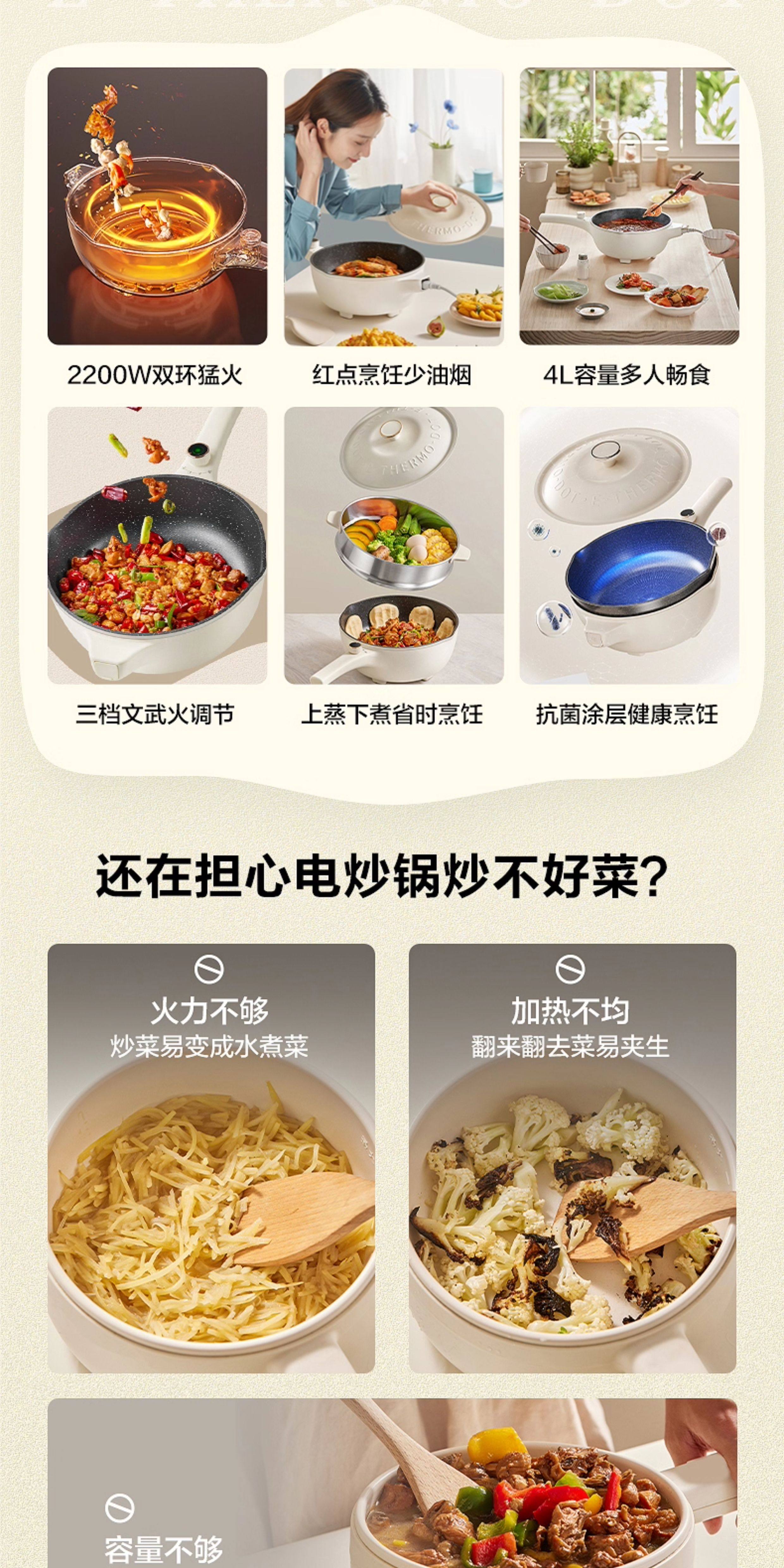 Supor Electric Wok Multifunctional Steaming and Cooking Dormitory Electric Cooker Stir-Fry Electric Hot Pot Household Large-Capacity Cooking Machine