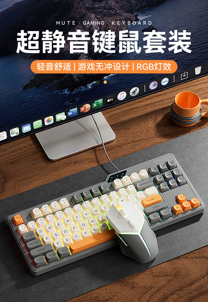 Mengzu Silent Mechanical Keyboard and Mouse Set Wired Keyboard and Mouse for Laptops, Office, E-Sports and Games