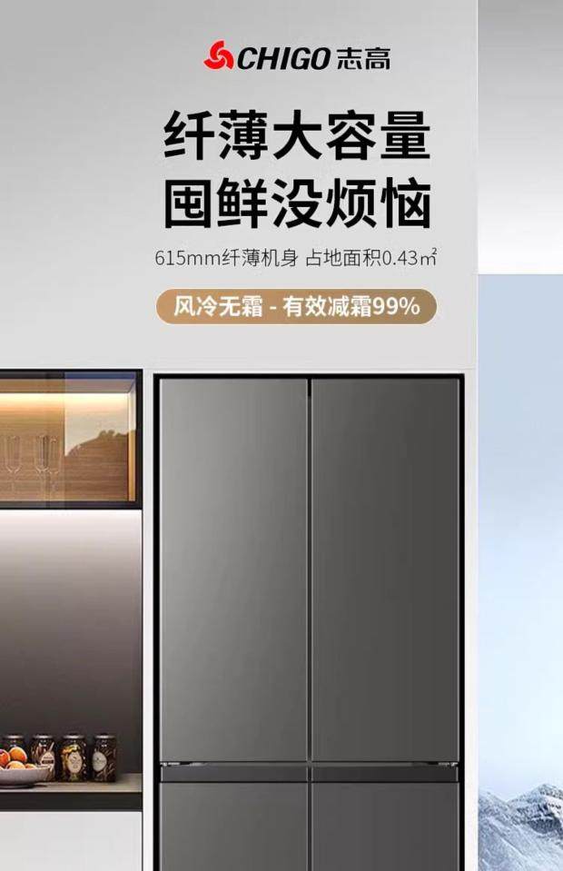Chigo Refrigerator First-Class Energy Efficiency 436/458L Cross-Door Double-Door Four-Door Household Ultra-Thin Frost-Free Large Capacity