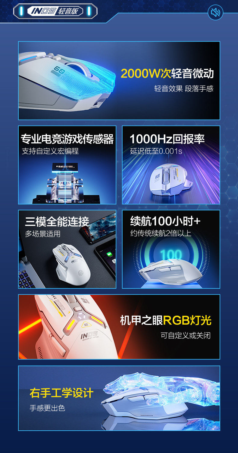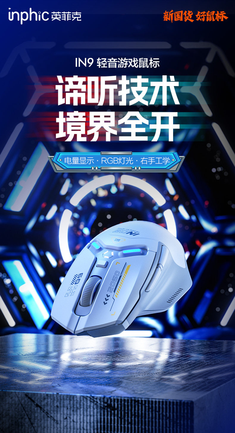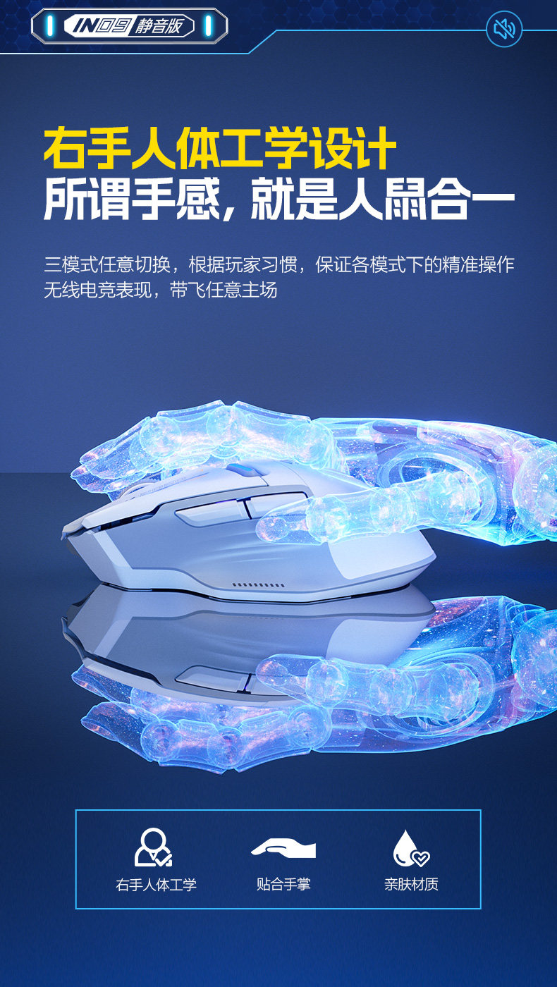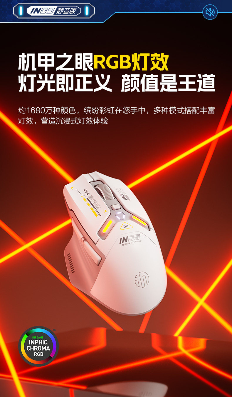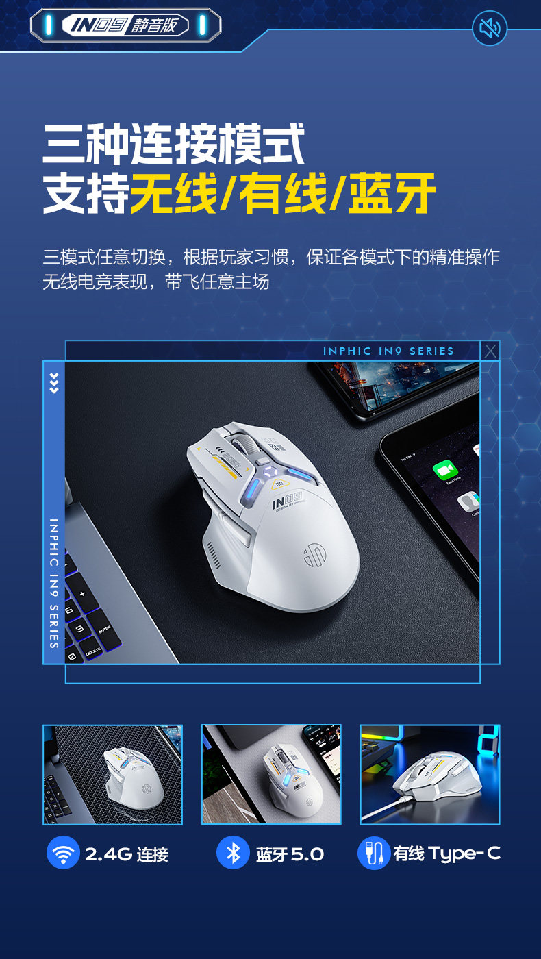 Inphic In9 Wireless Three-Mode Mouse Bluetooth Wired Silent Computer Laptop Rechargeable Silent Gaming E-Sports