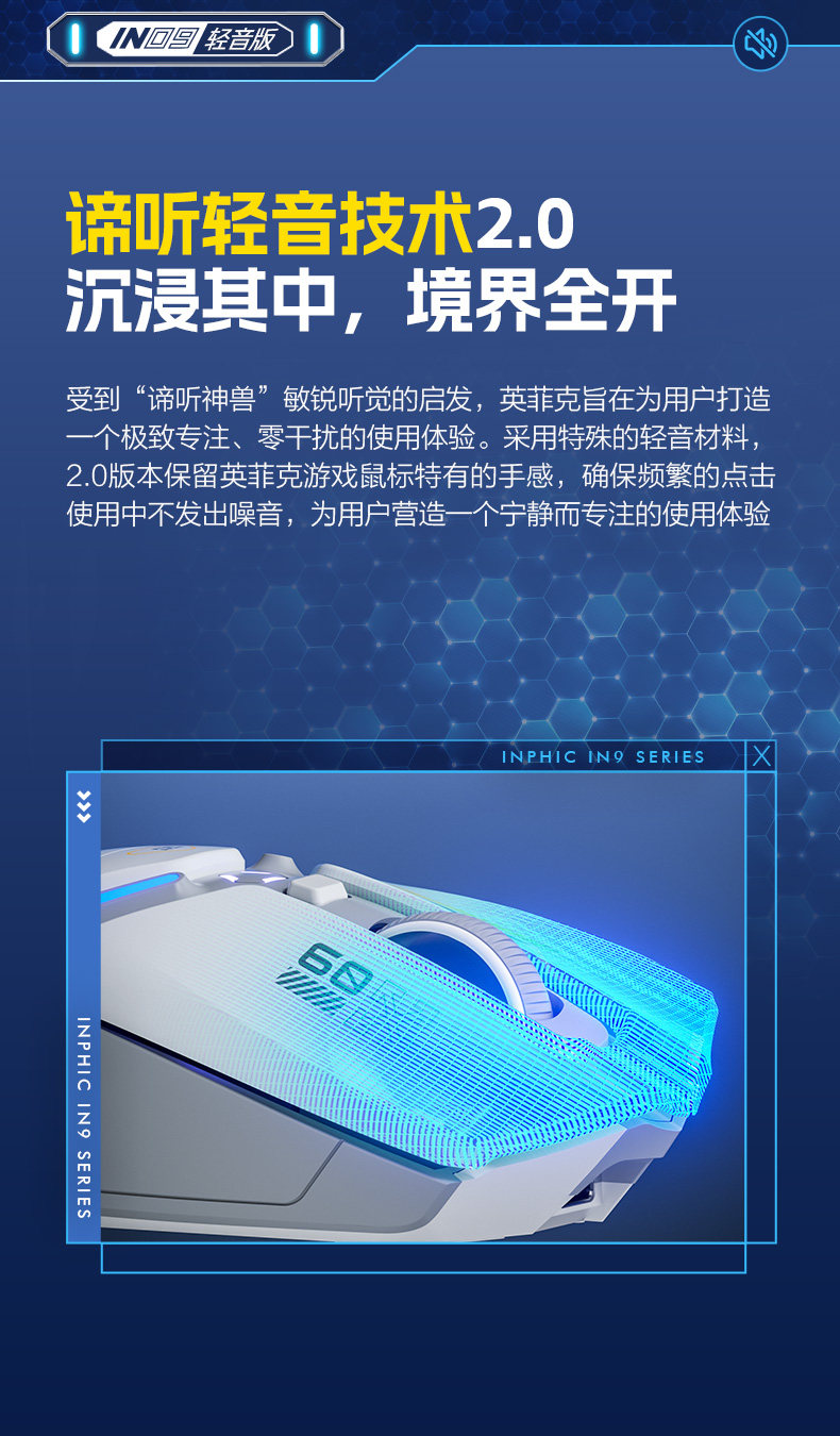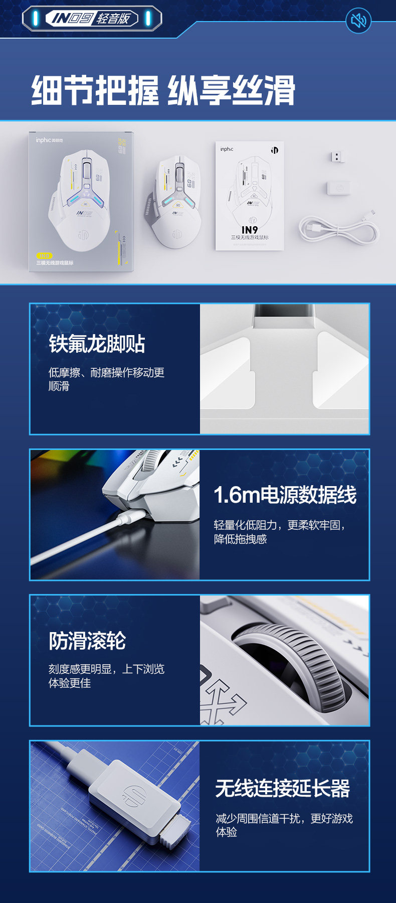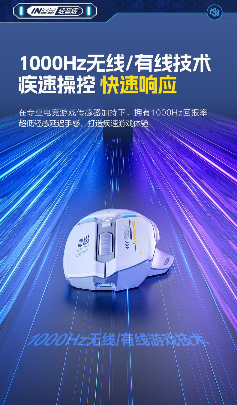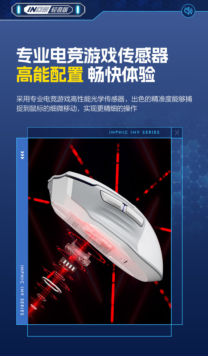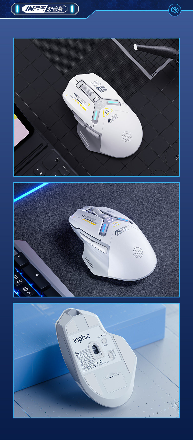 Inphic In9 Wireless Three-Mode Mouse Bluetooth Wired Silent Computer Laptop Rechargeable Silent Gaming E-Sports