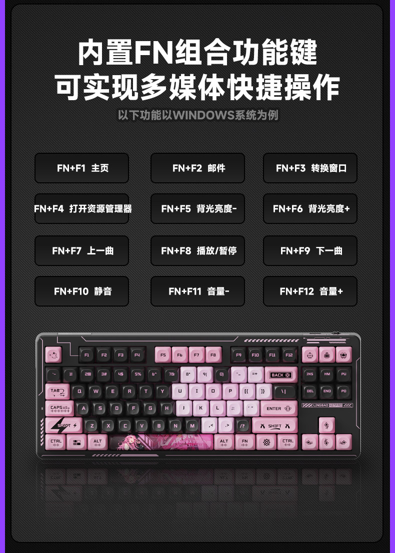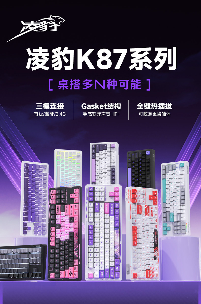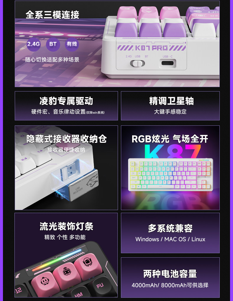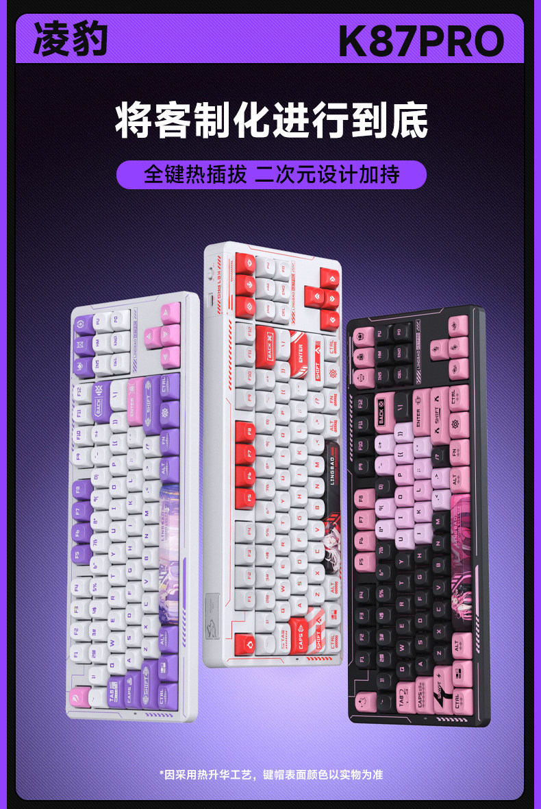 Lingbao K87 Wireless Three-Mode Mechanical Keyboard Customized Side-Engraved Gaming Desktop Notebook Blackberry Pink