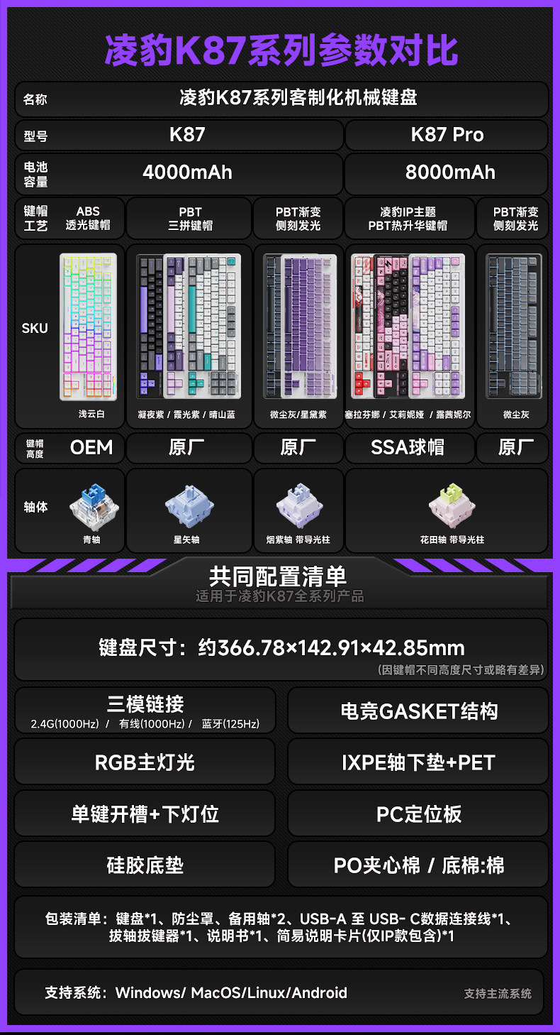 | Color Classification | [Lingxiao Wukong-Flower Field Axis]Tri-Mode Wireless Theme Ip Version - 8000Mah,[Alenia - Floral Field Axis]Tri-Mode Wireless Theme Ip Version - 8000Mah,[Lucineil-Flower Field Axis]Tri-Mode Wireless Theme Ip Version - 8000Mah,[Senafina-Flower Field Axis]Tri-Mode Wireless Theme Ip Version - 8000Mah,[Black Shell-Blackberry Powder-Smoky Purple Shaft]Tri-Mode Wireless Version-4000 Mah,[White Shell-Blackberry Powder-Smoky Purple Shaft]Tri-Mode Wireless Version-4000 Mah,[Blackberry Powder Pro-Flower Field Axis]Three-Mode Wireless Side-Engraved Version-8000 Mah,[White Shell-Blackberry Powder Pro-Flower Field Axis]Three-Mode Wireless Side-Engraved Version-8000 Mah,[Dusty Gray - Smoky Purple Switch]Three-Mode Wireless Side-Engraved Version-4000 Mah,[Blackberry Powder-Red Rabbit Axis]Three-Mode Wireless Side-Engraved Version-4000 Mah,[Starlight Purple - Smoky Purple Switch]Three-Mode Wireless Side-Engraved Version-4000 Mah,[Glowing Purple-Smoky Purple Axis]Tri-Mode Wireless Version-4000 Mah,[Qingshan Blue-Smoky Purple Axis]Tri-Mode Wireless Version-4000 Mah |