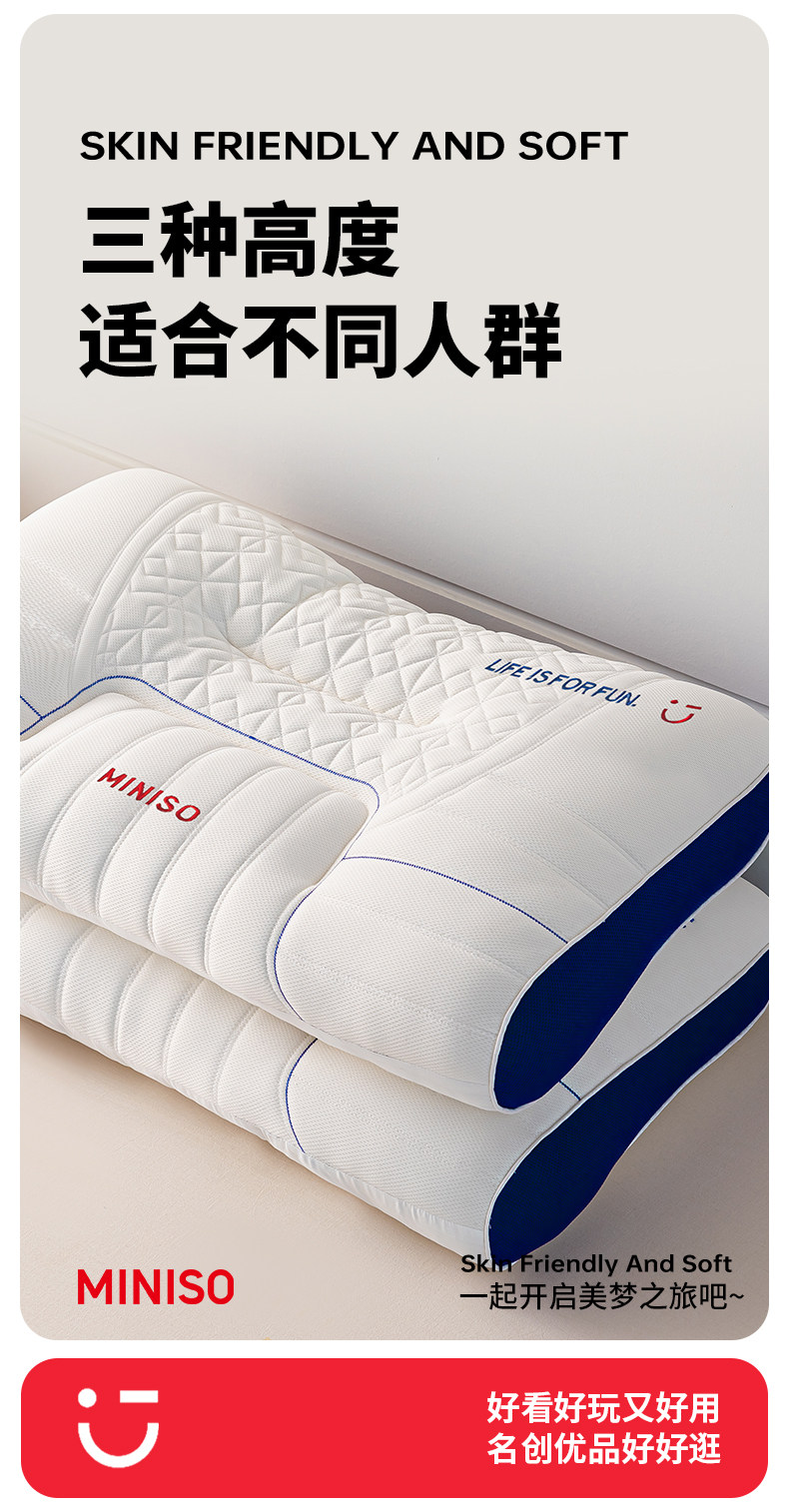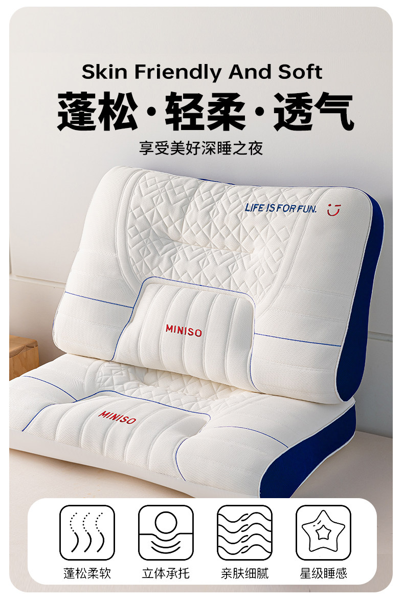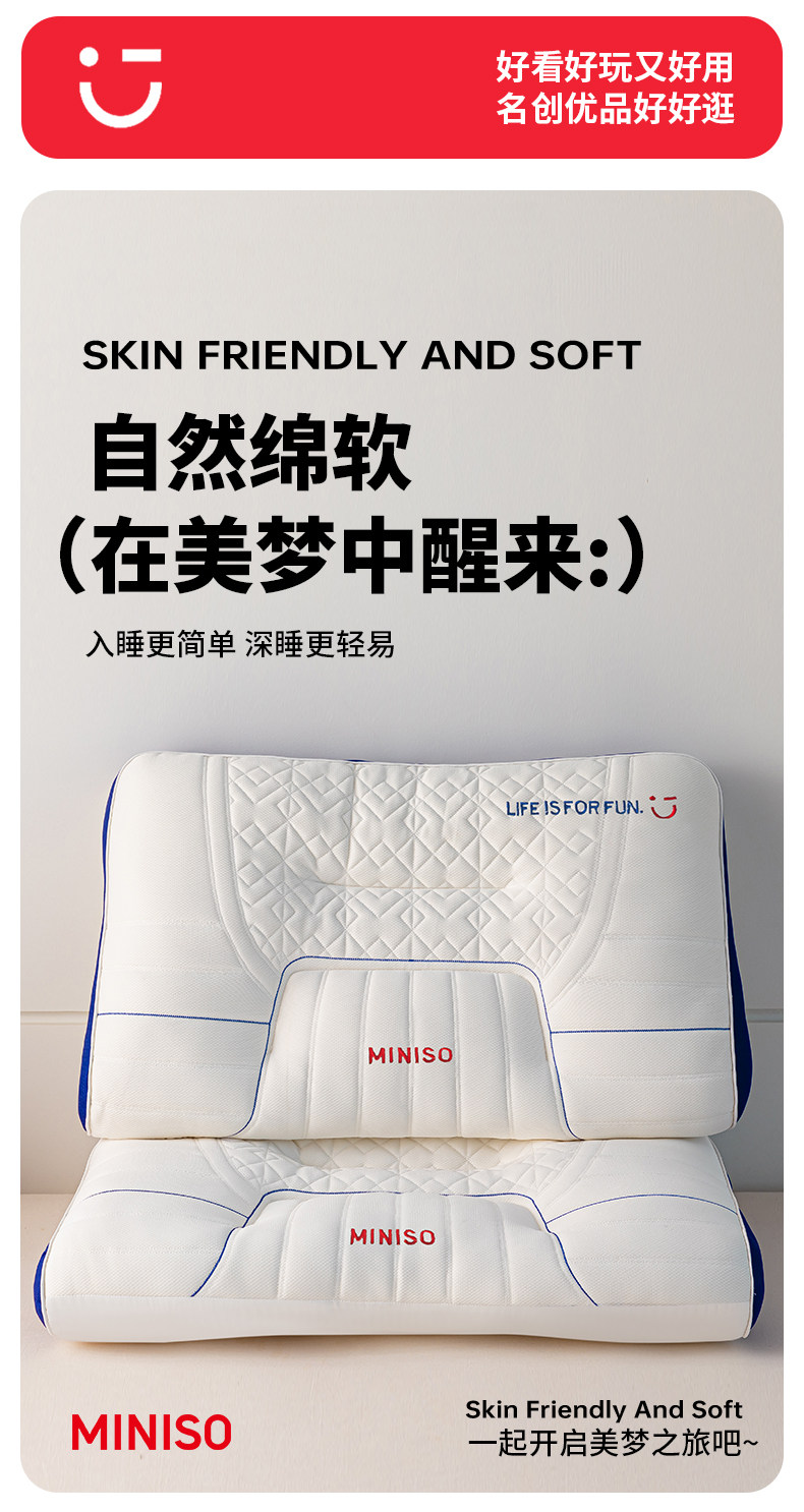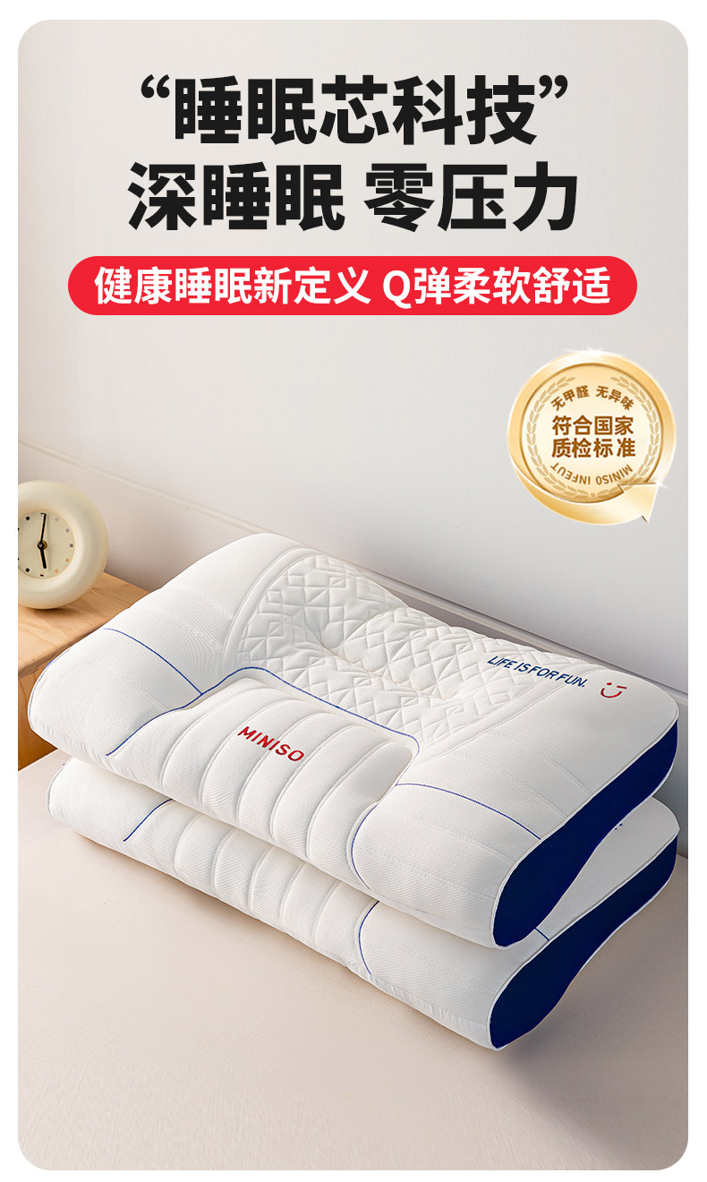 Miniso Premium Pillow Core Latex Cervical Spine Support Sleep Aid Memory Foam Pillow Single Dormitory Adult Home Use Pair