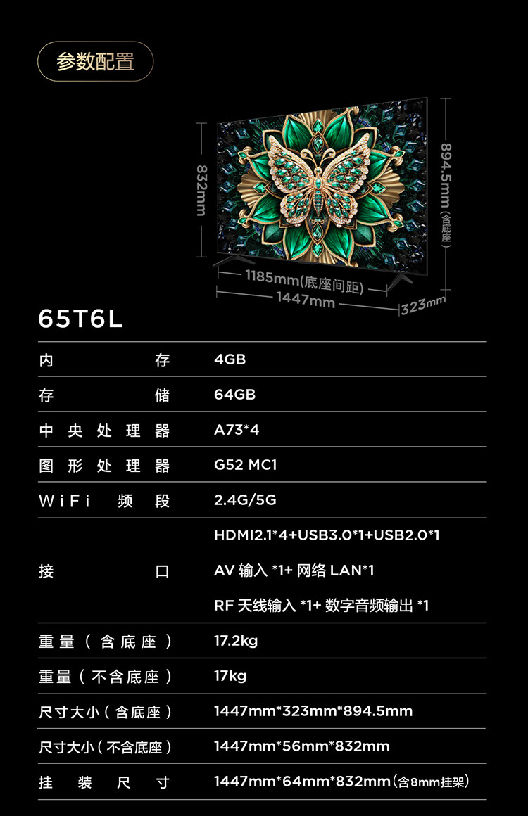 | Full Screen Size Including Borders | 1447X56X832 mm |