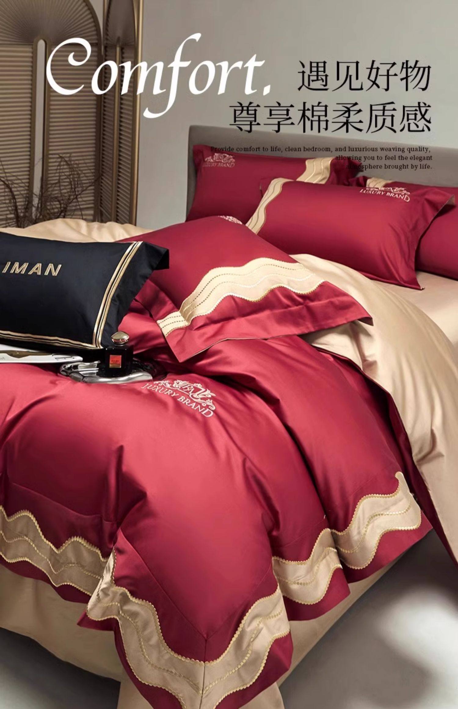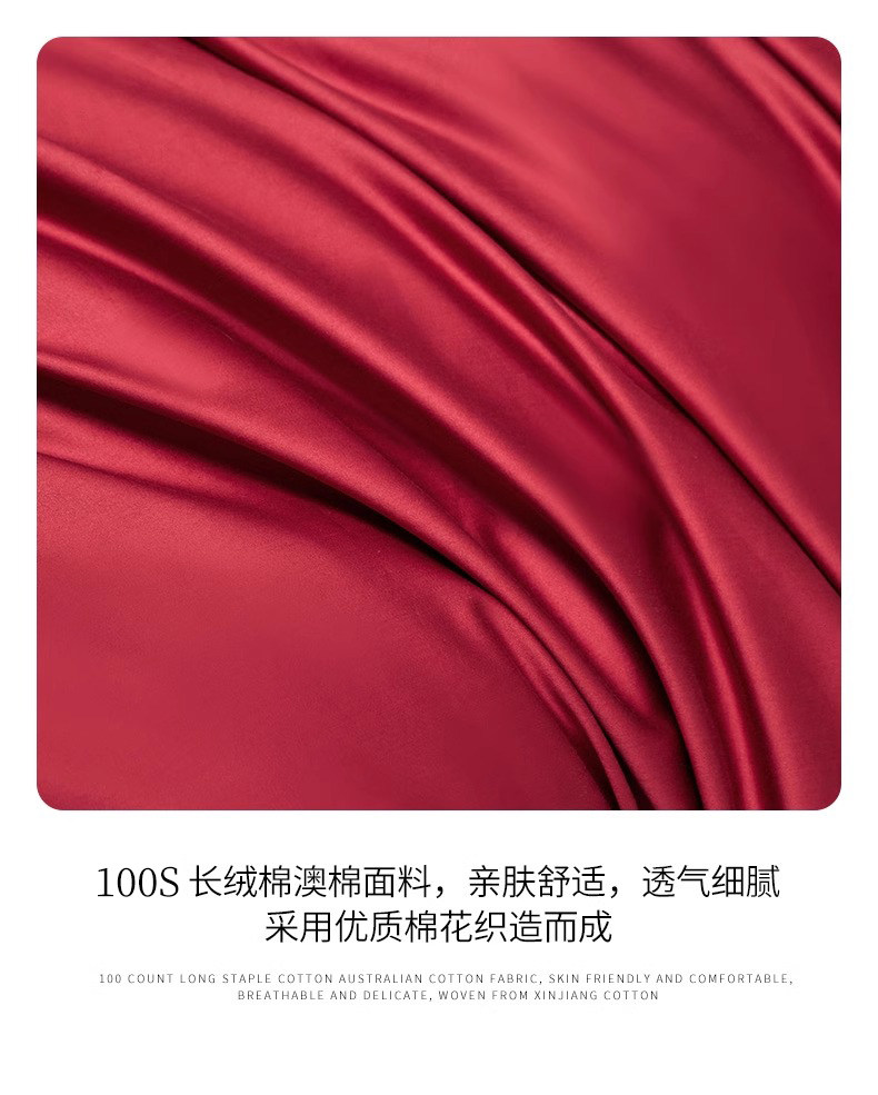 High-End 100S Wedding Four-Piece Set, Bright Red Duvet Cover, Bed Sheet, Festive Wedding Gift for Newlyweds, Wedding Bedding
