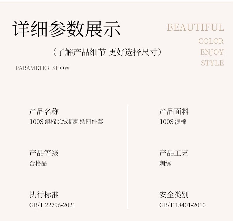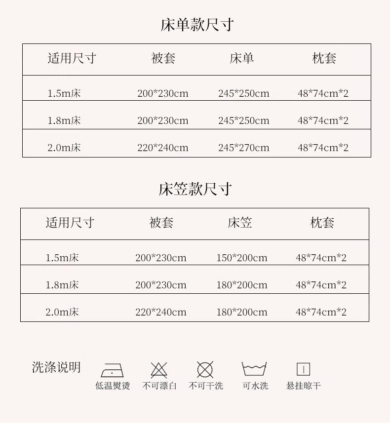 | Applicable Bed Size | Suitable for 1.5m Bed Sheet Style Four-Piece Set, It Is Recommended to Match 200*230cm Quilt Core,Suitable for 1.8m Bed Sheet Style Four-Piece Set, It Is Recommended to Match 200*230cm Quilt Core,Suitable for 1.8-Meter Bed Sheet Sets (4-Piece Set). We Recommend Pairing It with a 220*240cm Duvet Insert.,Suitable for 1.5m Bed Fitted Sheet Set of Four, It Is Recommended to Match 200*230cm Quilt Core,Suitable for 1.8m Bed Fitted Sheet Set of Four, It Is Recommended to Match 200*230cm Quilt Core,Suitable for 1.8m Bed, Extra-Large Fitted Sheet Style Four-Piece Bedding Set. We Recommend Pairing It with a 220*240cm Duvet Insert. |