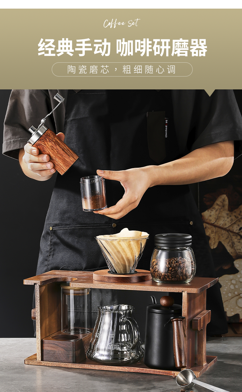 Hand-Brewed Coffee Pot Set with High-End Stand, Small Household Appliance, Complete Set of Manual Grinder, Hand-Cranked Coffee Machine