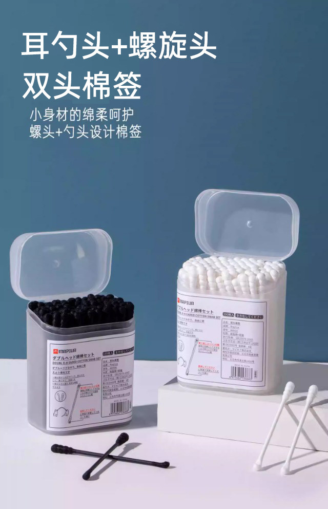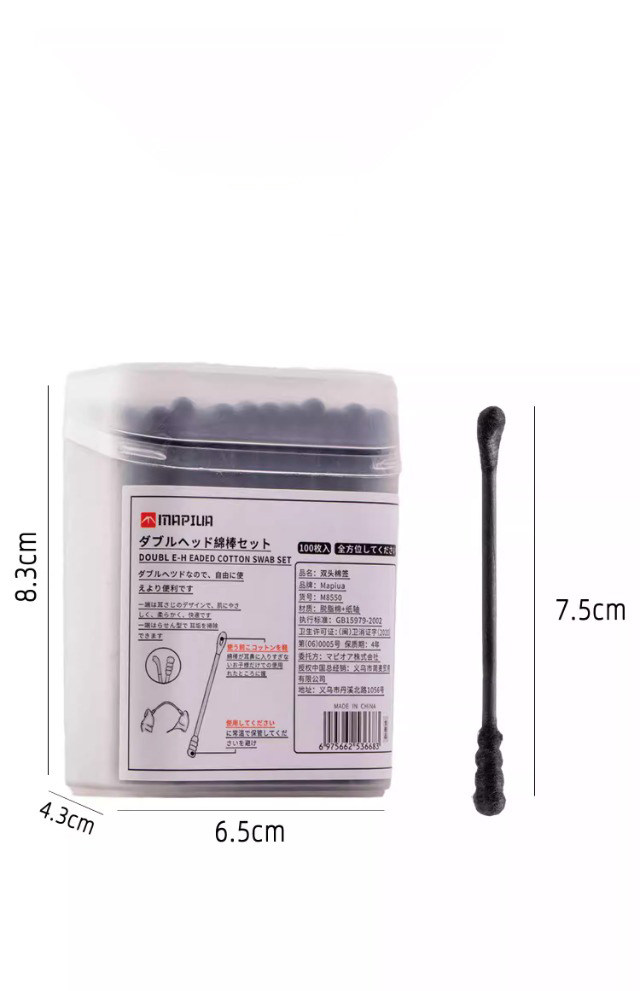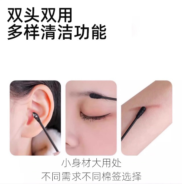 Japanese-Style Special Ear Cleaning Cotton Swabs, Black Double-Headed Disposable Ear Pick Cotton Swabs, Ear Cotton Swabs for Ear Cleaning and Makeup Use