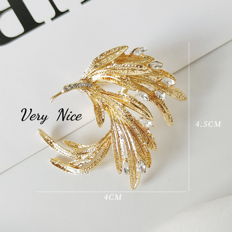 Chinese Style Brooch, Vintage Enamel Inlaid with Diamonds, Phoenix Tail Brooch, Light Luxury, High-End Elegant Corsage, Coat and Suit Accessories