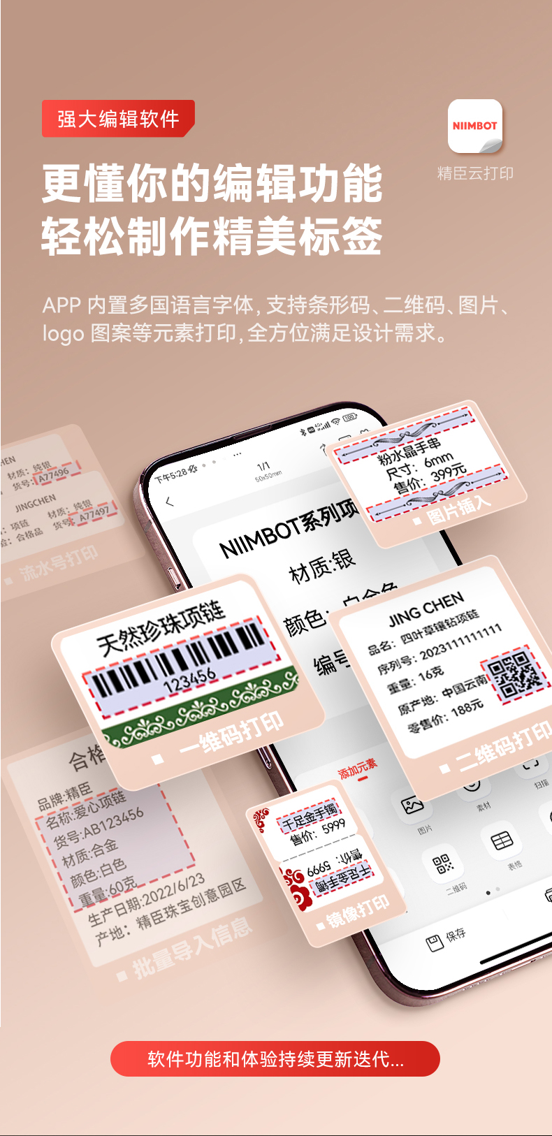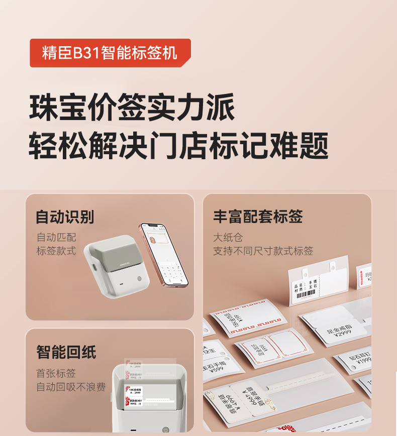Jingchen B31/B3S Jewelry Label Printer, Handheld Small Bluetooth Price Tag Printer for Jewelry, Glasses, Watches, Bracelets, Rings, Necklaces, Gold, Jade, and Other Accessories