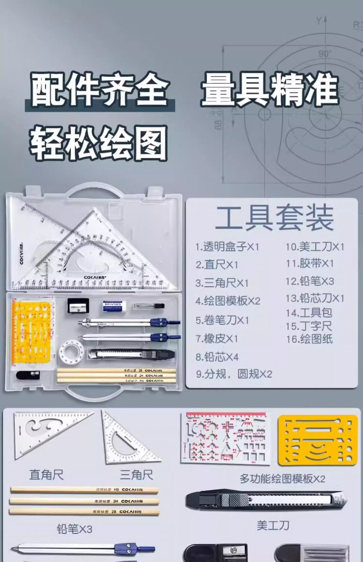 | Color Classification | [High Quality 19 Piece Set]Classic Transparent Box,[High Quality 20 Piece Set]Classic Canvas Bag,[Transparent Box 19-Piece Set]+60Cm T-Square,[Canvas Bag 20-Piece Set]+60Cm T-Square,[Transparent Box 19-Piece Set]+69-Piece Tool Set,[Canvas Bag 20-Piece Set]+69-Piece Tool Set,[Transparent Box 19-Piece Set]+3 Simple Black Pens,[Canvas Bag 20-Piece Set]+3 Simple Black Pens,[Transparent Box 19-Piece Set]+10 Wood Pencils,[Canvas Bag 20-Piece Set]+10 Wood Pencils,[Transparent Box 19-Piece Set]+19-Piece Tool Set,[Canvas Bag 20-Piece Set]+19-Piece Tool Set |