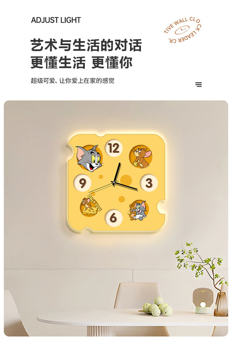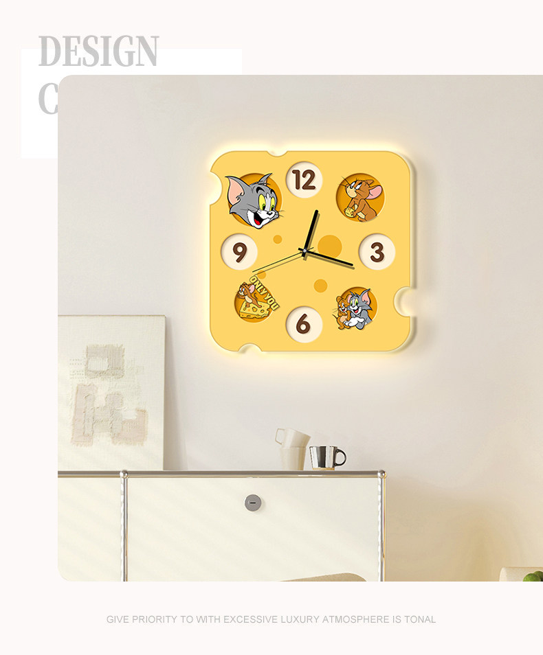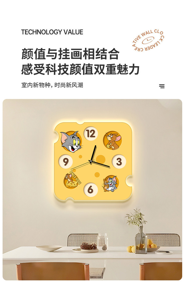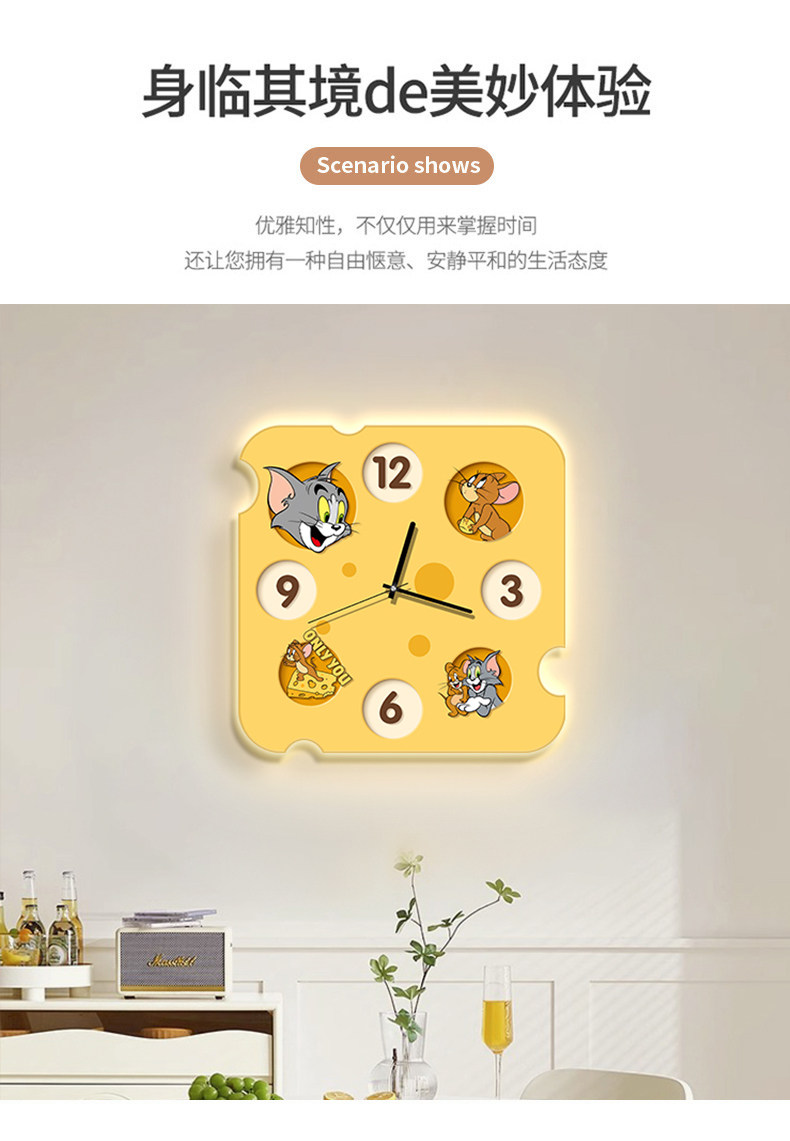 Tom and Jerry Living Room Wall Clock, Cream Style Dining Room Wall Lamp, Silent Creative No-Drill Clock