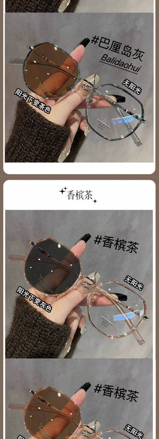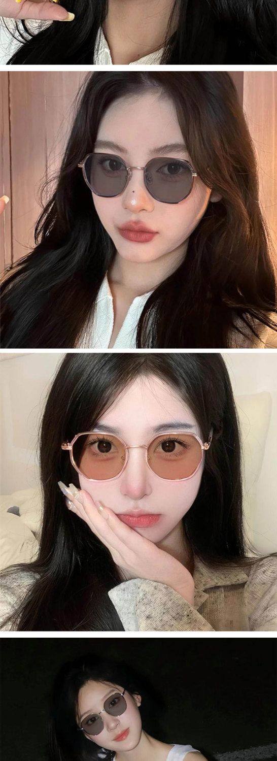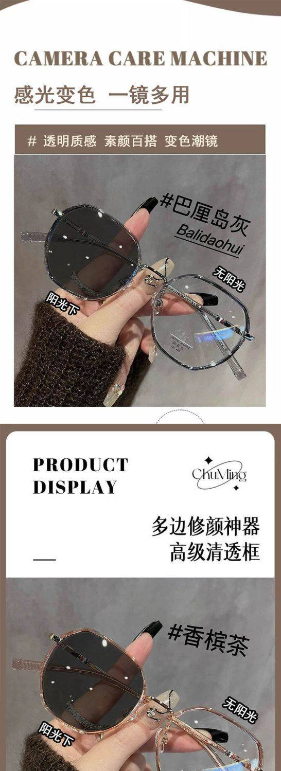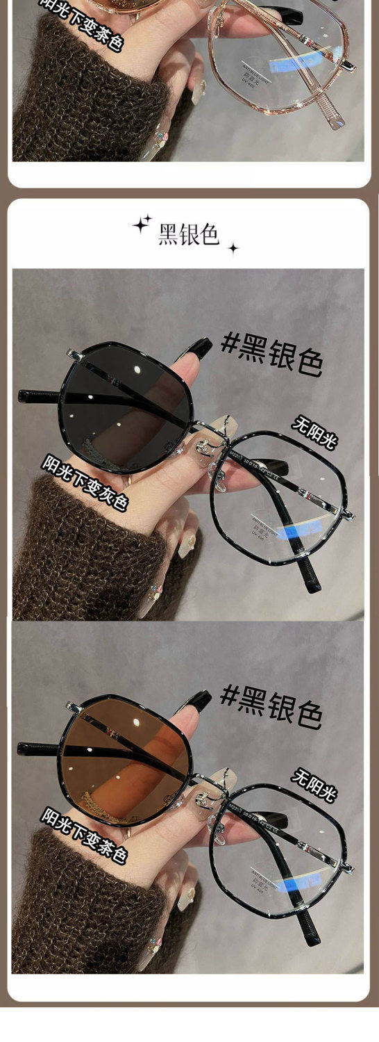 Polygonal Photochromic Myopia Glasses for Women, Can Be Fitted with Prescription Lenses, Korean Style, Natural Look, Face-Slimming, for Elementary School Students
