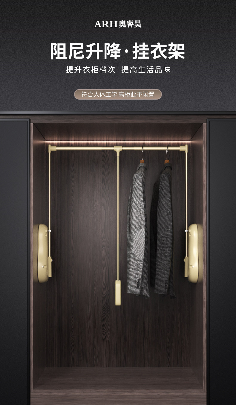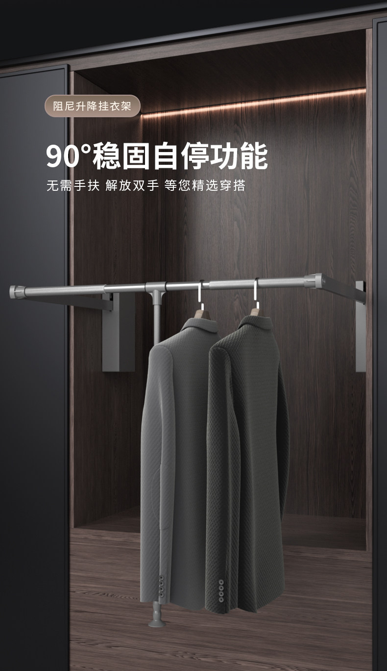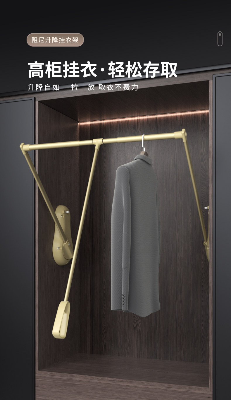 Pull-Down Clothes Rail in the Wardrobe, Retractable Clothes Rail for Home Use, Buffer Pull-Down Lift-Up Clothes Rack