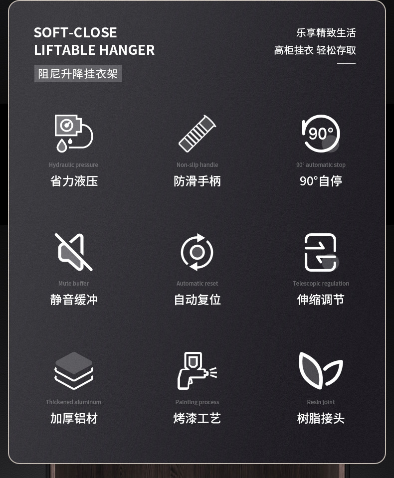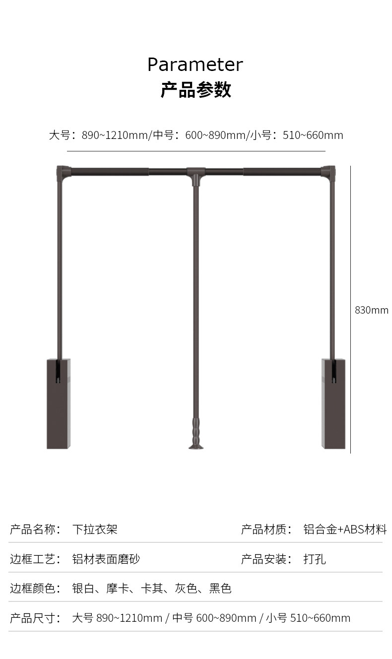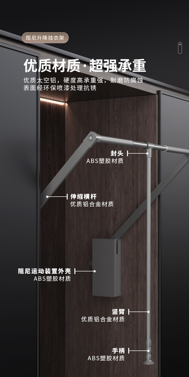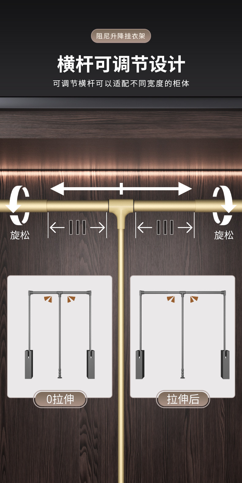 Pull-Down Clothes Rail in the Wardrobe, Retractable Clothes Rail for Home Use, Buffer Pull-Down Lift-Up Clothes Rack