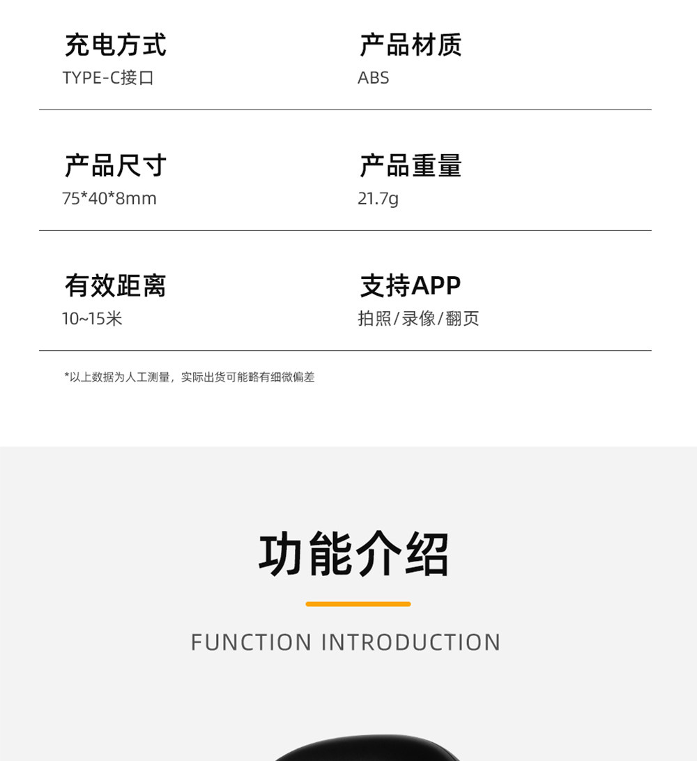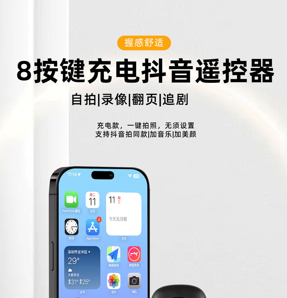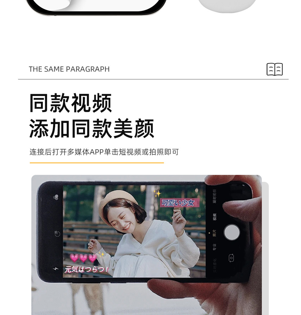 | Color Classification | Flagship Model[White]* **Scrolling through Tiktok & Kuaishou** * **Flipping Pages in Novels** * **Air Thumbs-Up** * **Beauty Filters for Photos** * **Long-Lasting Battery Life** * **Bluetooth Connectivity**,Flagship Model[Black]* **Scrolling through Tiktok & Kuaishou** * **Flipping Pages in Novels** * **Air Thumbs-Up** * **Beauty Filters for Photos** * **Long-Lasting Battery Life** * **Bluetooth Connectivity**,Flagship Model[Pink]* **Scrolling through Tiktok & Kuaishou** * **Flipping Pages in Novels** * **Air Thumbs-Up** * **Beauty Filters for Photos** * **Long-Lasting Battery Life** * **Bluetooth Connectivity**,Flagship Model[Purple]* **Scrolling through Tiktok & Kuaishou** * **Flipping Pages in Novels** * **Air Thumbs-Up** * **Beauty Filters for Photos** * **Long-Lasting Battery Life** * **Bluetooth Connectivity** |