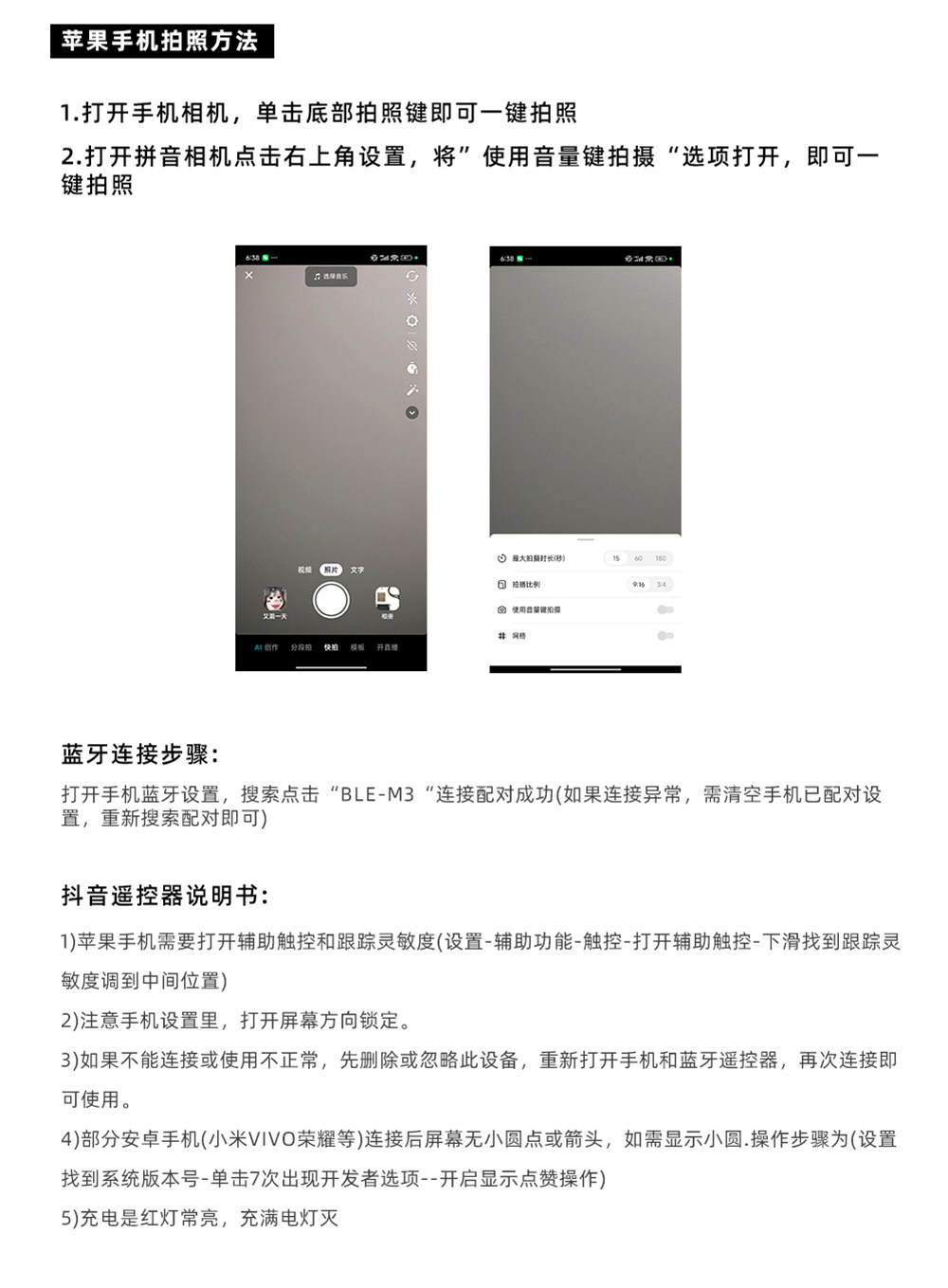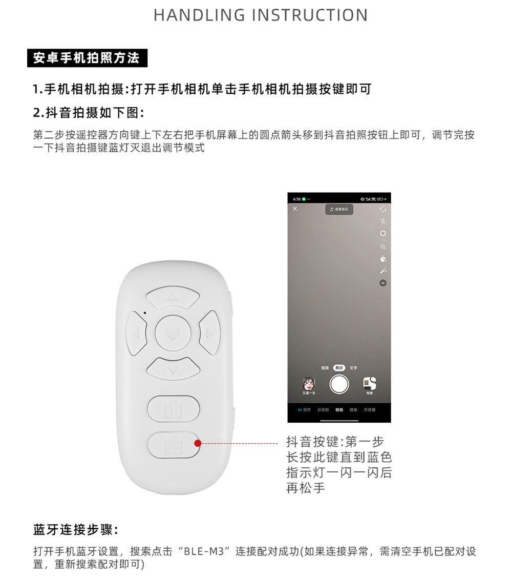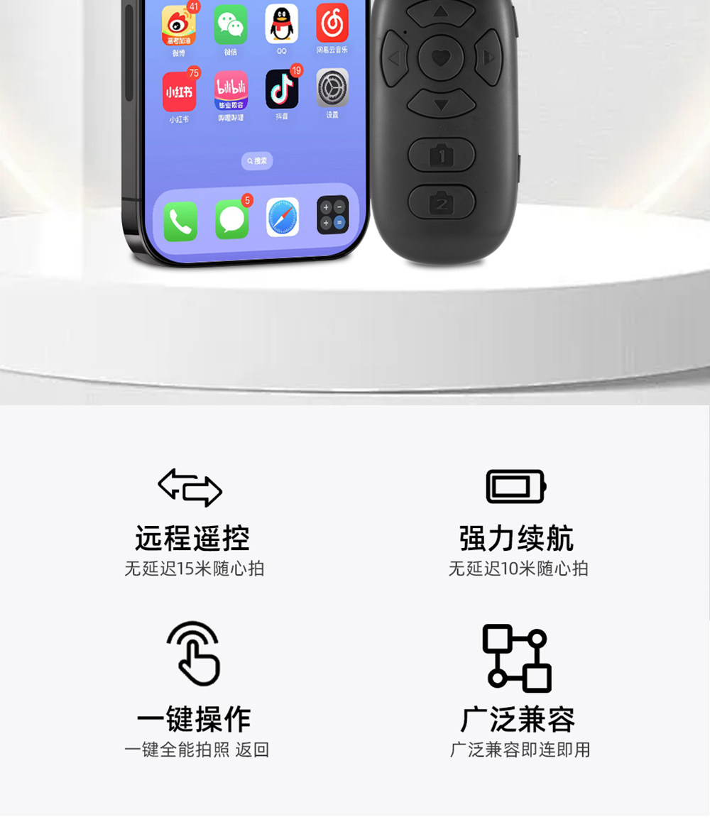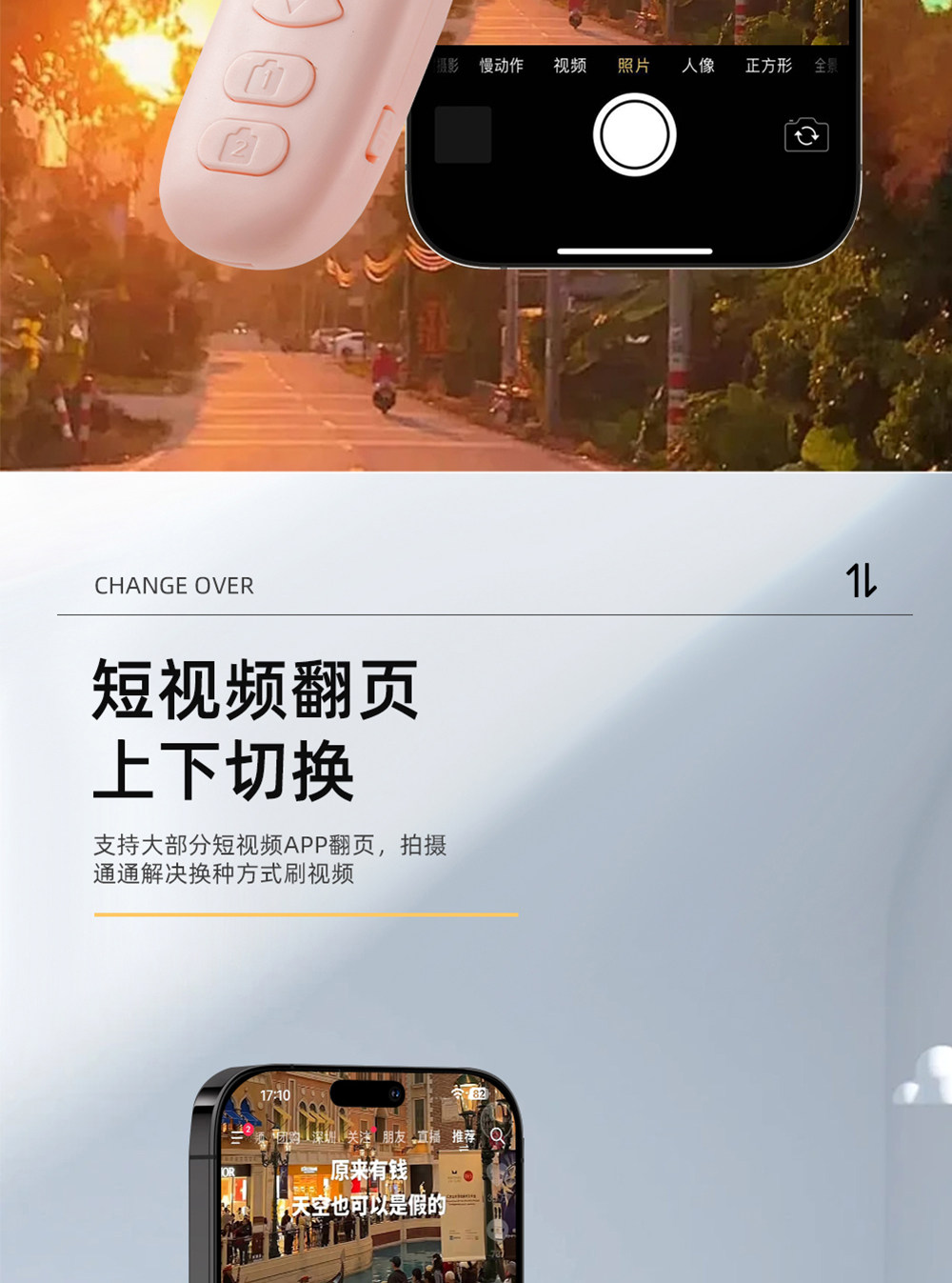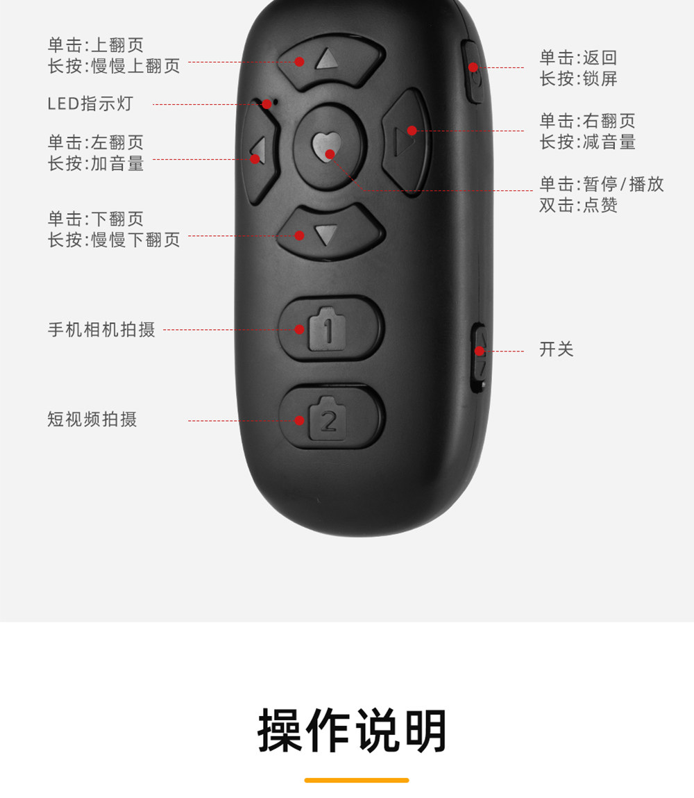 Muzhten/Mudan Remote Control Bluetooth Remote Control Mobile Phone Bluetooth Remote Control for Taking Photos, Selfies, Browsing, Reading Kuaishou Novels, Page Turning, Watching Short Videos, Universal Mobile Phone Remote Control