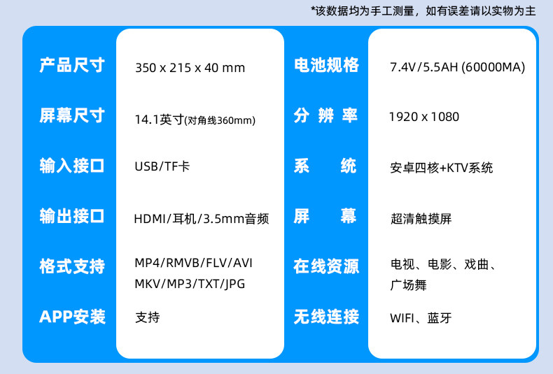 | Color Classification | Stand-Alone Version◆Free Karaoke for Life + Voice Remote Control + 64g + Hd Cable, Can Store about 1,000 Songs,Basic Version◆Karaoke for Life, Free of Charge + Stand + Voice Remote + 64Gb + Hd Cable. Holds Approximately 1,000 Songs,Ultimate Version ◆ Karaoke for Life, Free of Charge + Stand + Voice Remote + 128Gb + Hd Cable. Holds Approximately 2,000 Songs.,Extreme Version◆Karaoke for Life, Free of Charge + Stand + Voice Remote + 256Gb Storage + Hd Cable. Holds Approximately 4,000 Songs,Honor Edition✅Free Karaoke for Life + Stand + Voice Remote Control + 320g + Hd Cable, Can Store about 6,000 Songs,19inch Large Screen◆Karaoke for Life, Free of Charge + Stand + Voice Remote + 500Gb Storage + Hd Cable. Holds Approximately 10,000 Songs,19inch Large Screen◆Karaoke for Life, Free of Charge + Stand + Voice Remote + 1024Gb + Hd Cable. Holds Approximately 20,000 Songs,Exclusive Version◆Karaoke for Life, Free of Charge + Stand + Voice Remote + 500Gb Storage + Hd Cable. Holds Approximately 10,000 Songs,Top Version◆Karaoke for Life, Free of Charge + Stand + Voice Remote + 1024Gb + Hd Cable. Holds Approximately 20,000 Songs,Add to Favorites + Cart✈Enjoy: 30-Day Trial★3 Years Warranty★Only Replacement, No Repair,"Grammy Master Tuning" Cinematic Listening Experience✅Ten Thousand Yuan Configuration✅Audio-Visual Feast |
