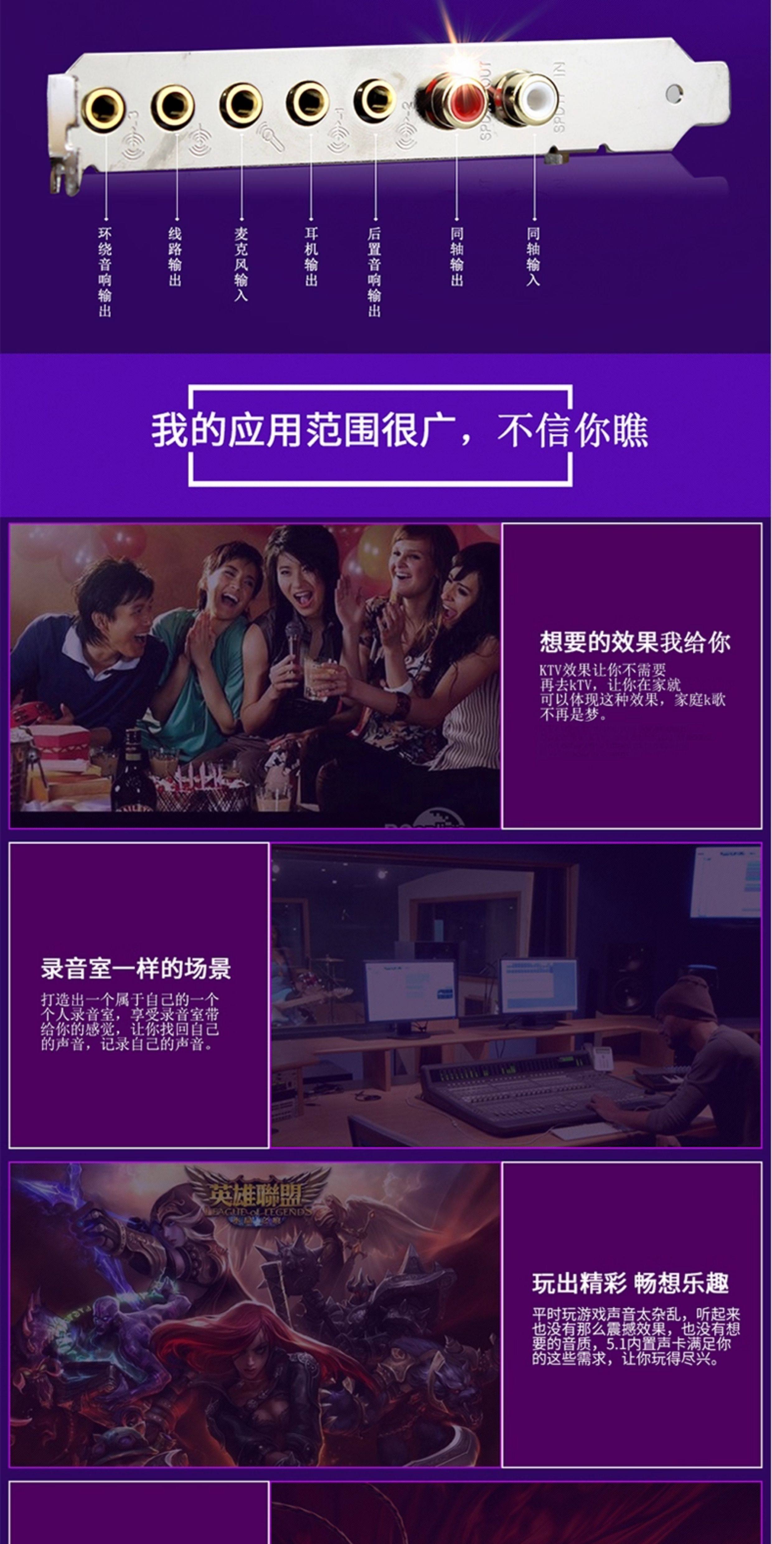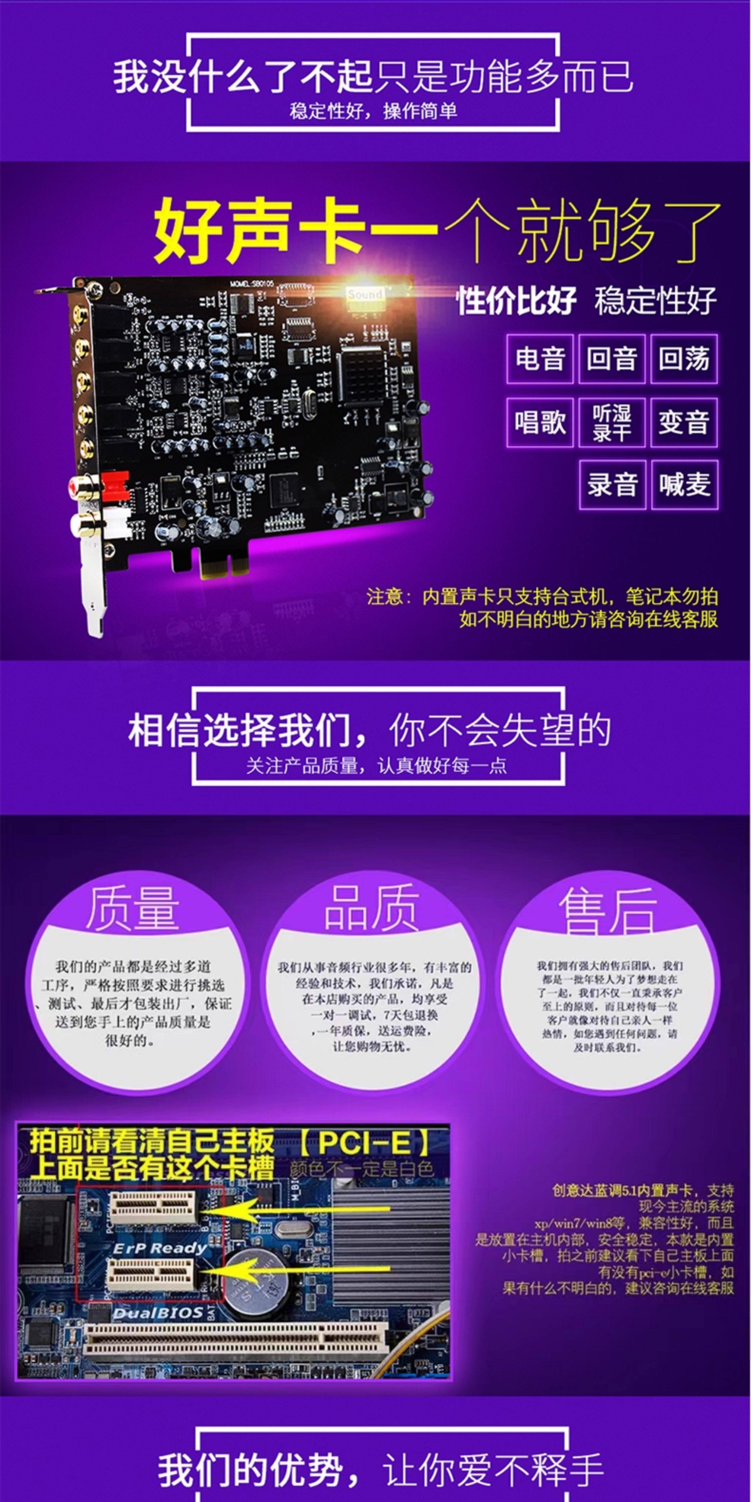 K-Song Built-In Sound Card Set for Desktop Computers, Innovative Technology 5.1 Built-In Sound Card, Gaming 7.1 Sound Card