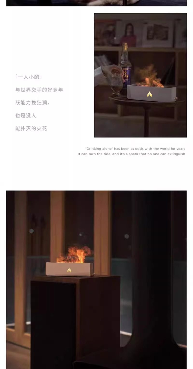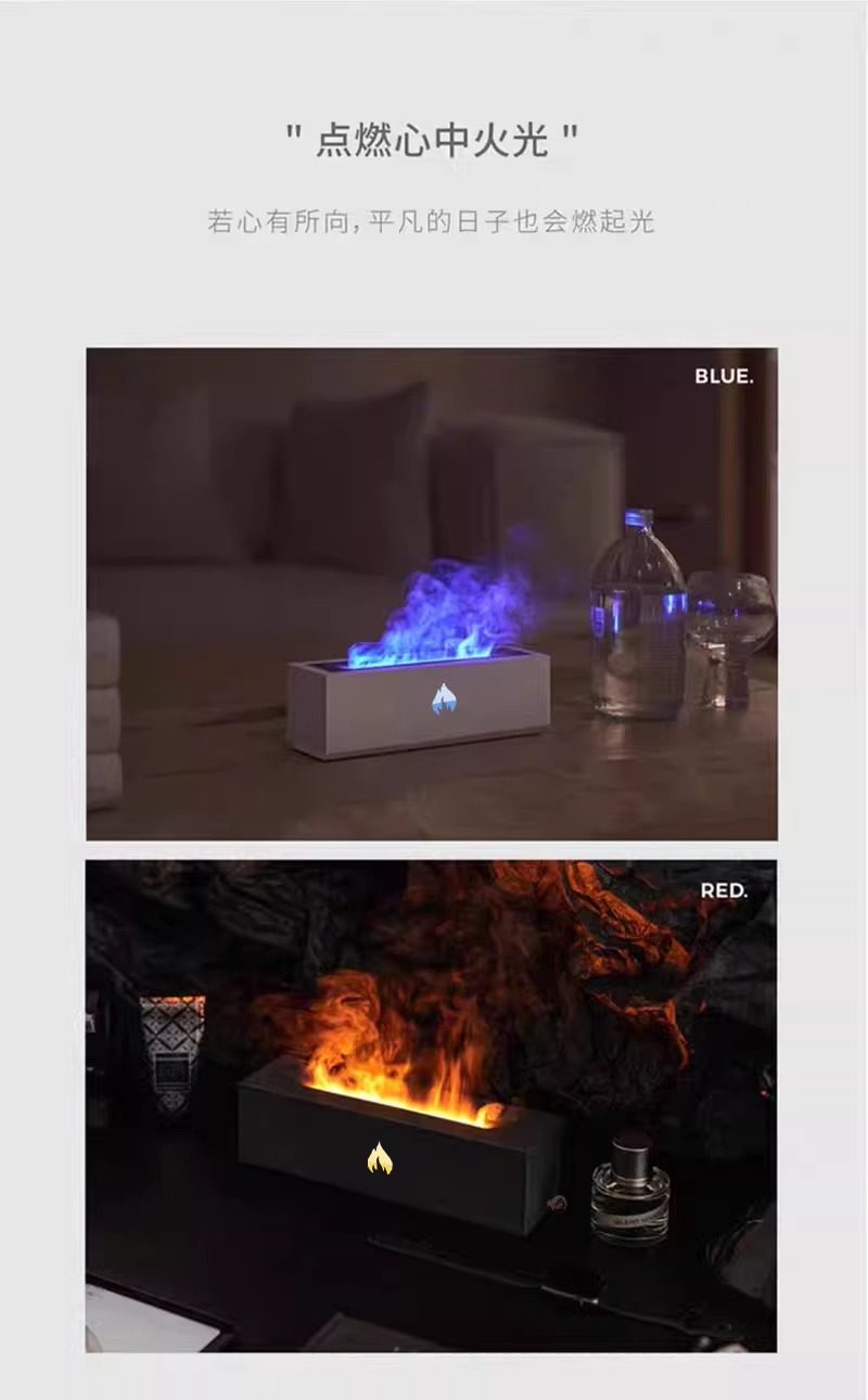 2024 New Model Simulated Flame Humidifier Aromatherapy Machine Essential Oil Home Bedroom Small Silent Atmosphere Lamp Gift