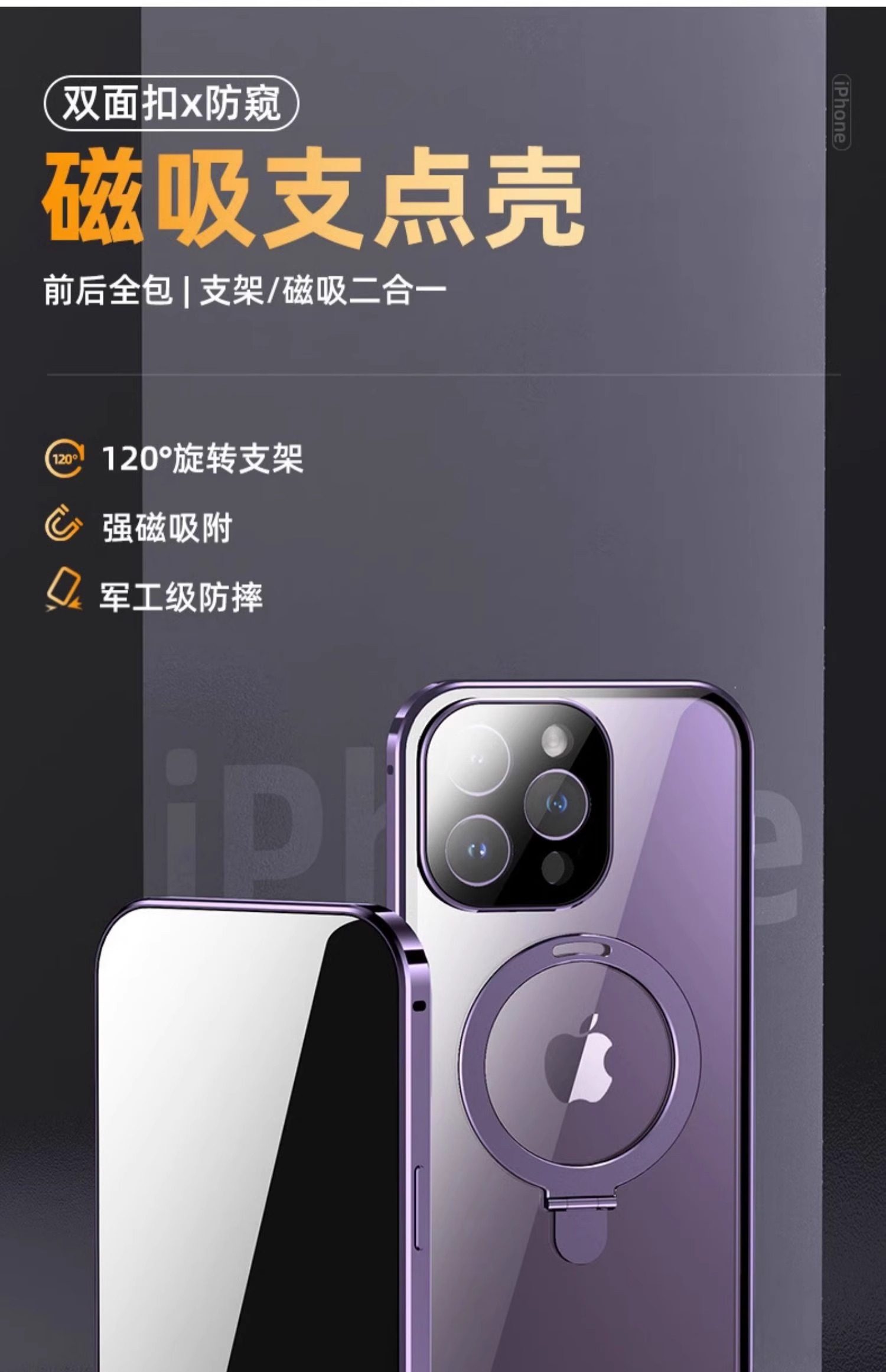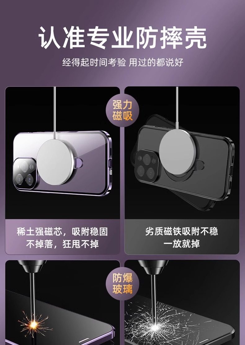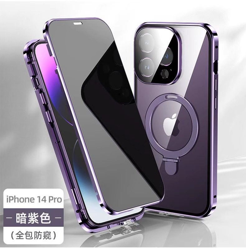 17Pro Apple 16Promax Full-Cover Anti-Peeping Stand Phone Case 15Plus Magnetic Wireless Charging Car Mount Multi-Use Iphone14Pro Double-Sided No Screen Protector Anti-Drop Lens Cooling Compatible