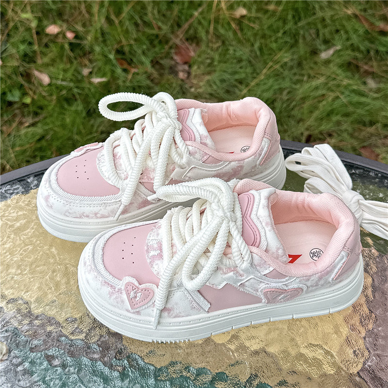 Women's White Sneakers 2025 Spring and Autumn New Versatile Fashion Thick-Soled Student Casual Sports Leather Panel Shoes