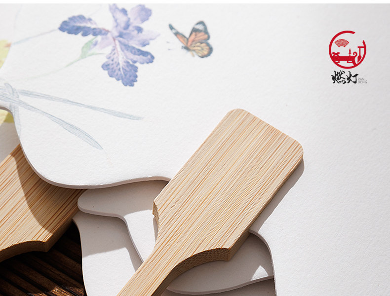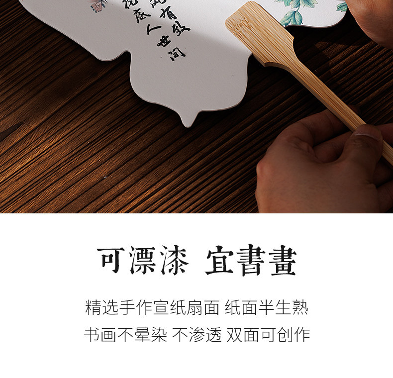 Lantern-Shaped Fan with Calligraphy, Lacquer Fan Material Kit, Complete Set of Creative Rice Paper Round Fan, Blank with Pattern, Painted with Lacquer