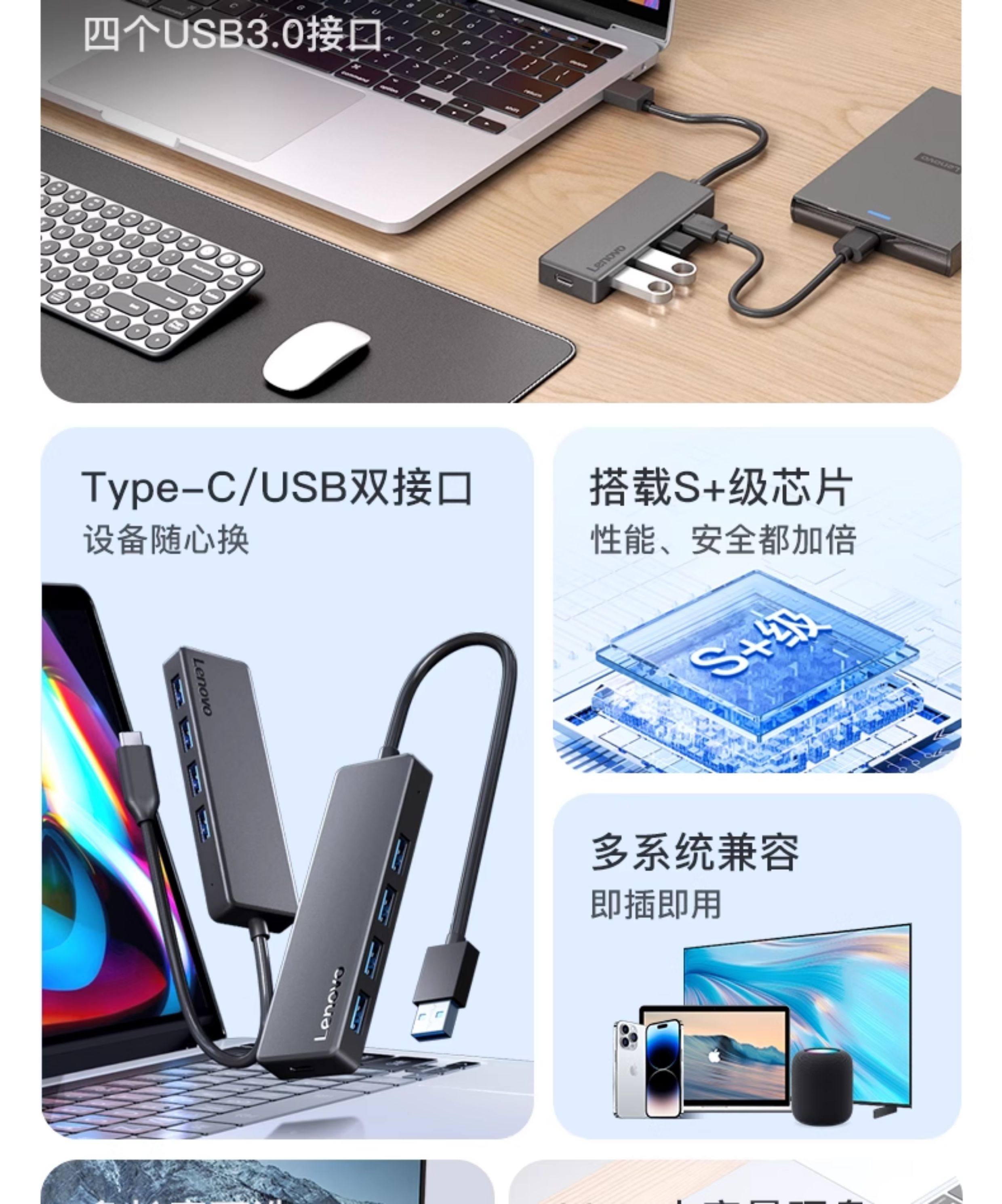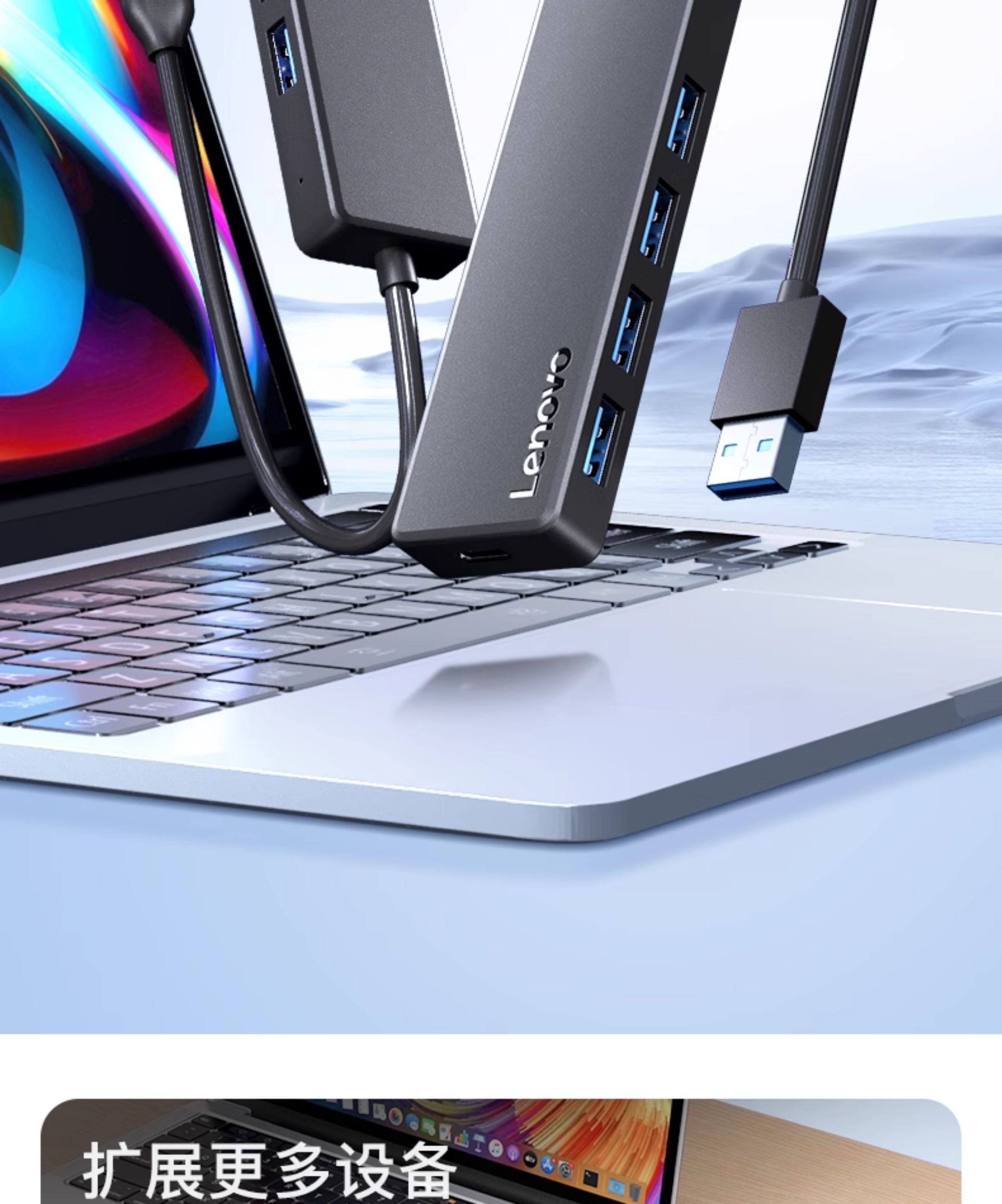 Lenovo USB Docking Station Multi-Port Hub Multi-Functional Expander Suitable for Apple, Huawei, Laptops, Desktop Computers, Mobile Phones, Tablets, External Multi-Interface Extension Docking Station Hub