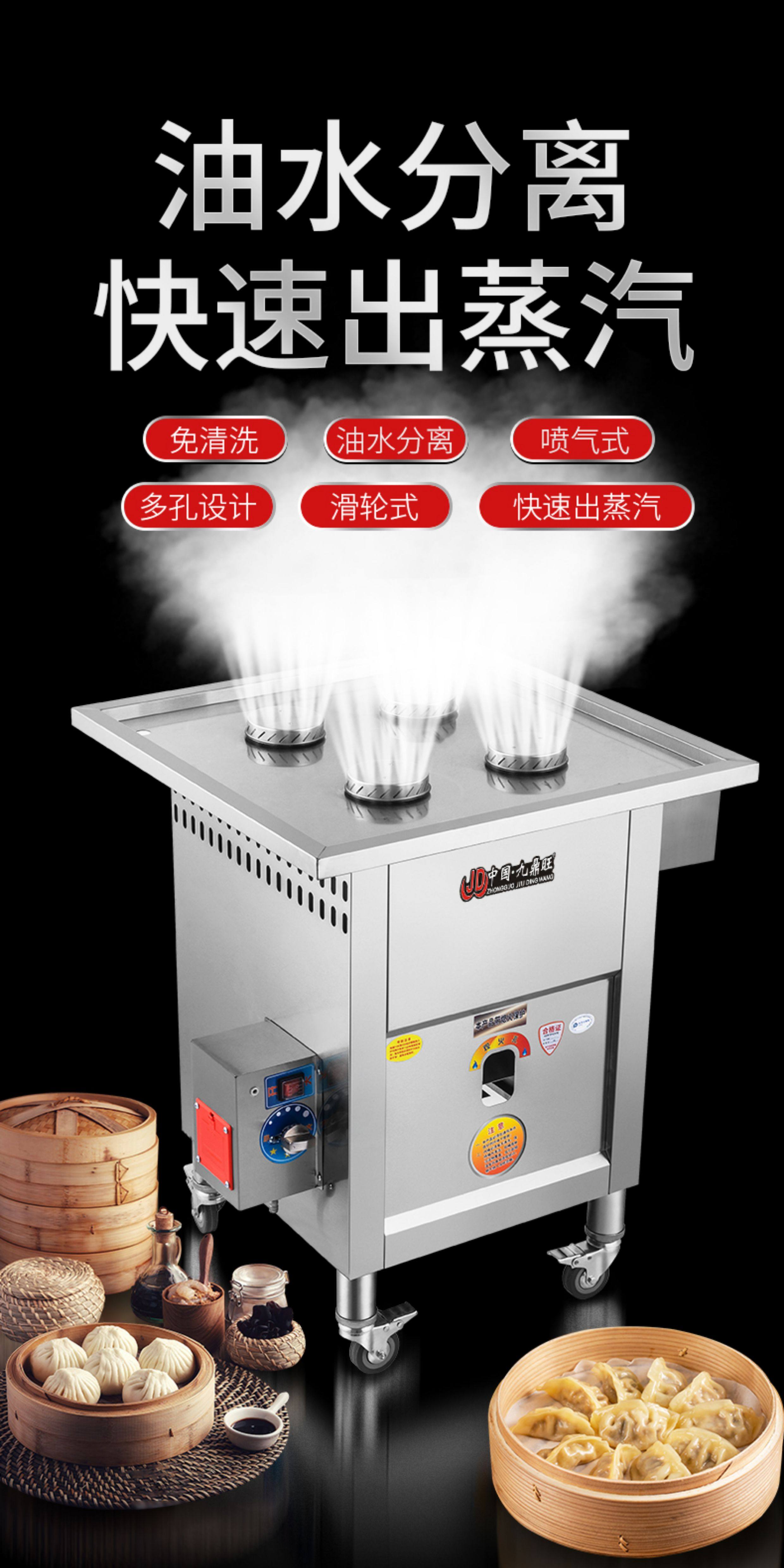 Commercial Gas Steamer for Steamed Buns, New Model for Breakfast Shops, All-In-One Machine, New Steam Oven with Oil-Water Separation